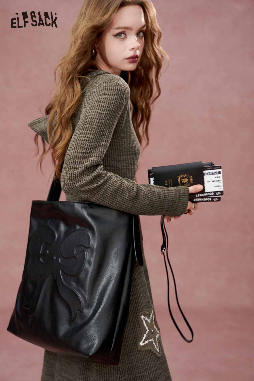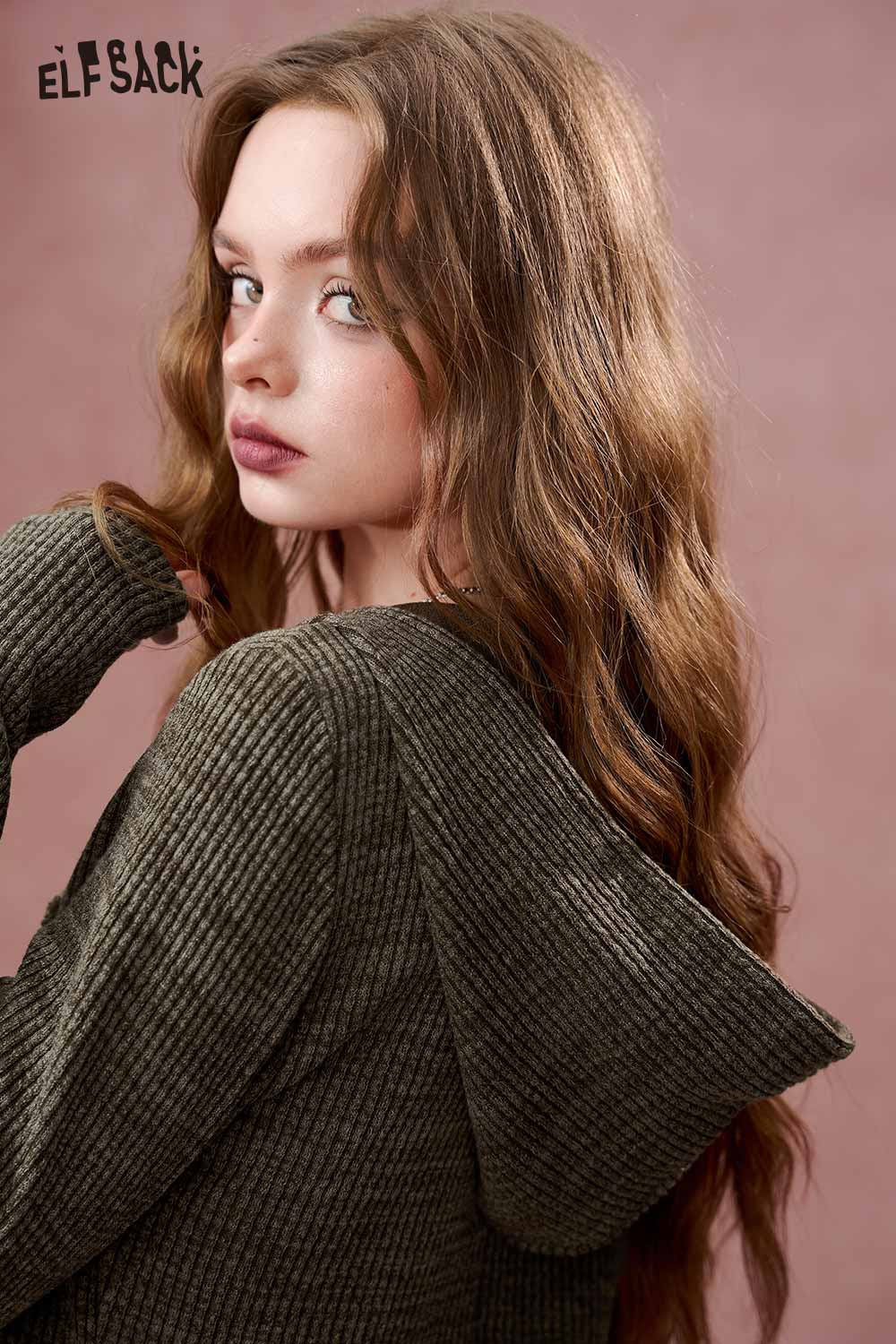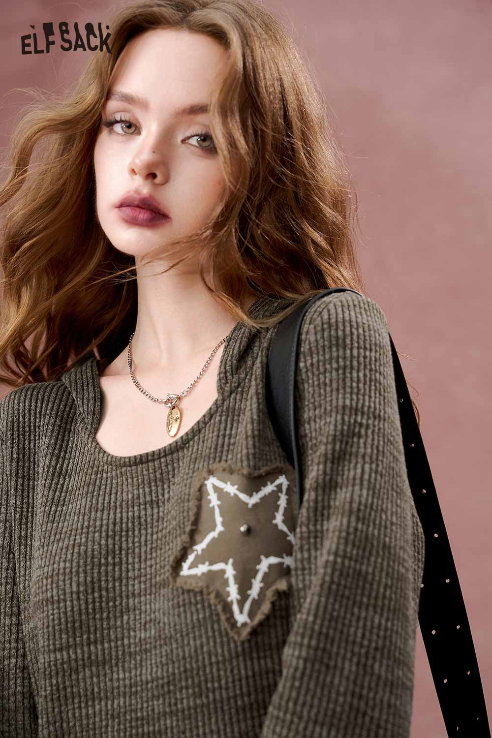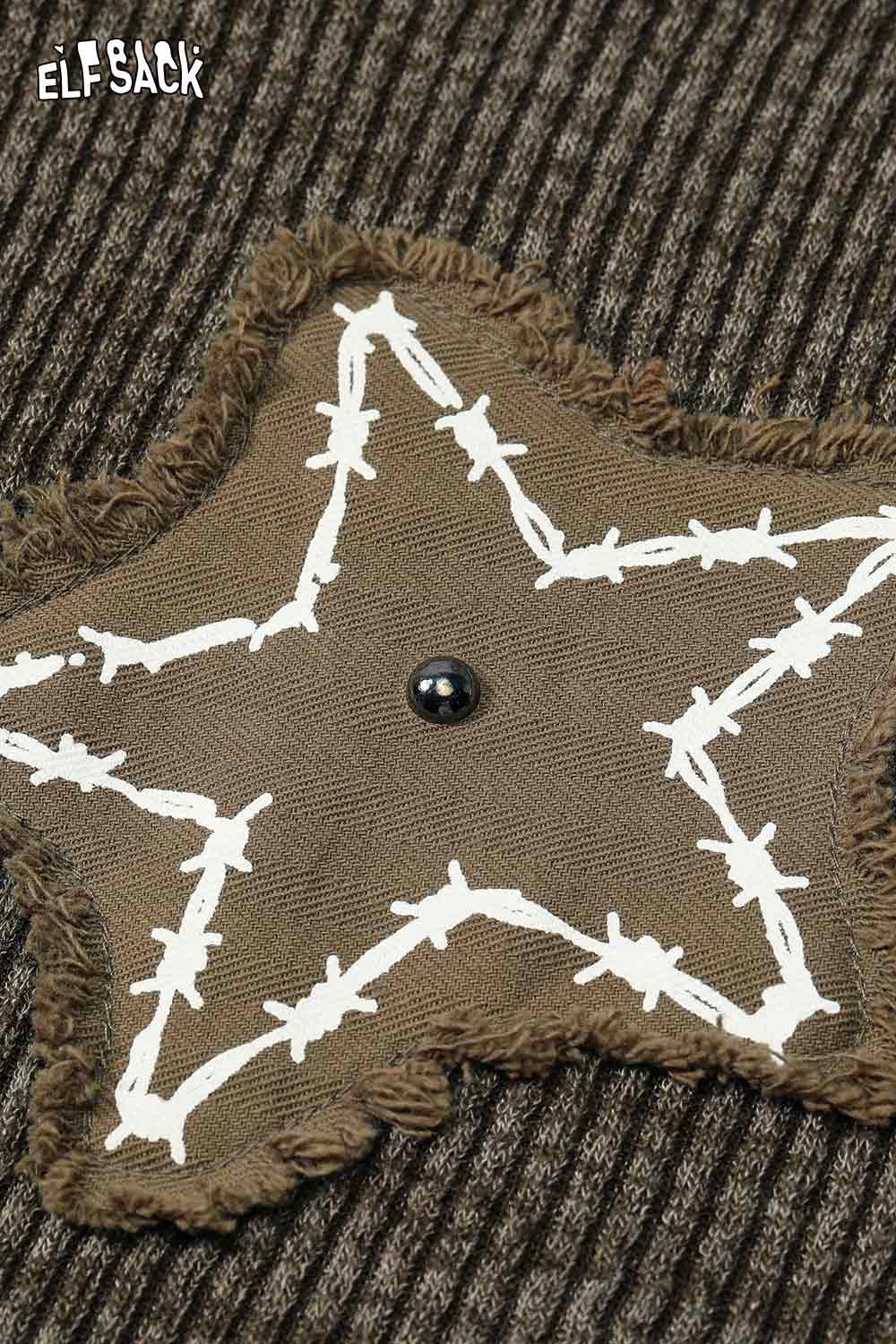 Soft Vintage Star Embroidery Long Sleeve Knit Dress