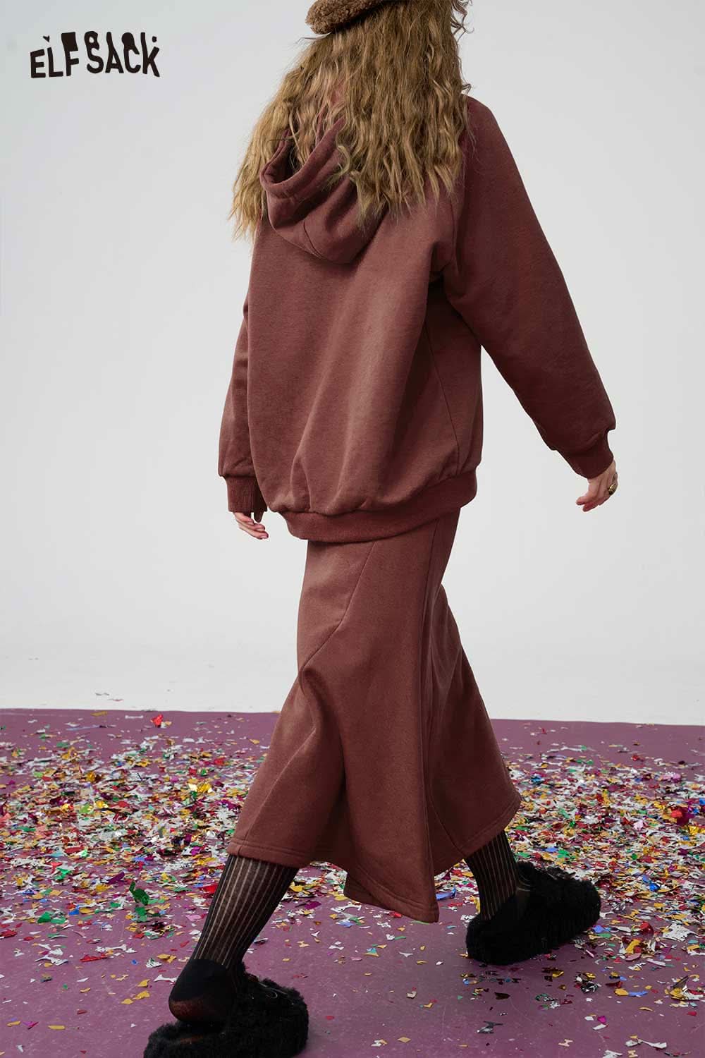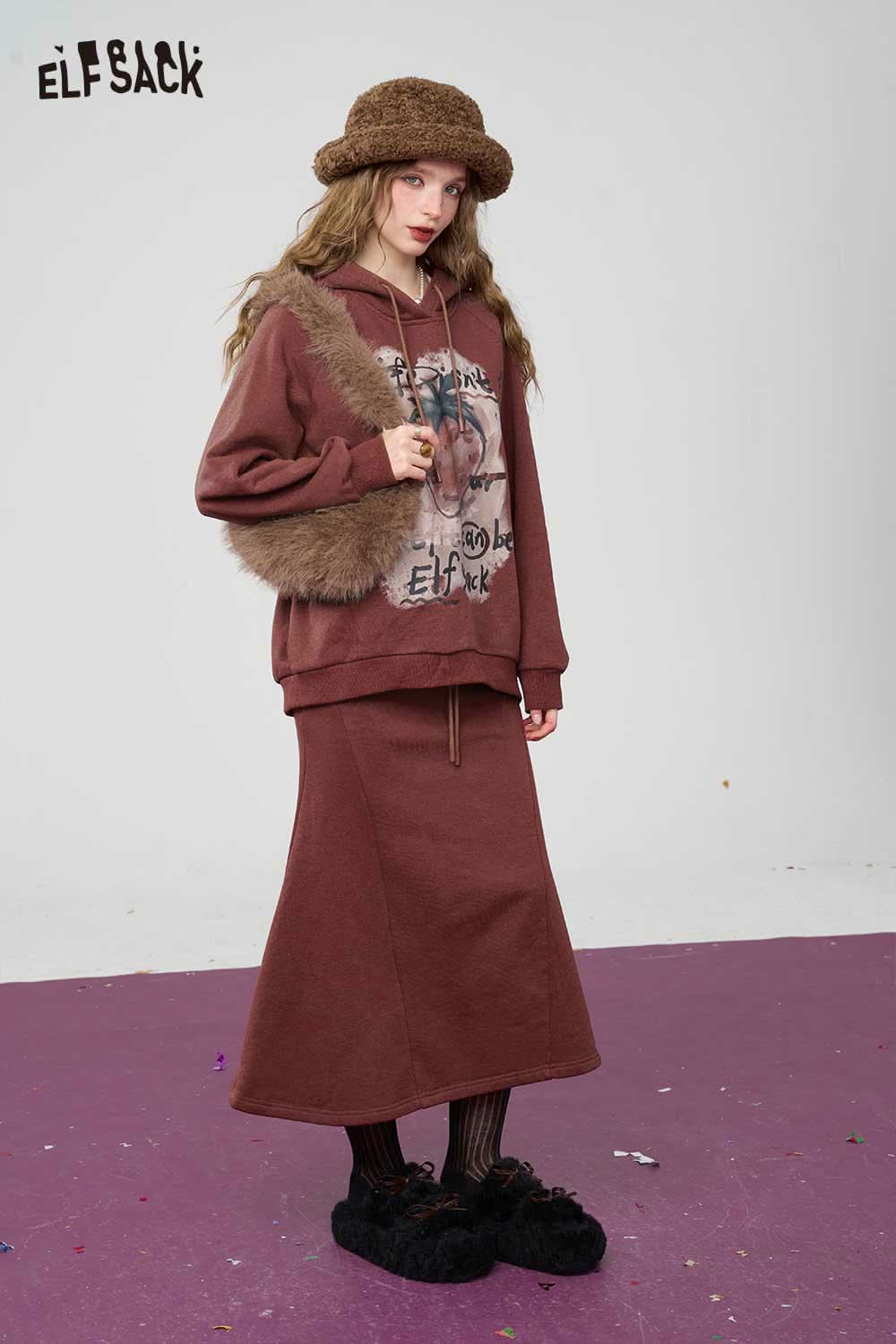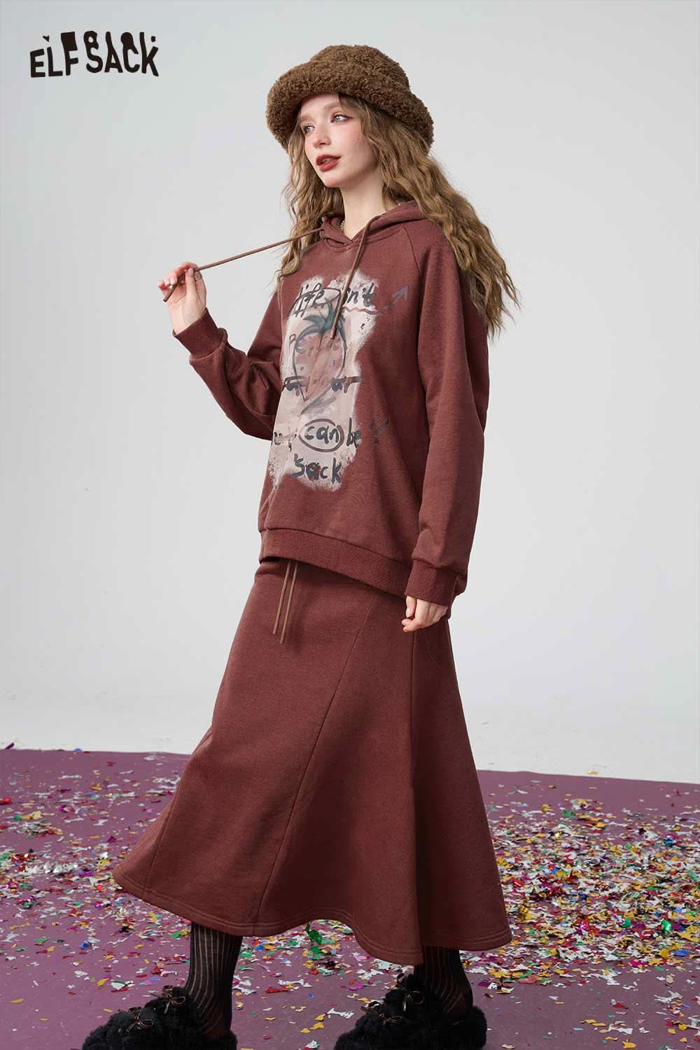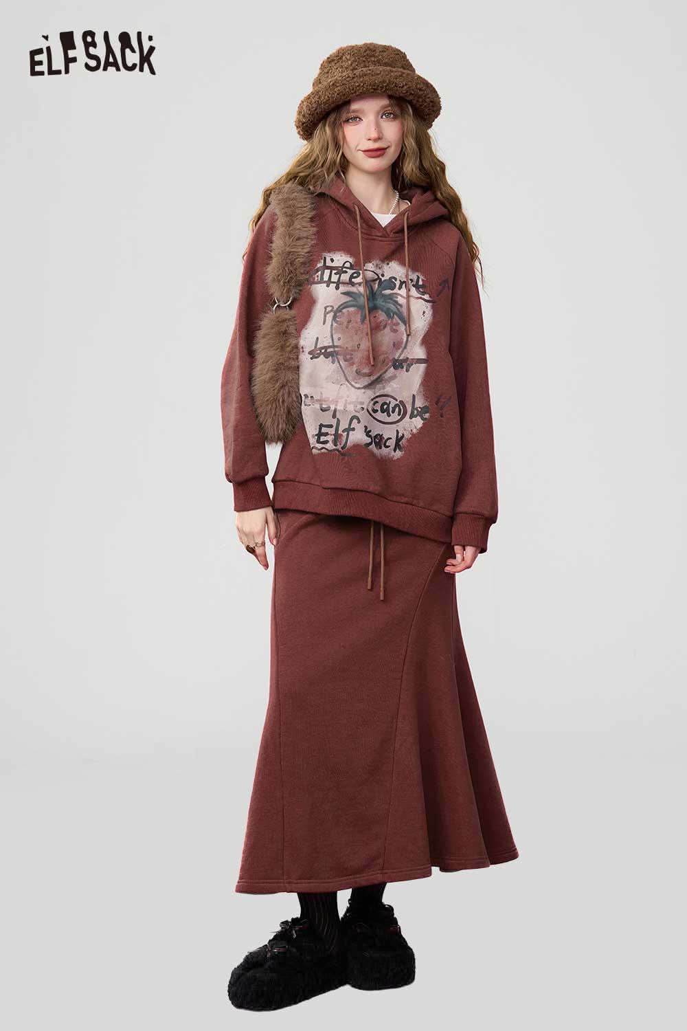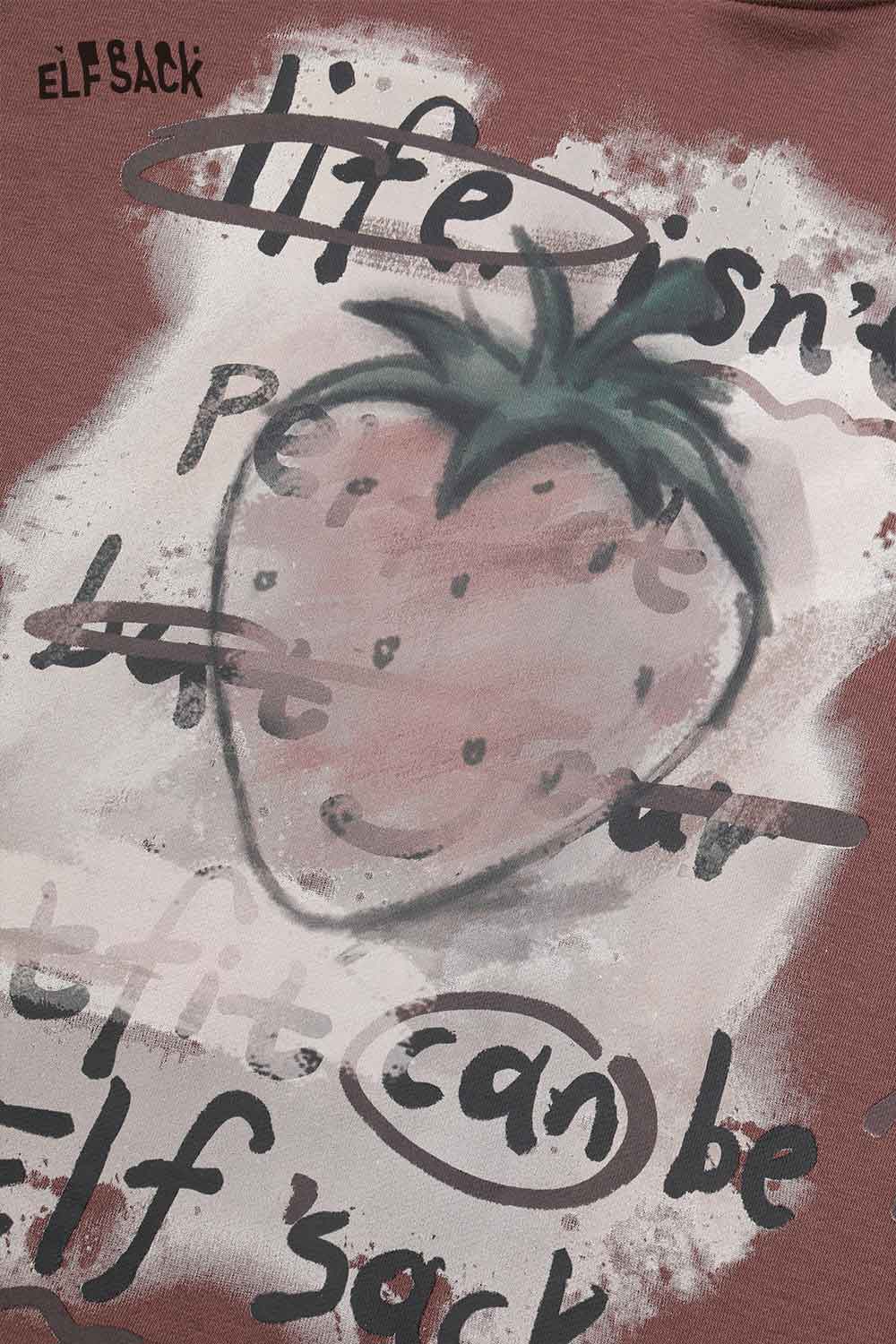 Light Angora Red Strawberry Print Hoodie Half Skirt Set