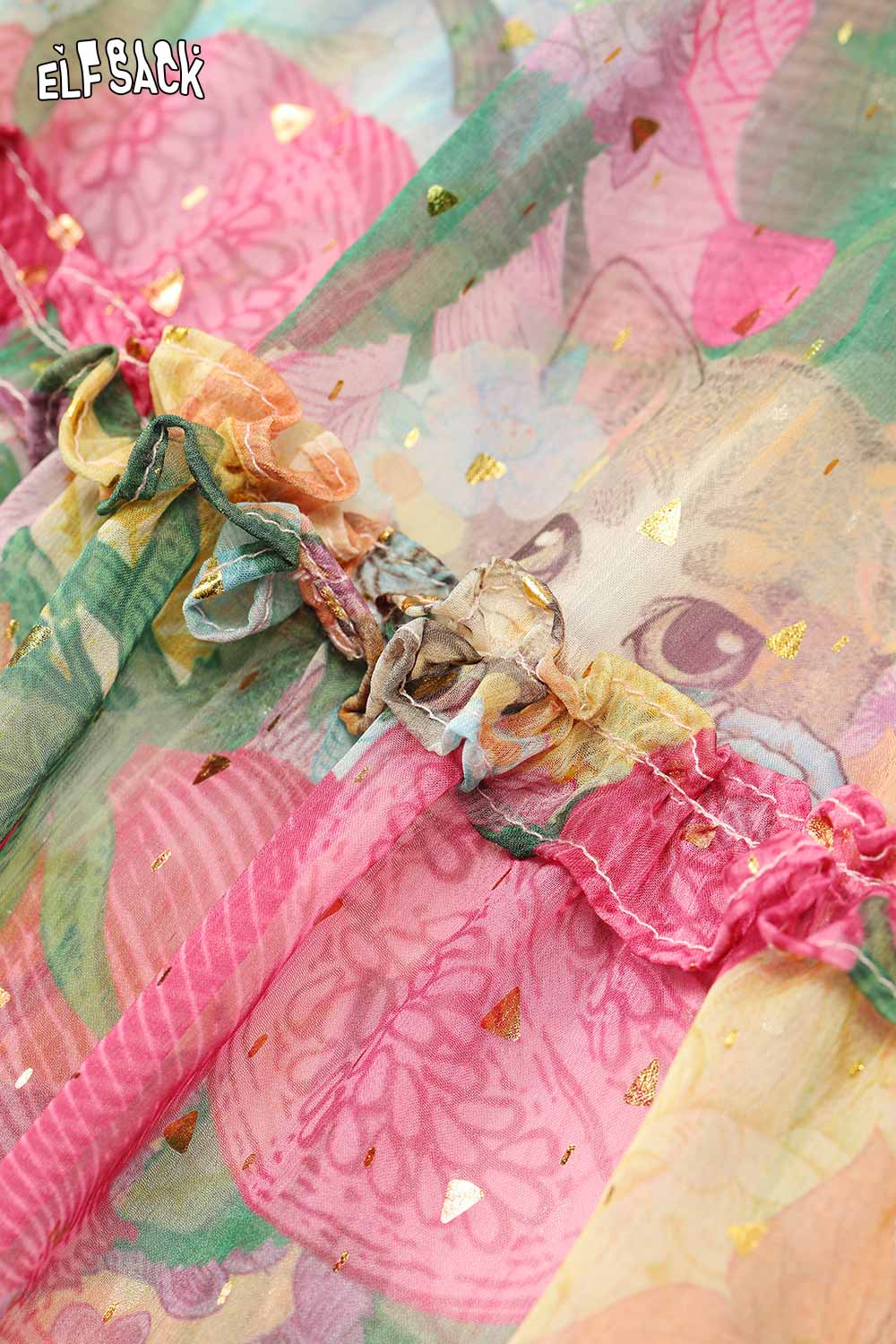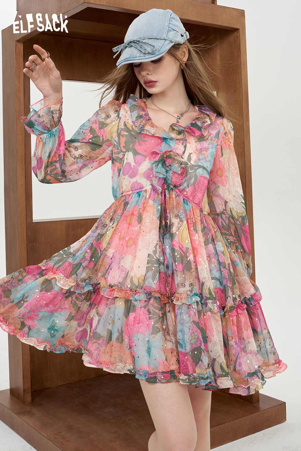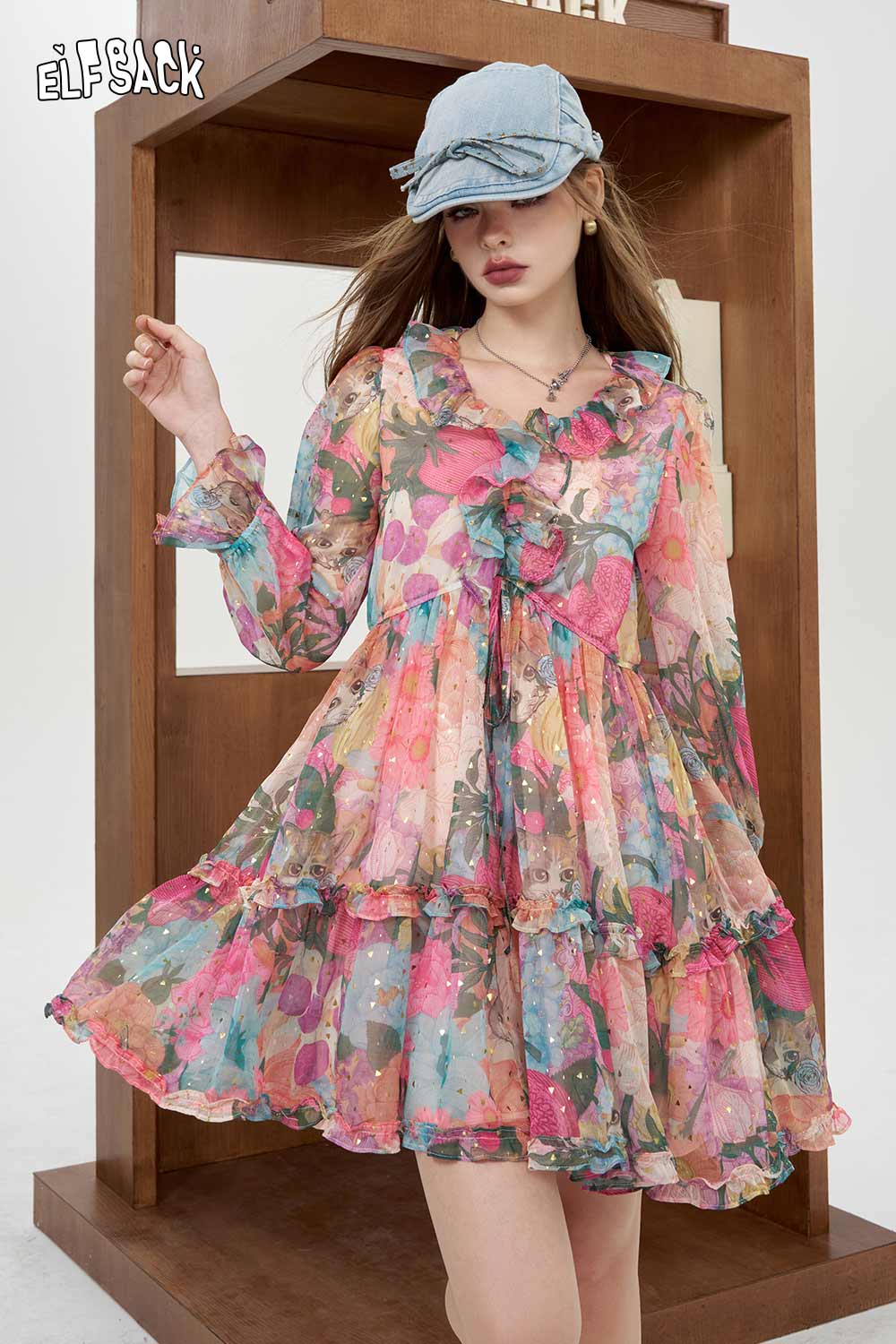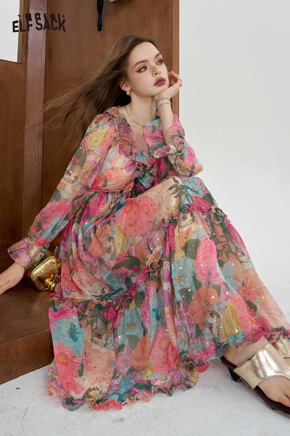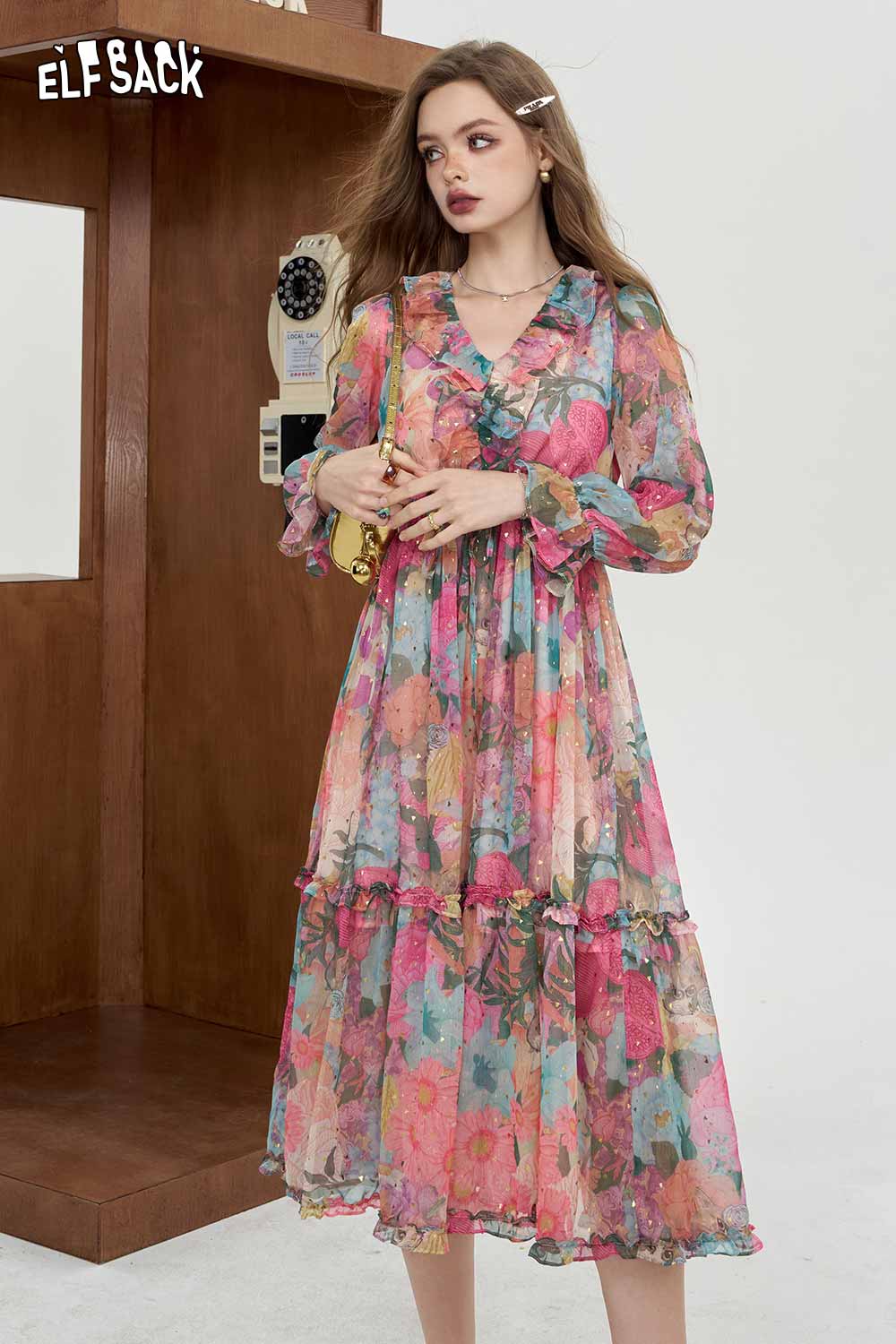 Soft Resort French Floral V Neck Waist Dress