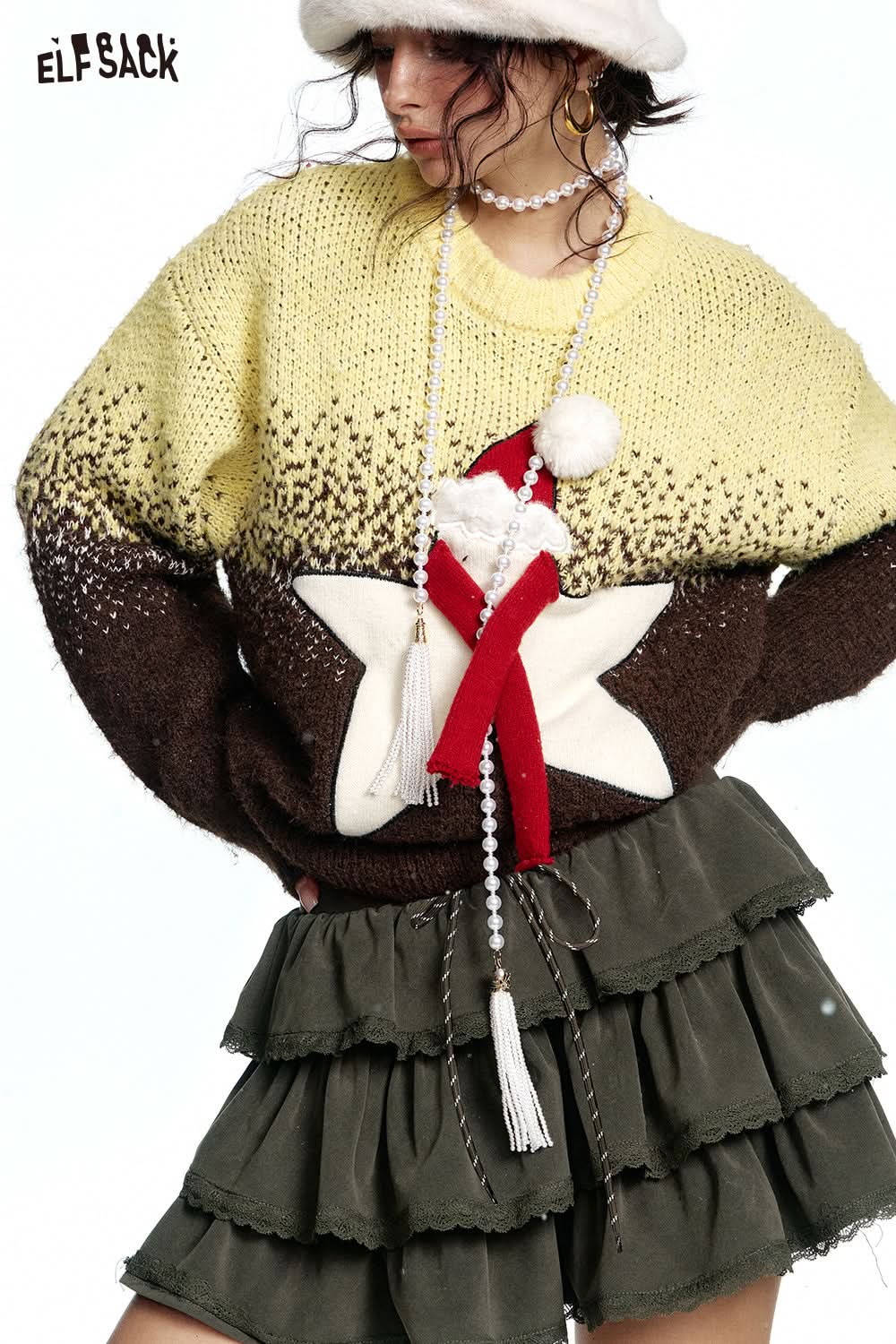 y2k lace stitching cake skirt women A-line High Waist Pleated Skirt