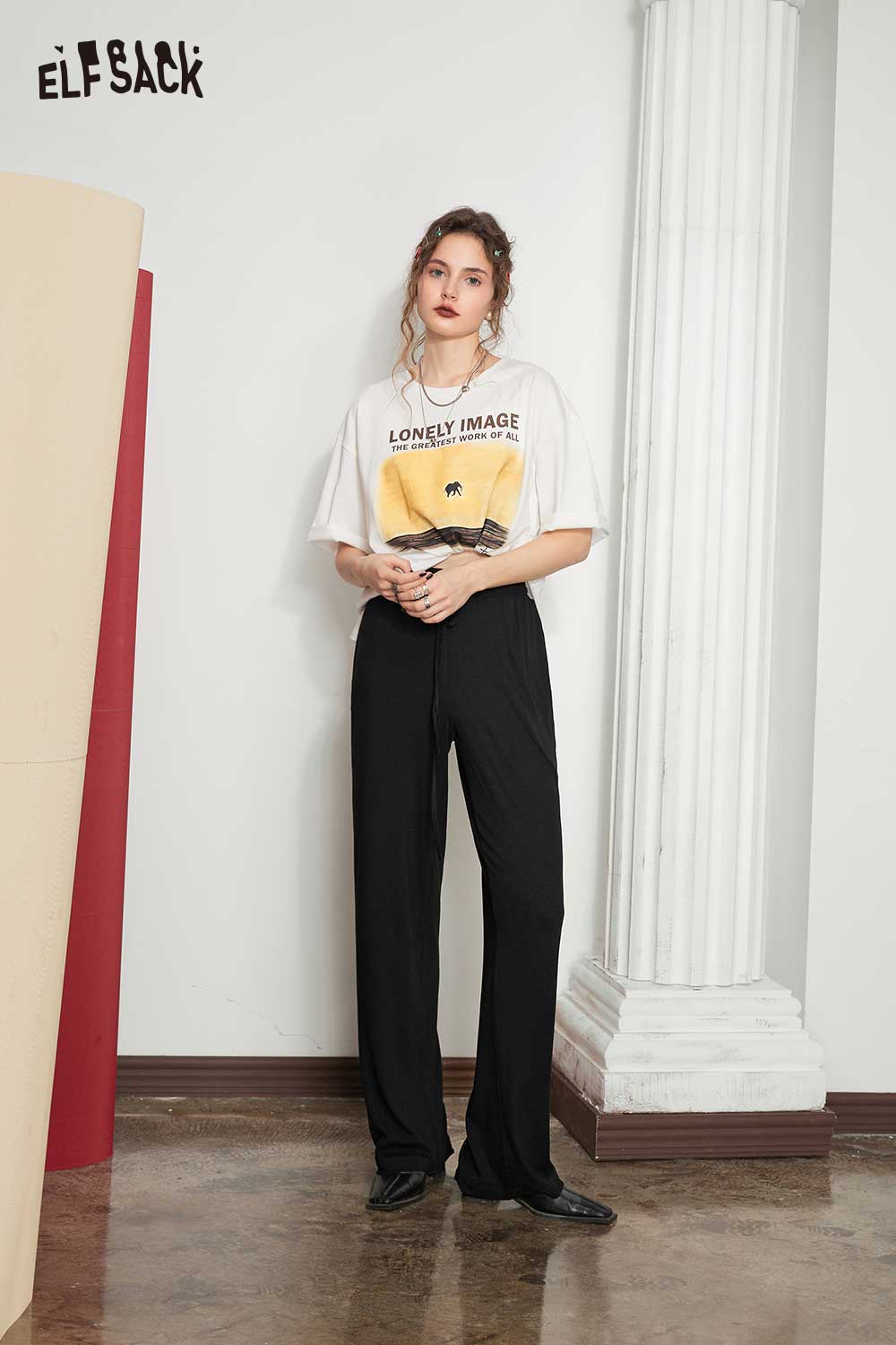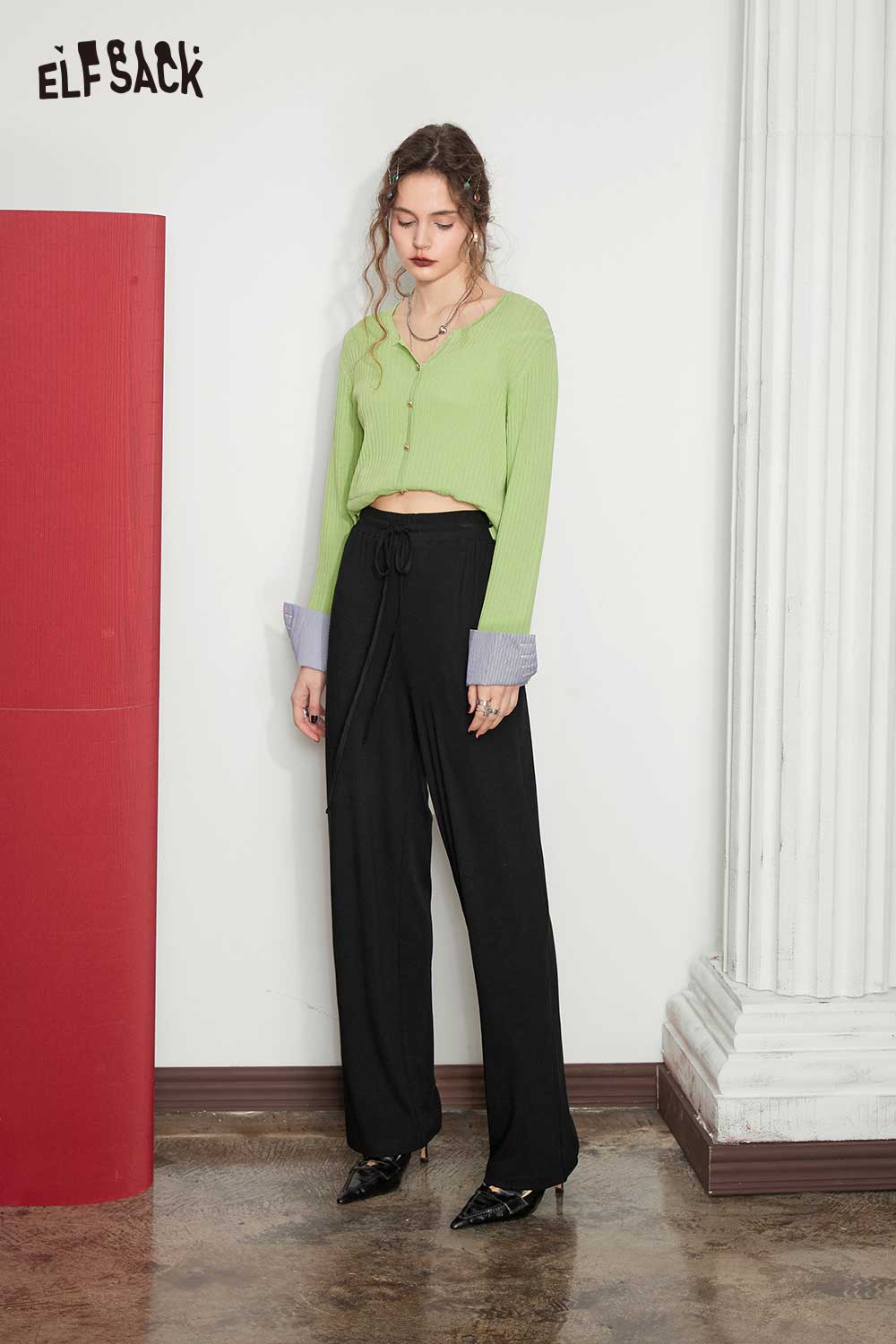 Soft Black Draping Wide Leg Loose Floor Length Pants