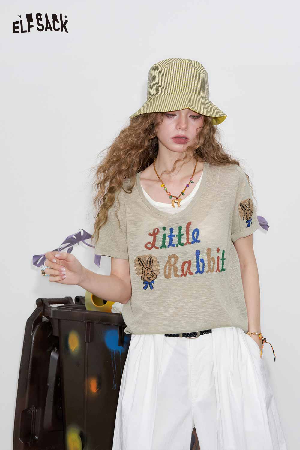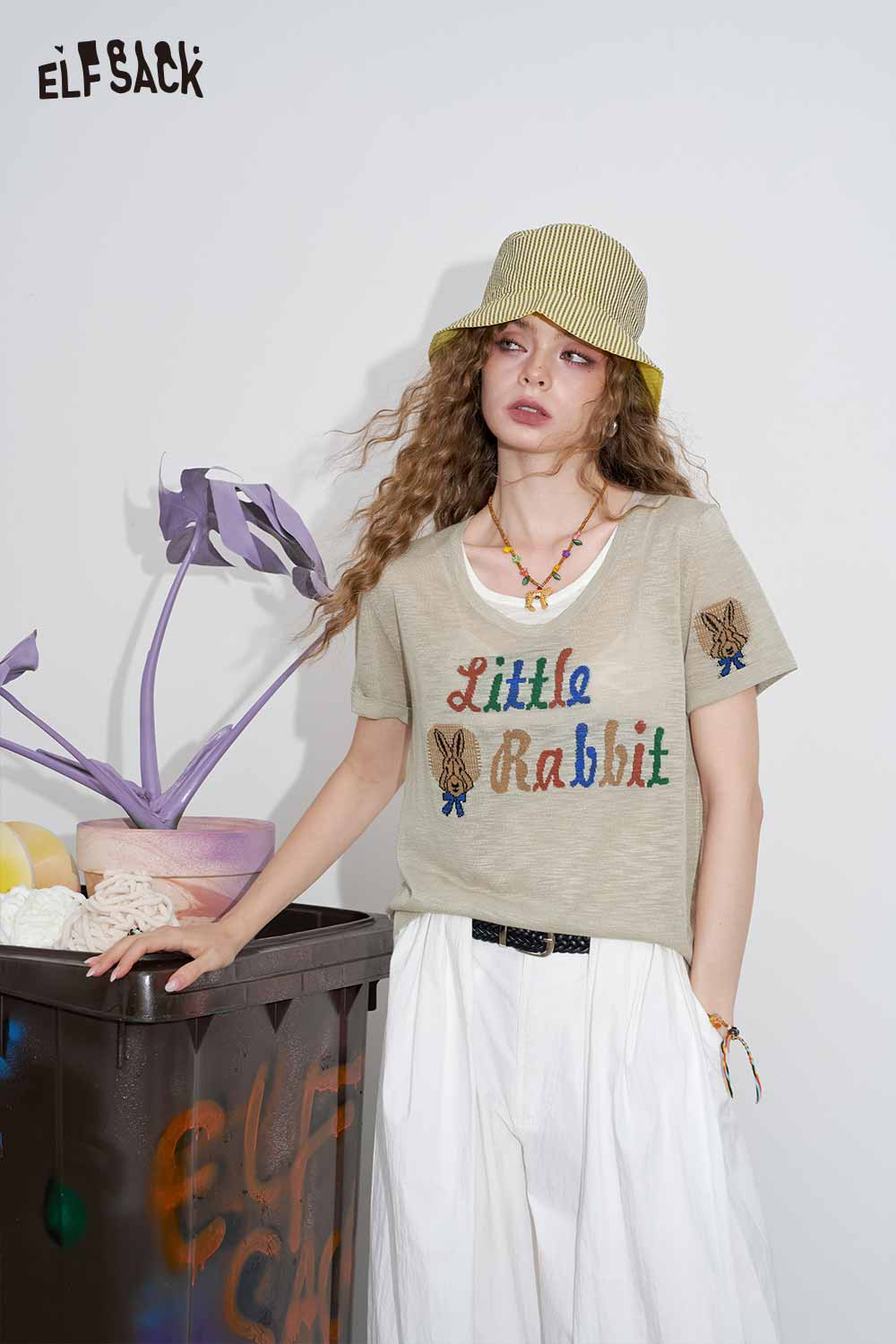 Viscose Fake Two-Piece Letter Print Knit Short Sleeve Y2K Niche Blouse