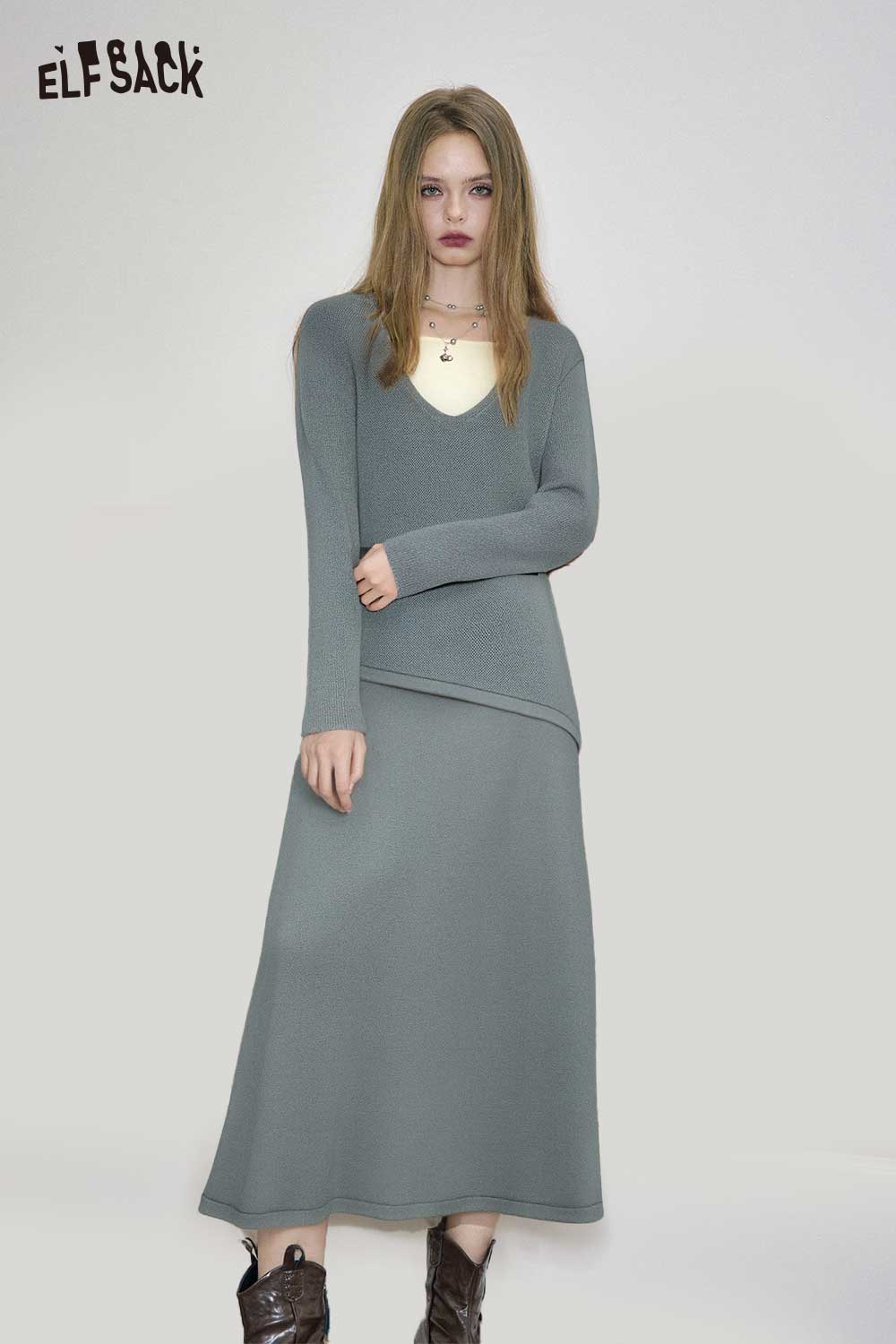 Stretch Jersey V-Neck Bodycon Silhouette Long Dress Set