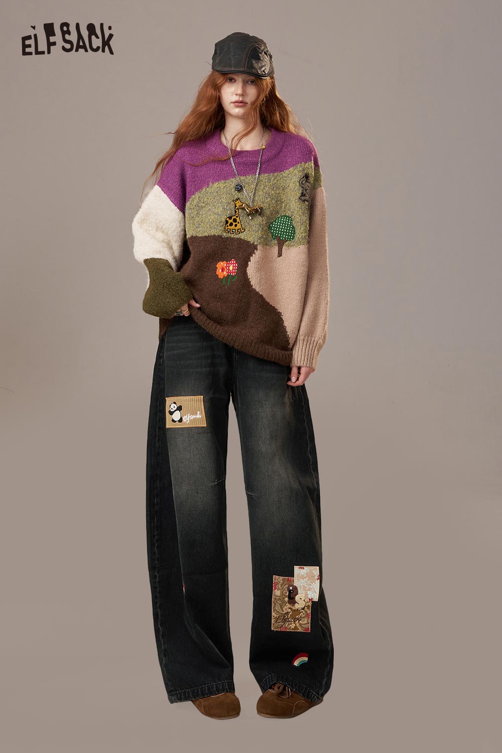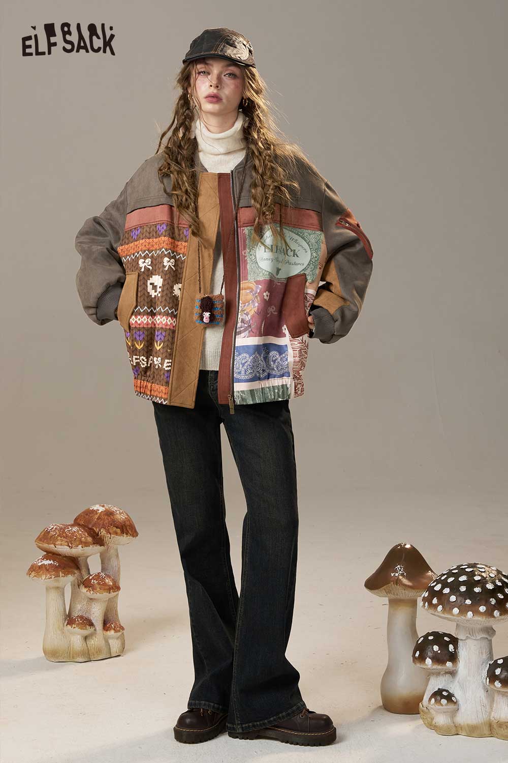 ELFSACK women's graphic applique vest featuring colorful patchwork design and playful embroidery