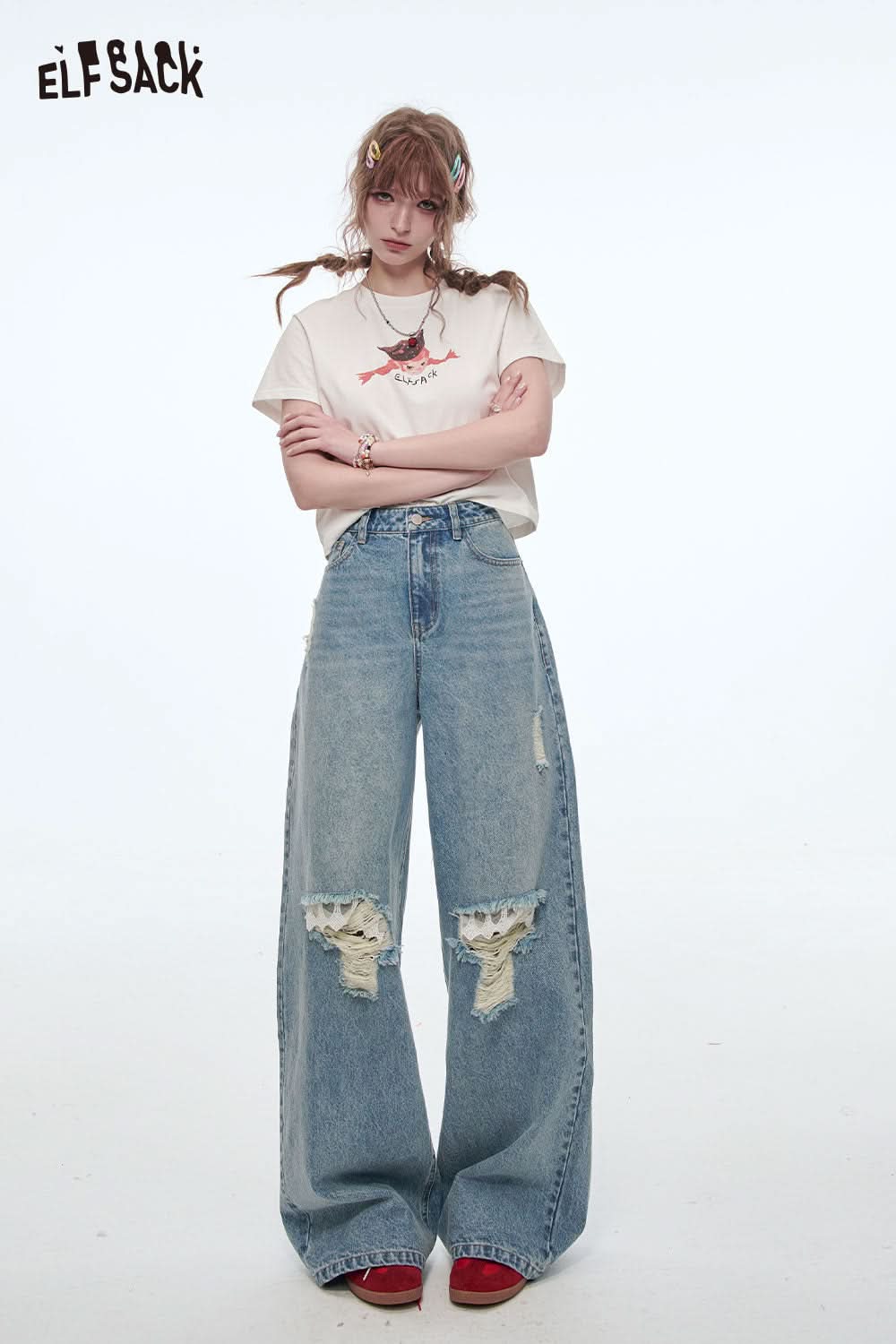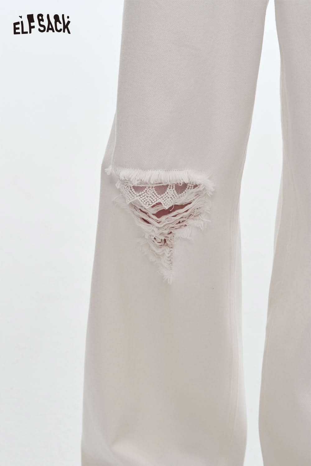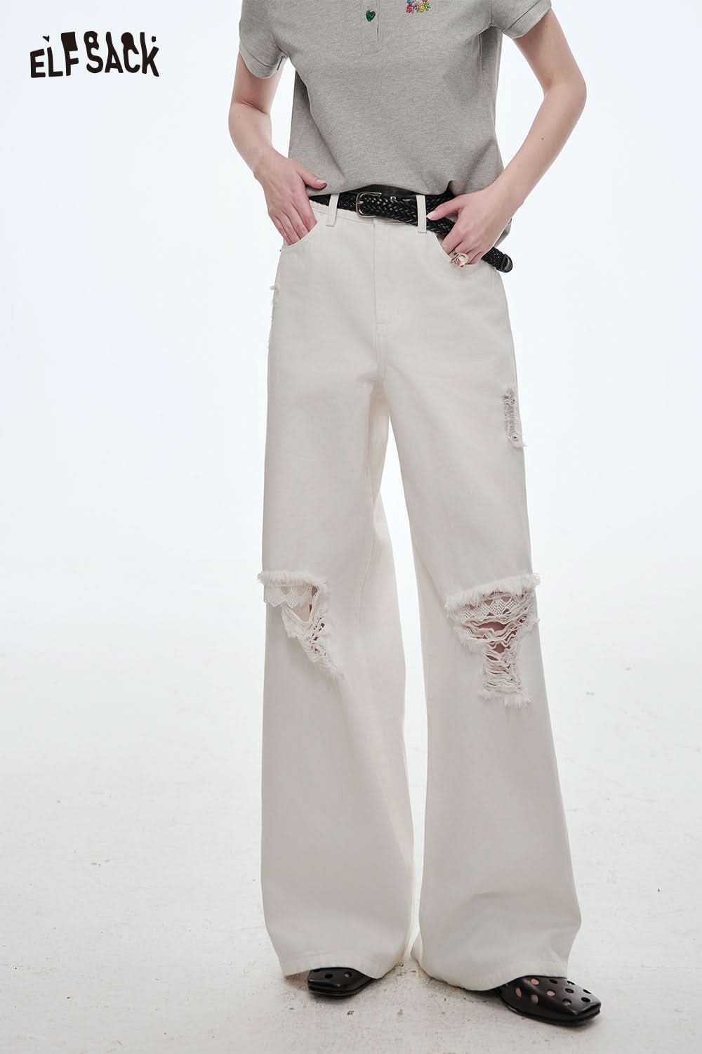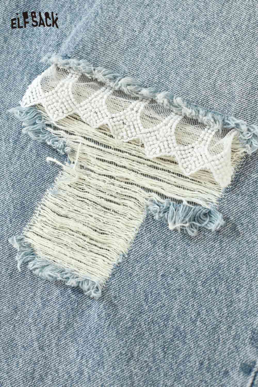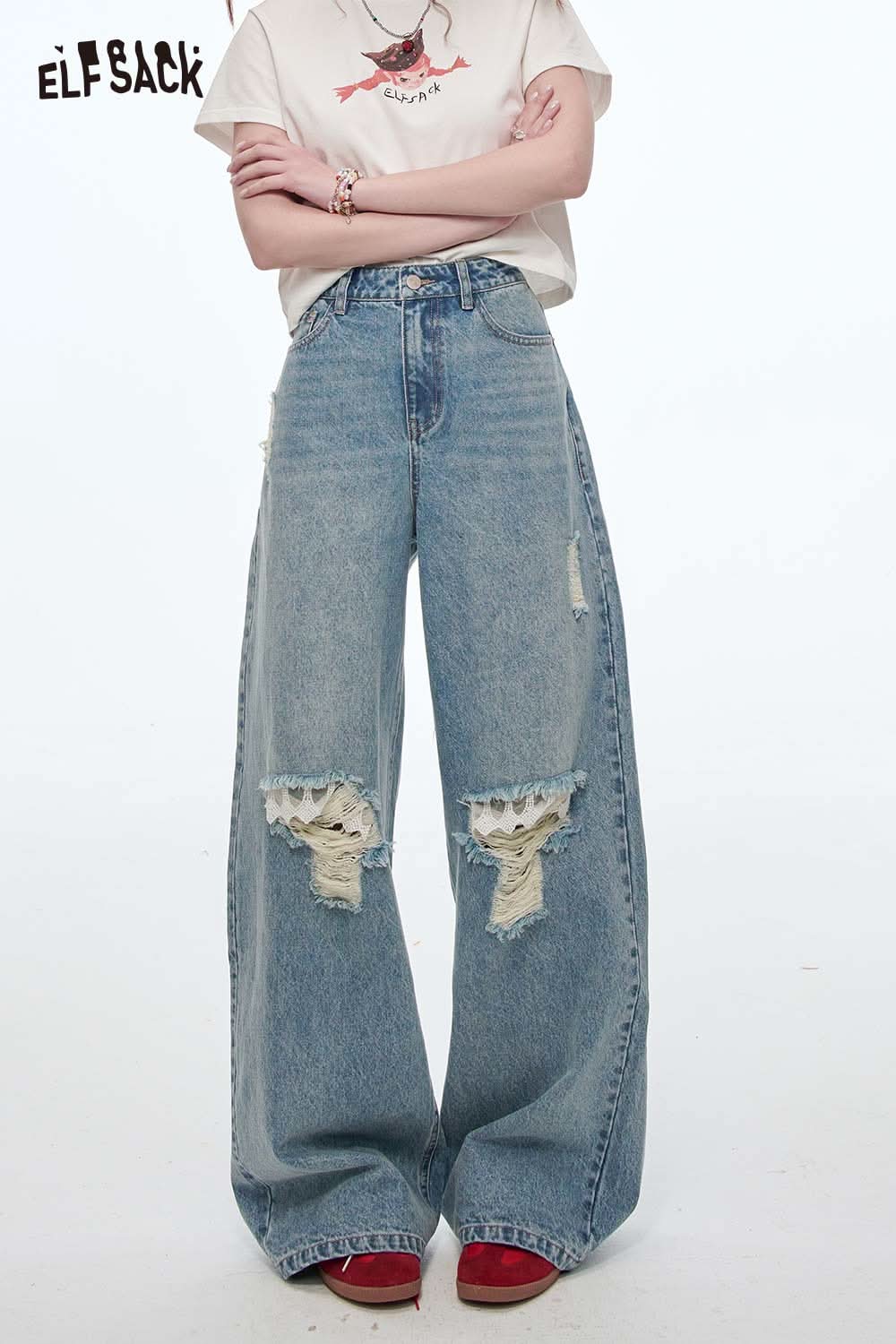 Stretch Denim Distressed Wide Leg Jeans