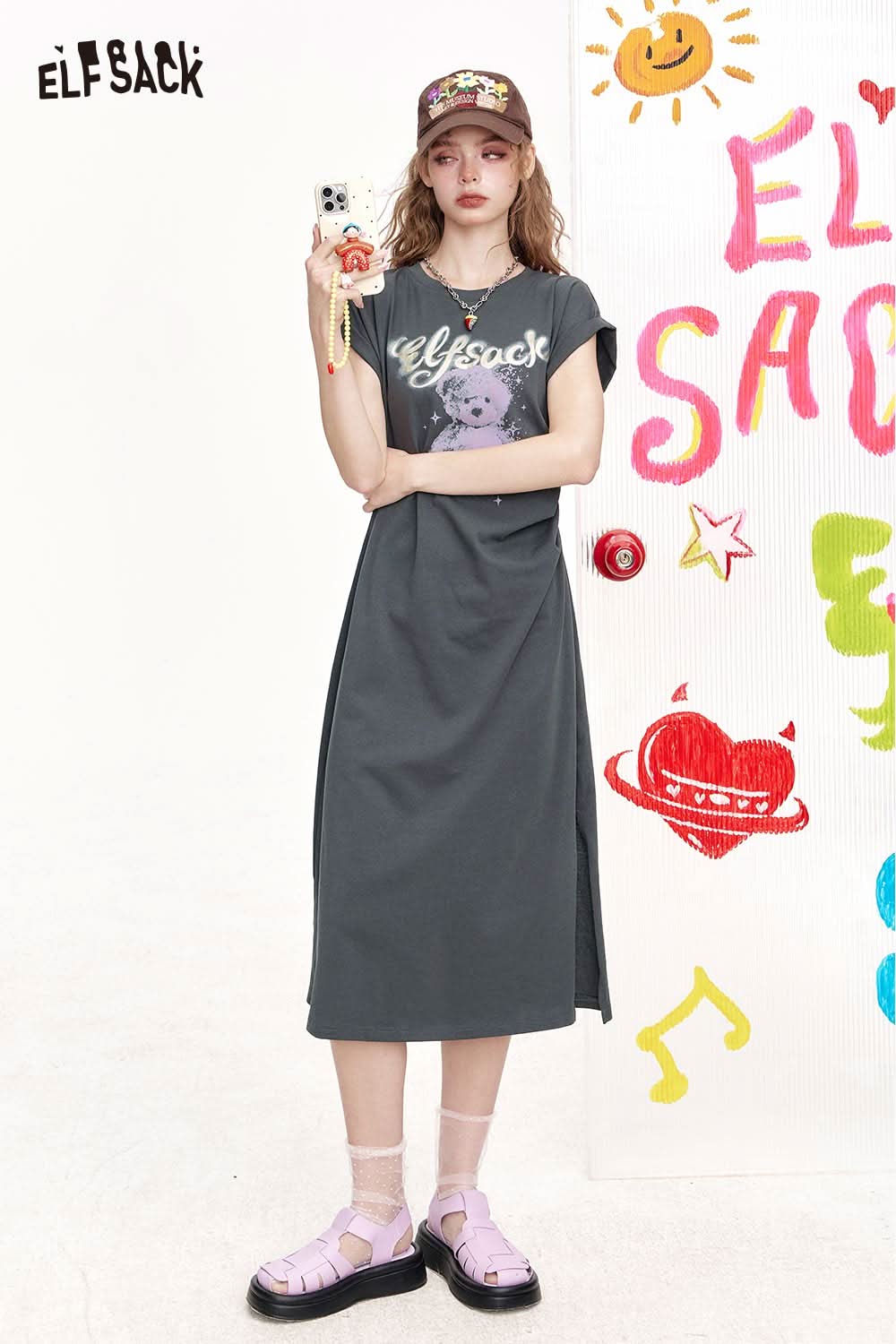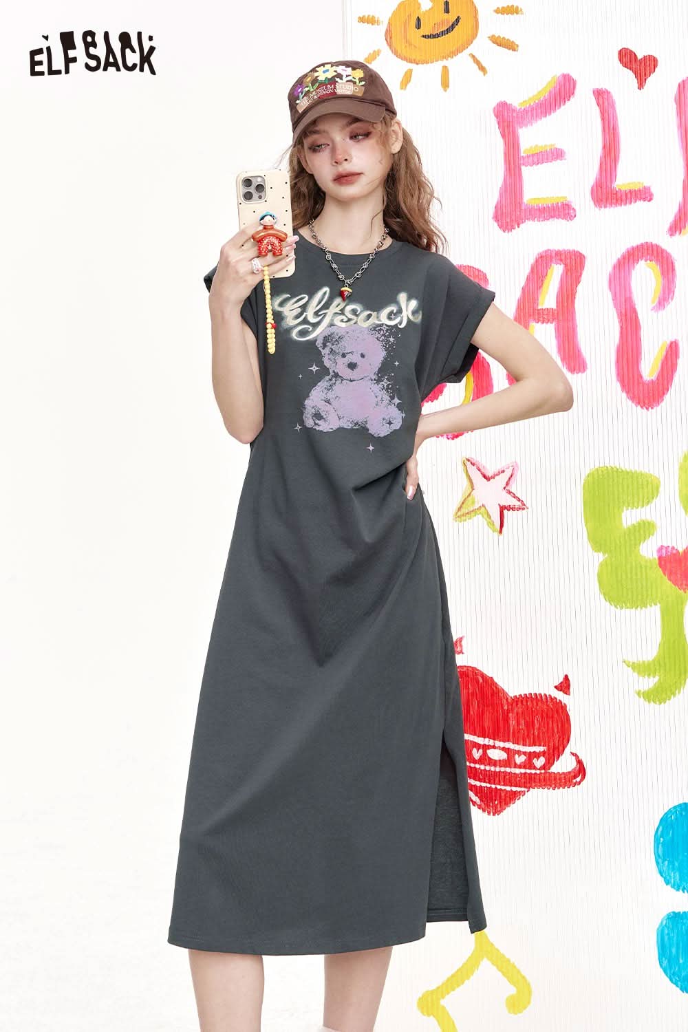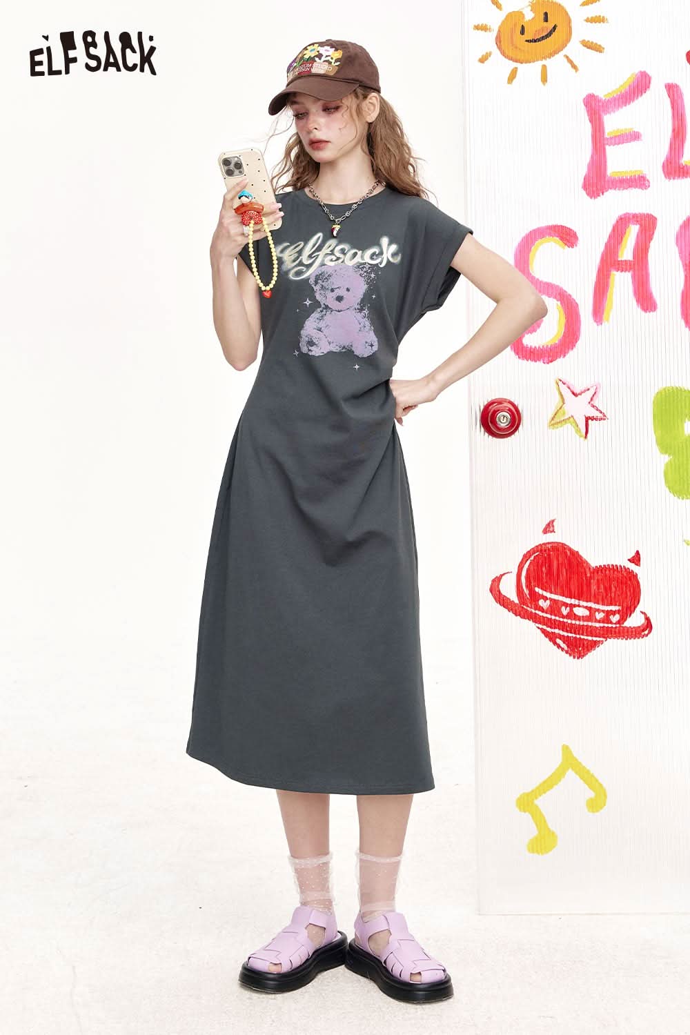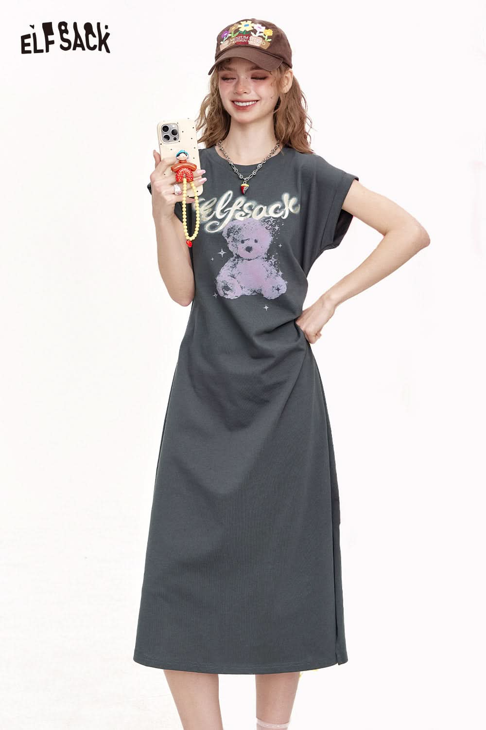 Cotton Jersey Smocked T-shirt Dress Letter Print