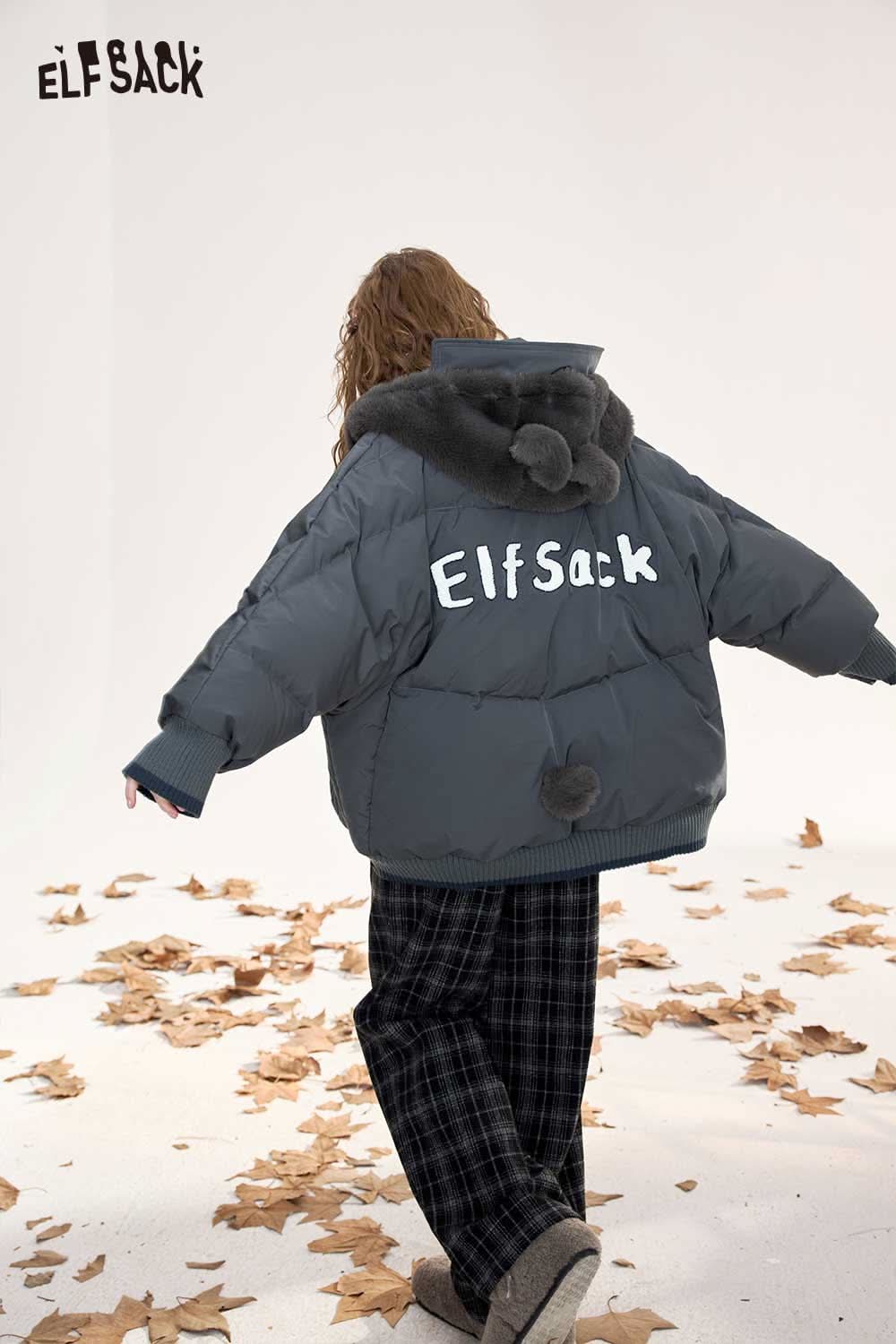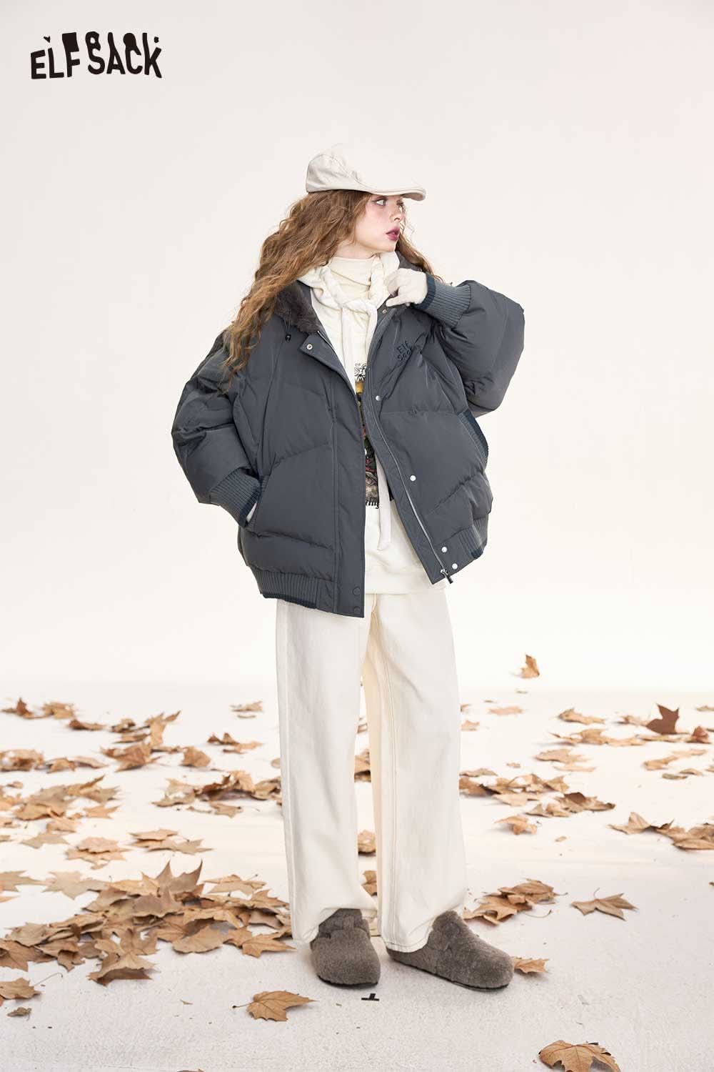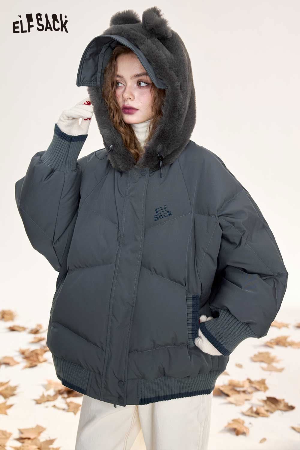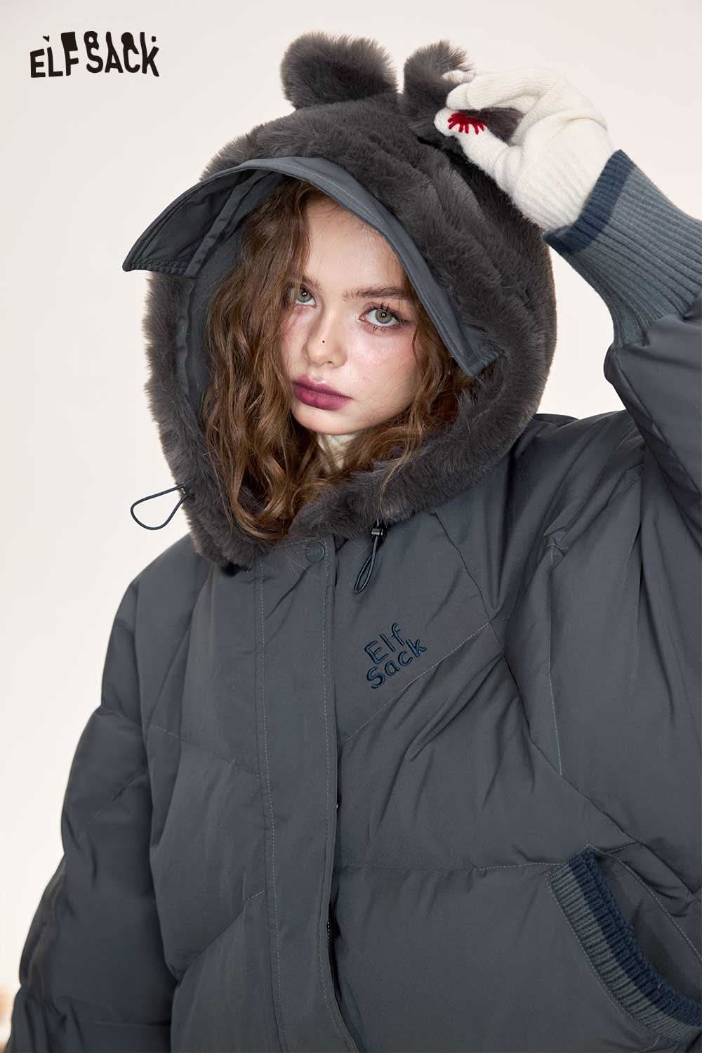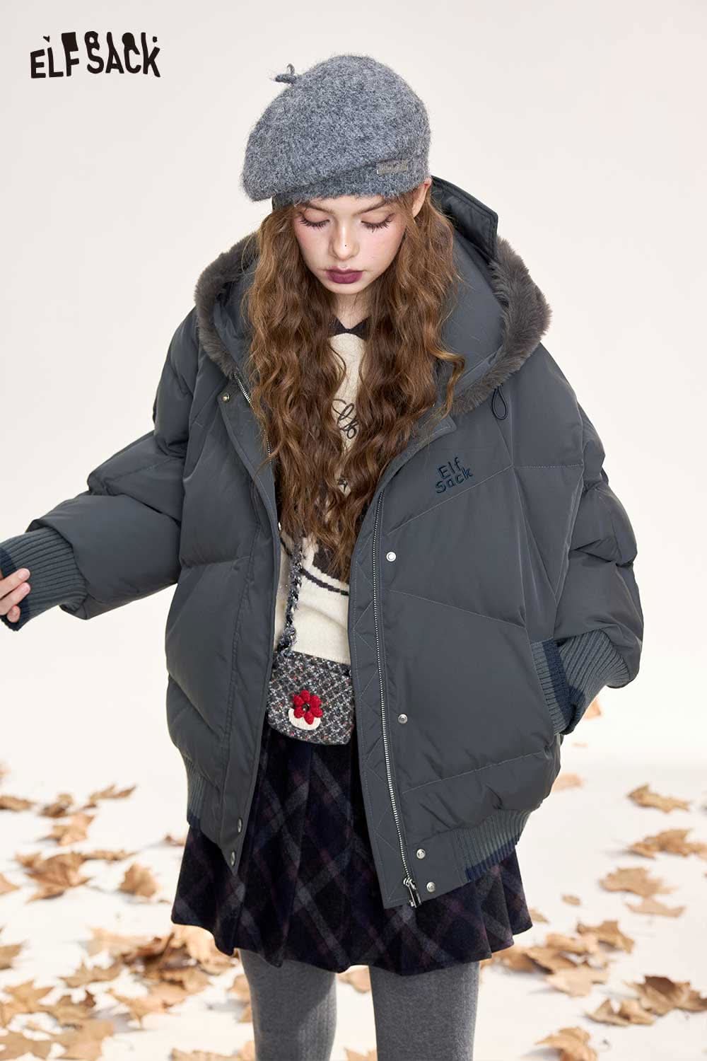 Light Oversized Black Fur Trim Hooded Down Jacket