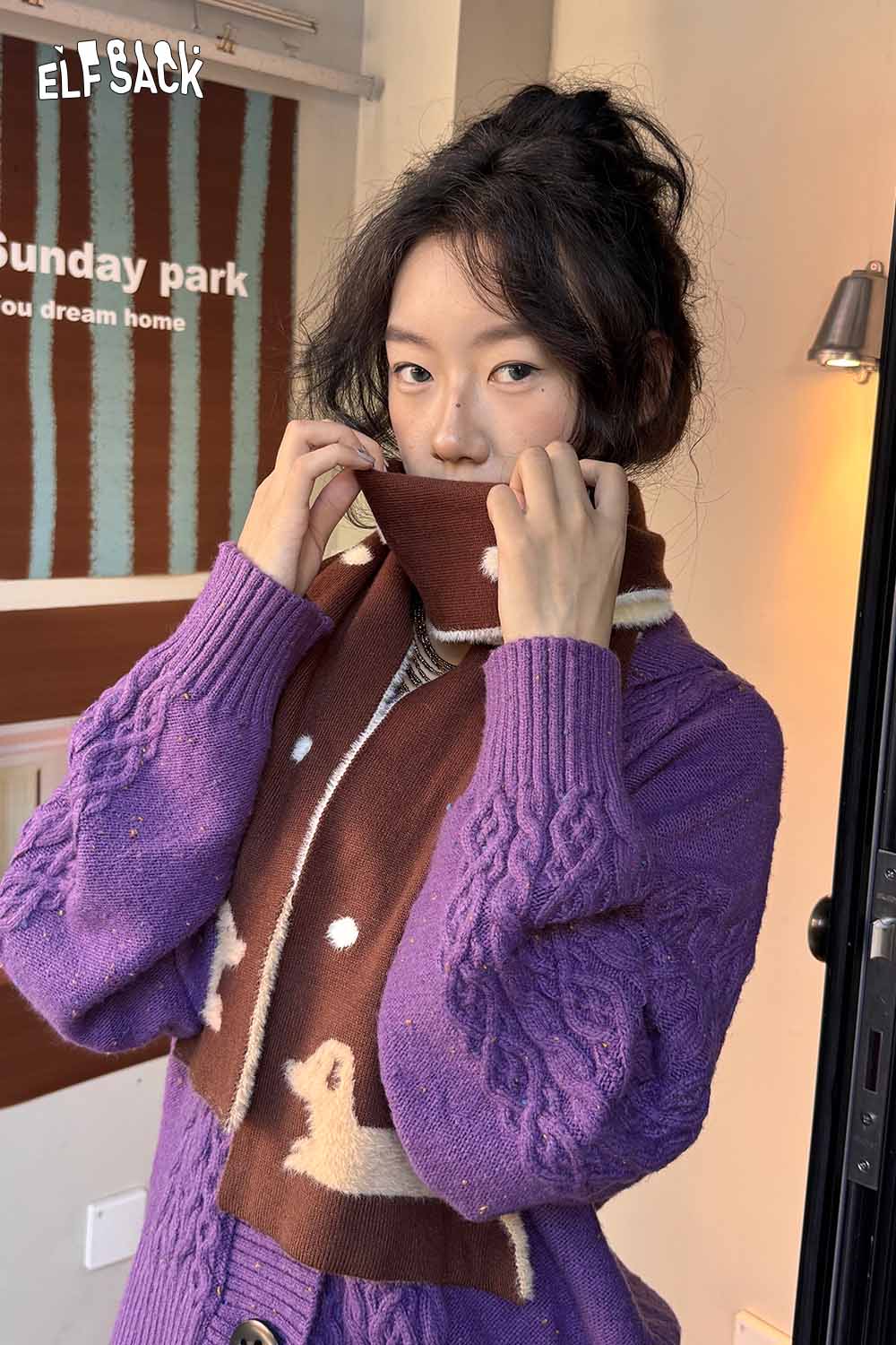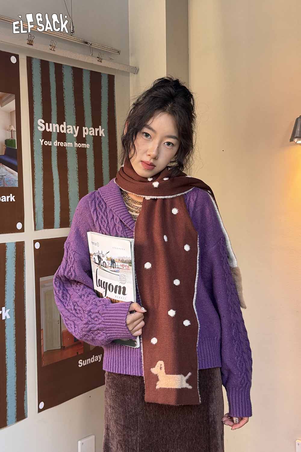 Soft Polka Dot Cartoon Puppy Print Fleece Scarf