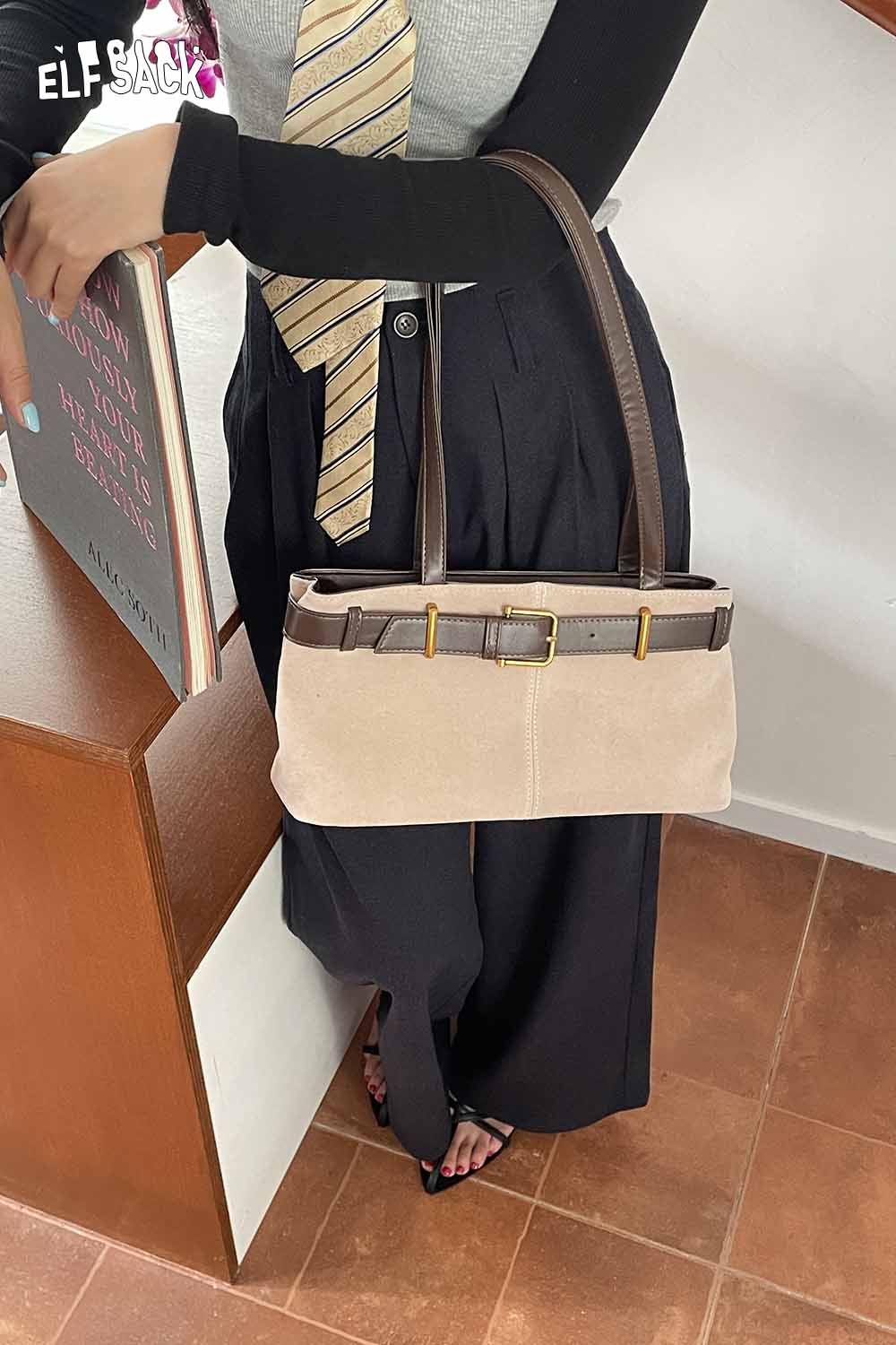Microsuede Structured Silhouette Zipper Closure Crossbody Bag