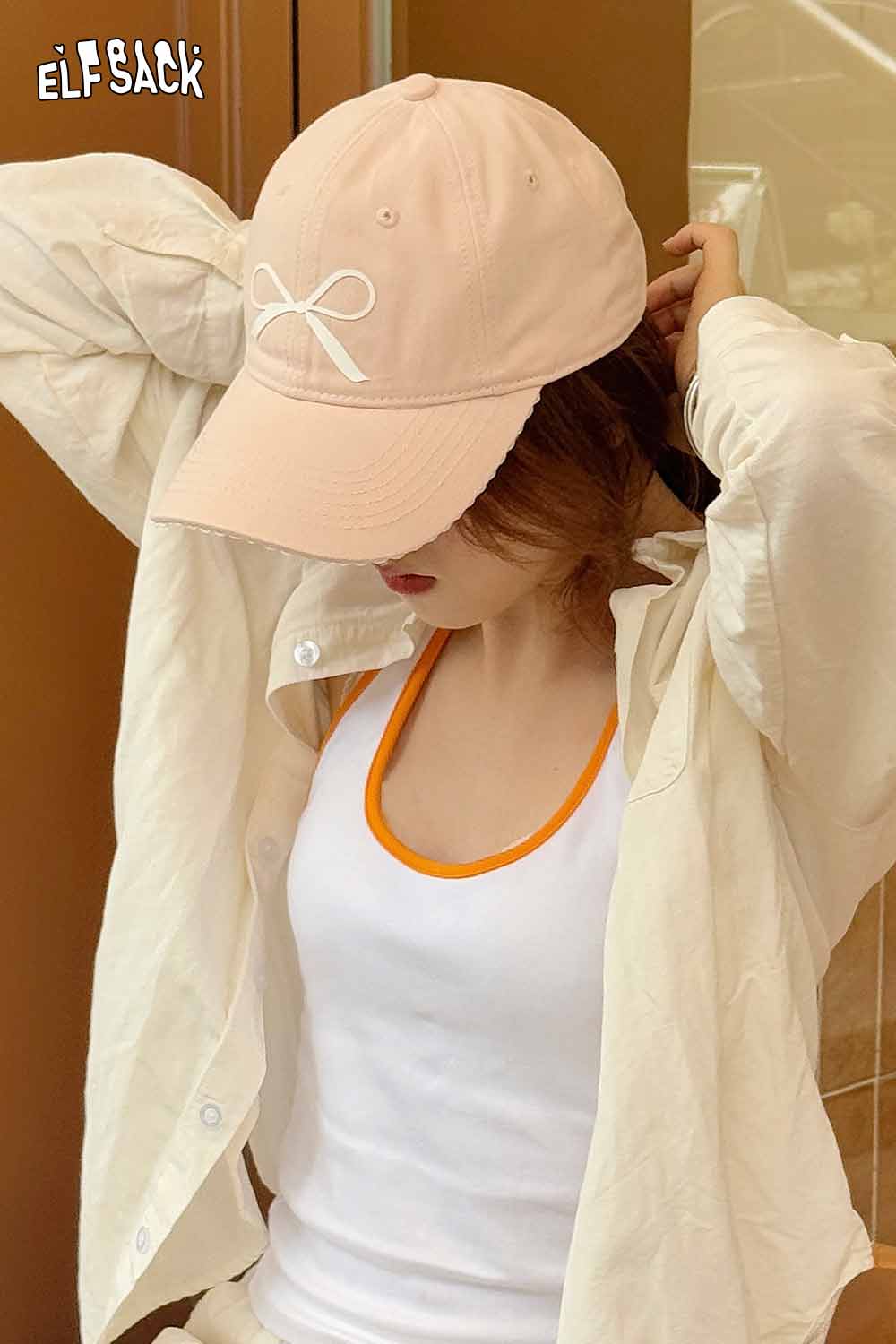 Premium Cotton Twill Women's Baseball Cap with Silk Bow Detail Wide Brim UV Protection Sun Hat