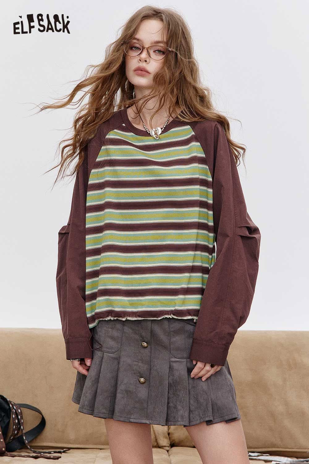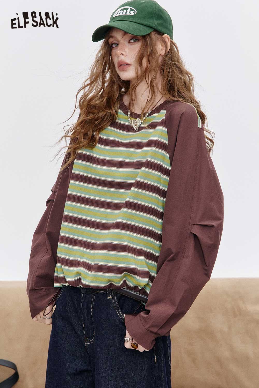 Breathable Cotton Blend Oversized Fit Contrast Color Stripe Design Tee