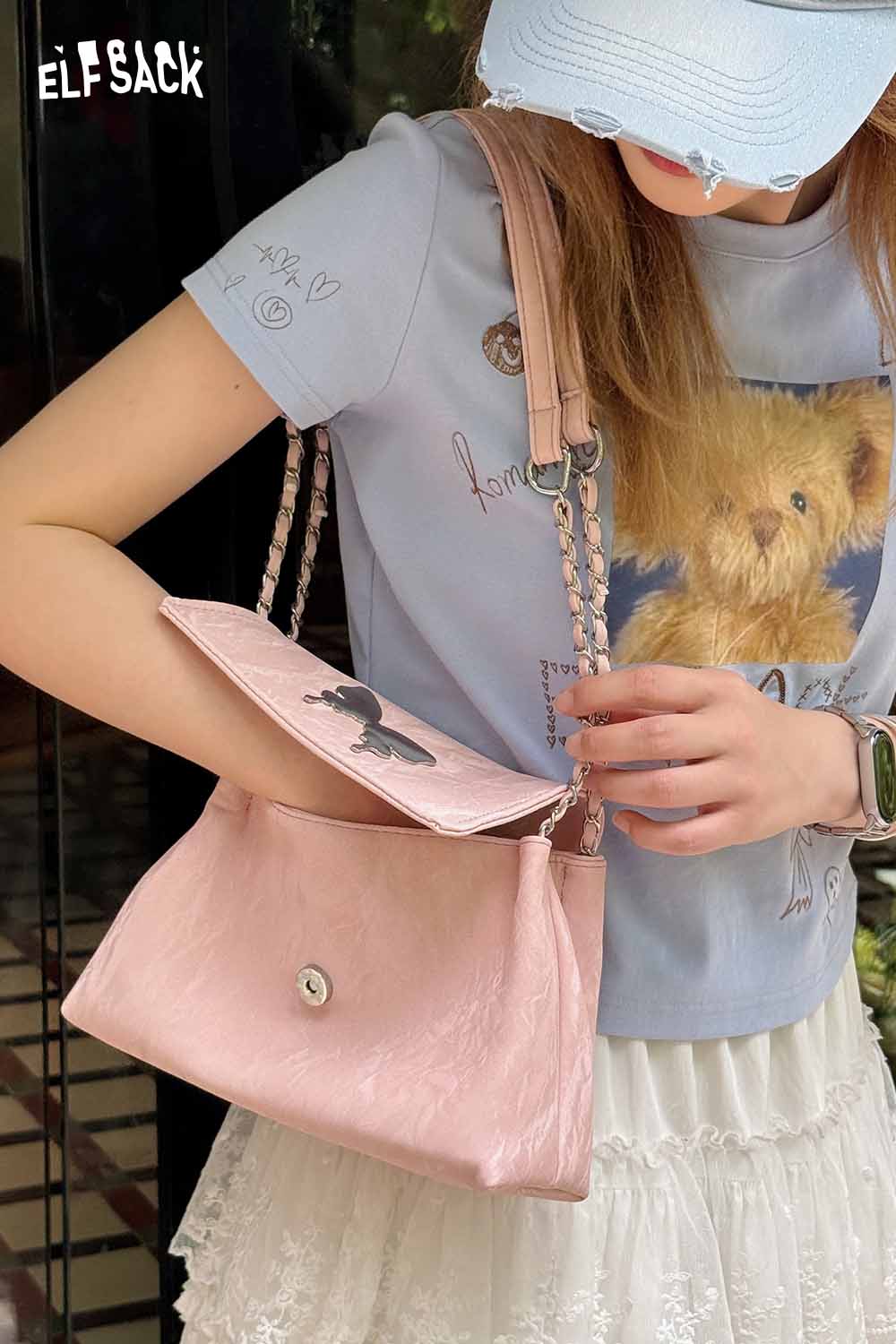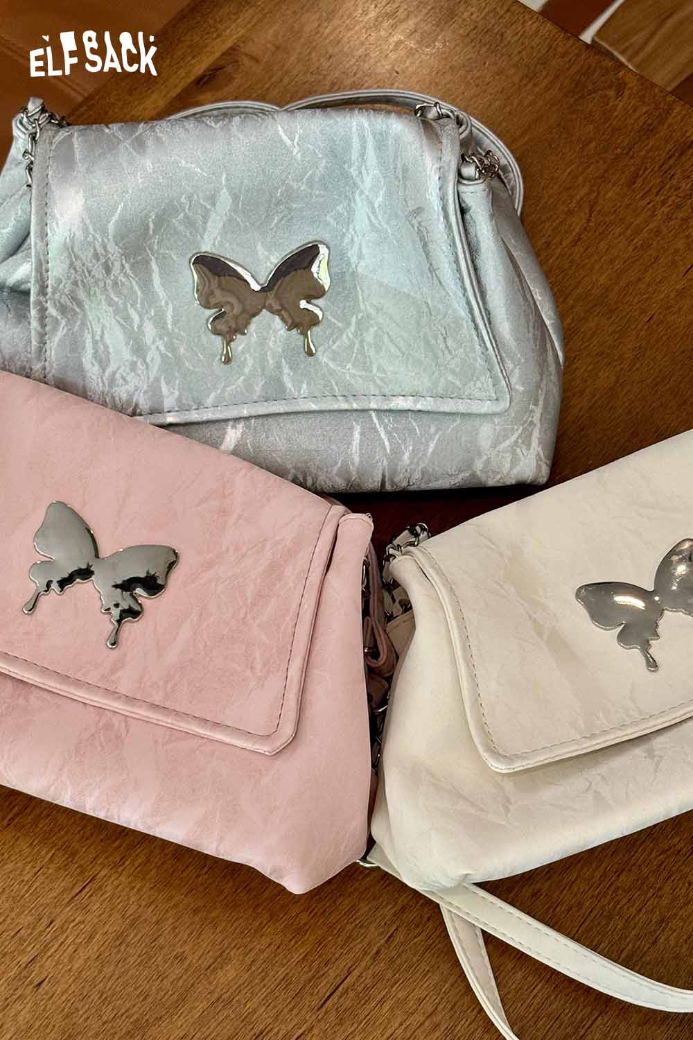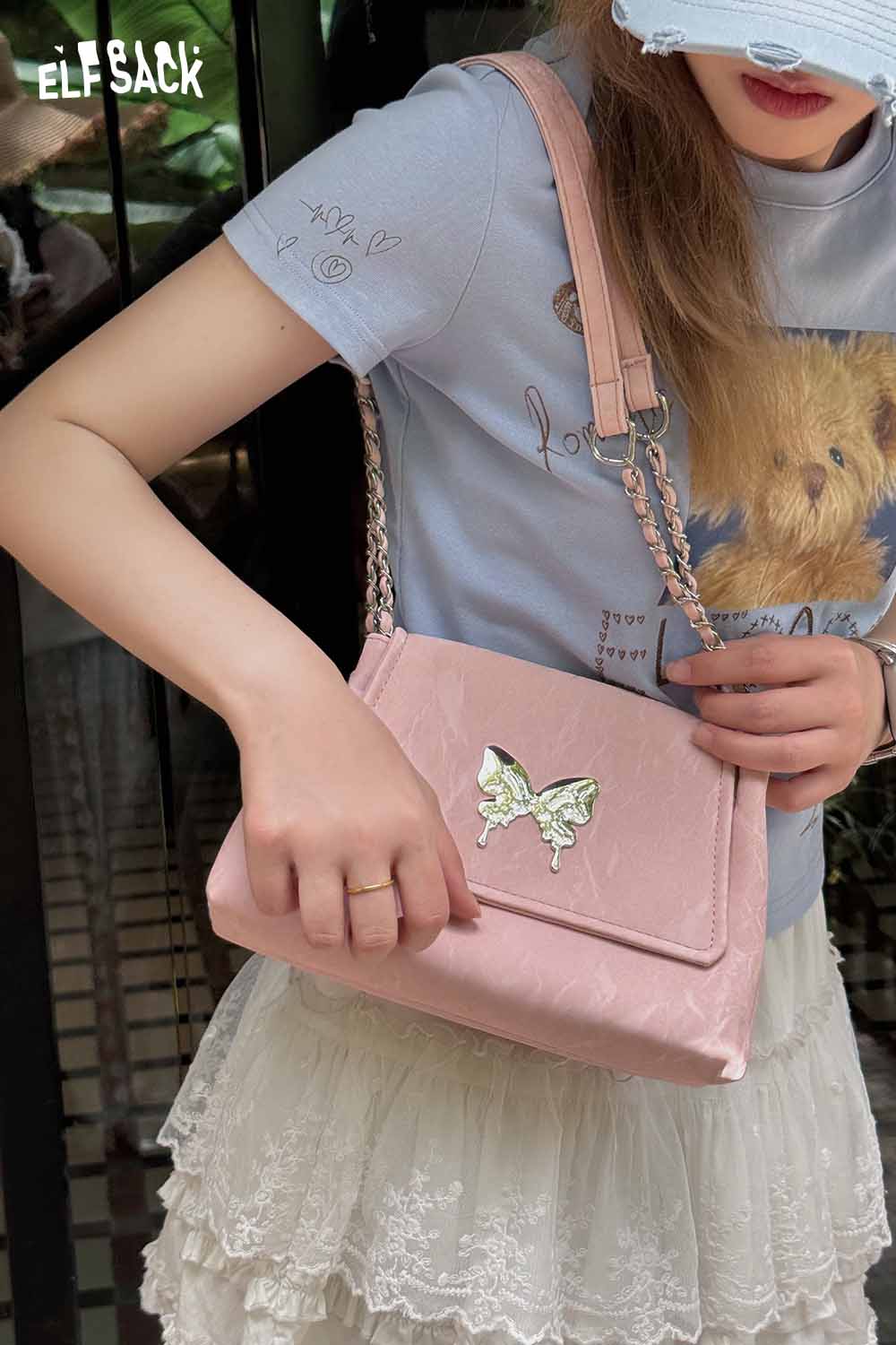 Metal Butterfly Leather Chain Strap Sweet Shoulder Bag