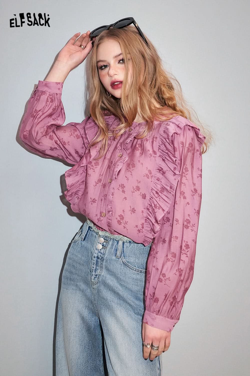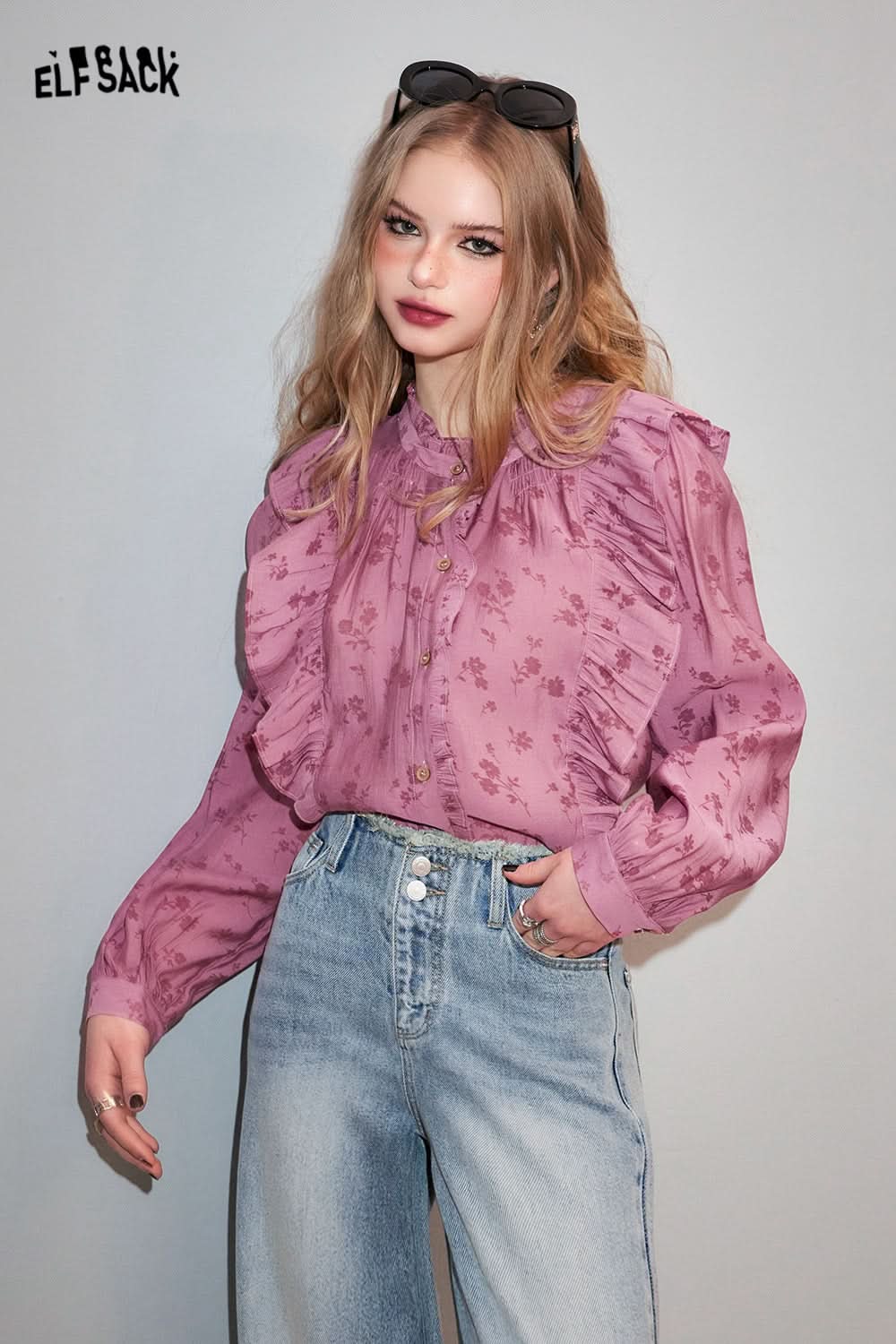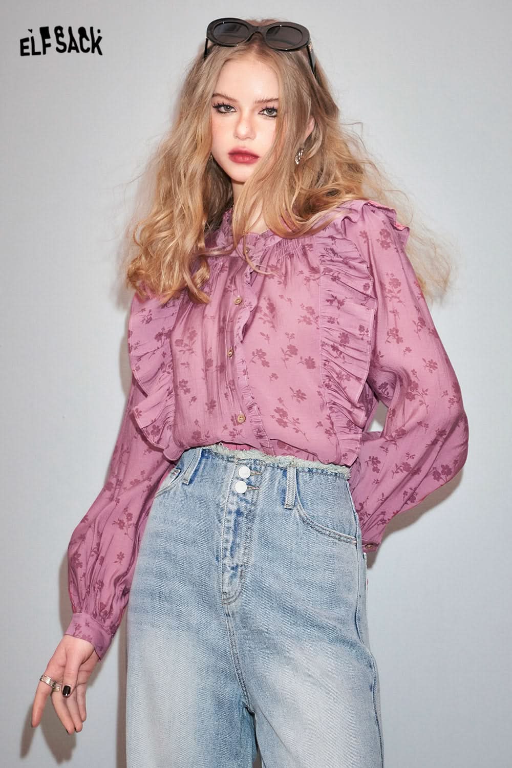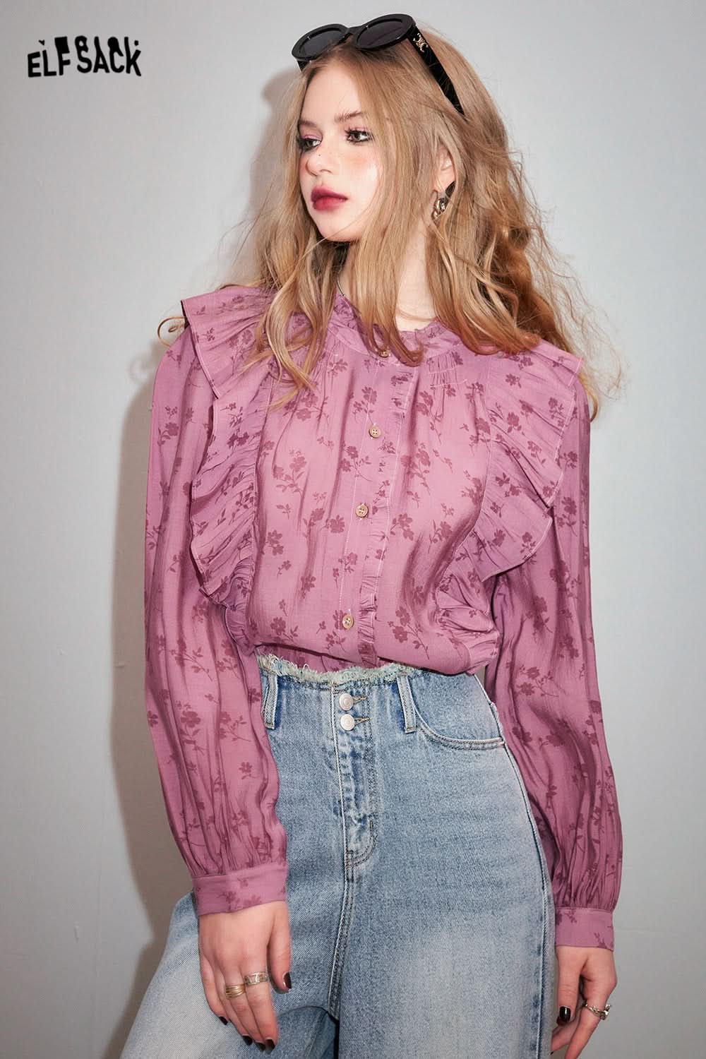 French Chiffon Lace Shirt's Spring Lantern Sleeve Mesh Top