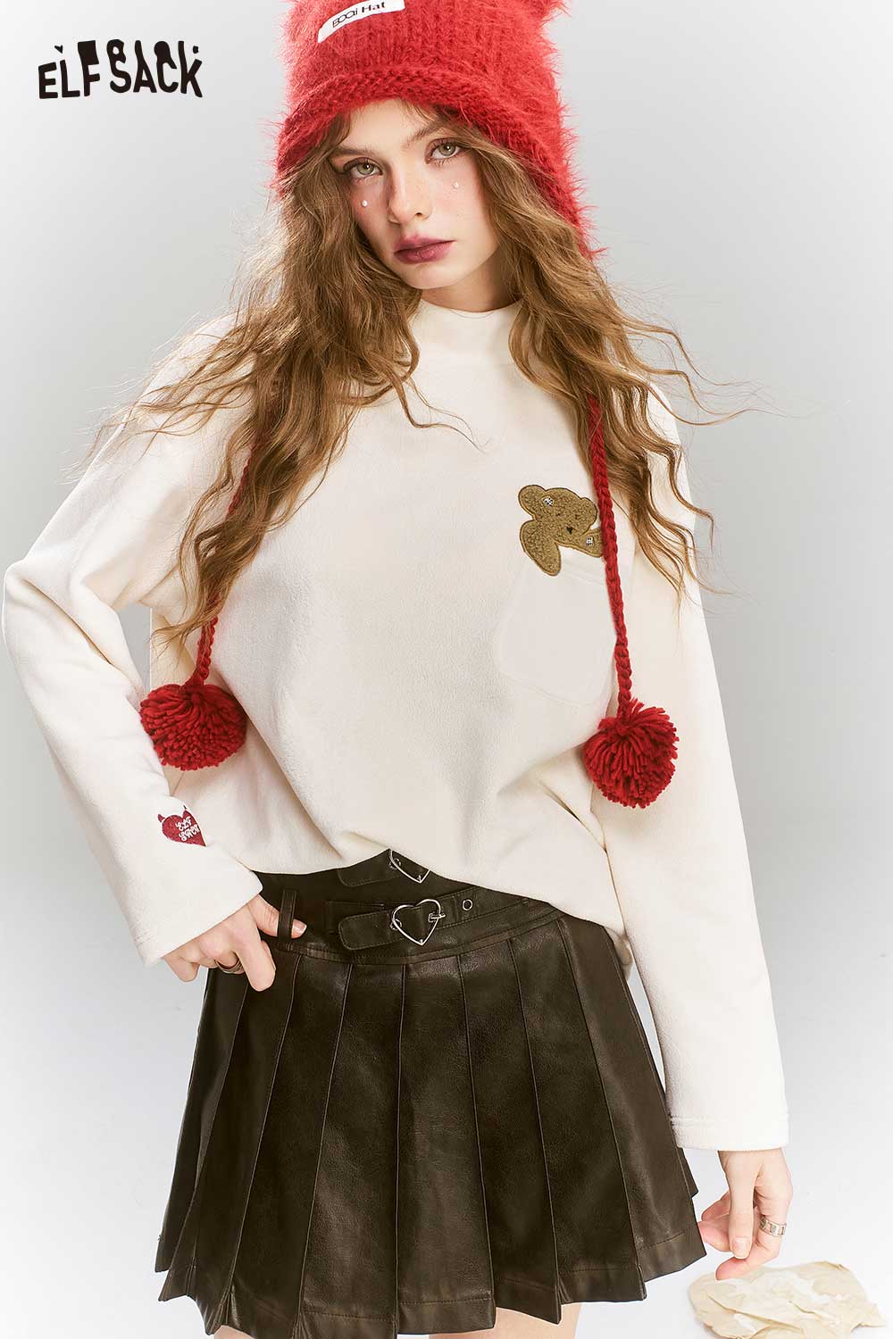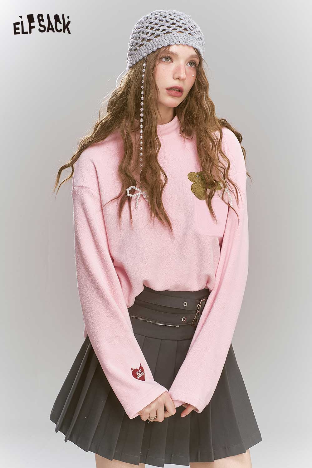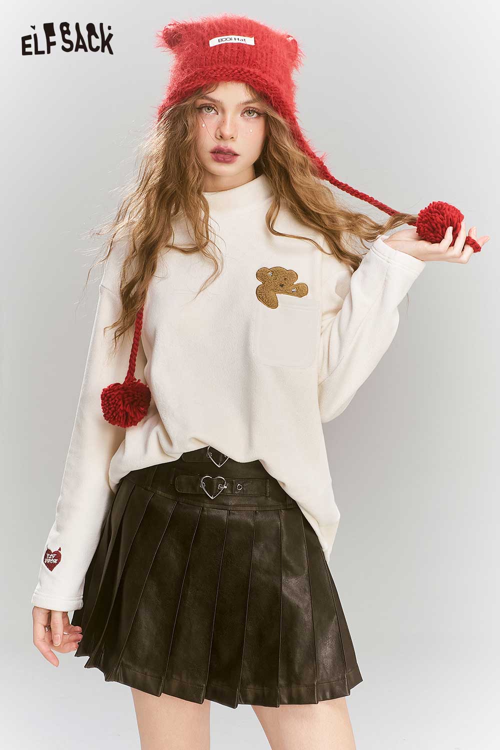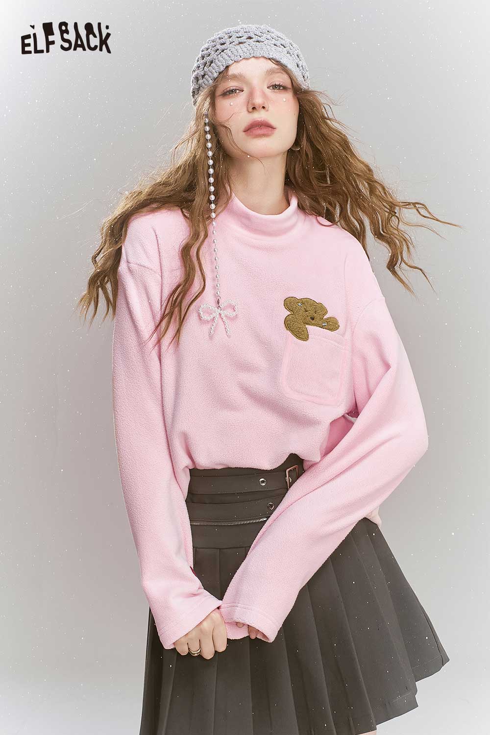 Plush Bear Double Face High Neck Slim Fit Tshirt