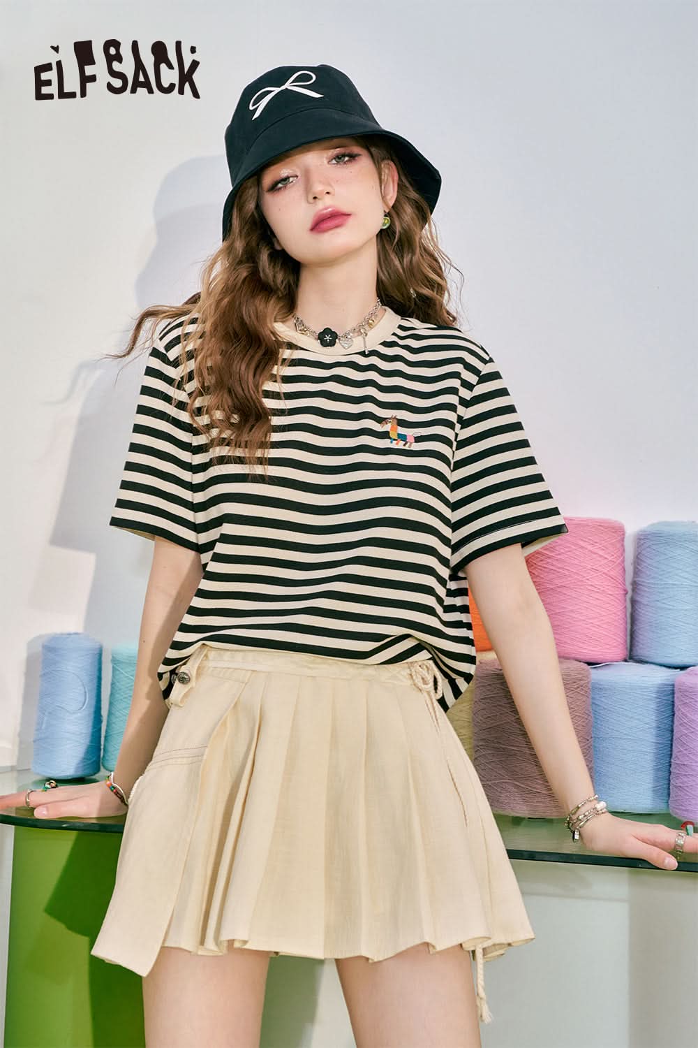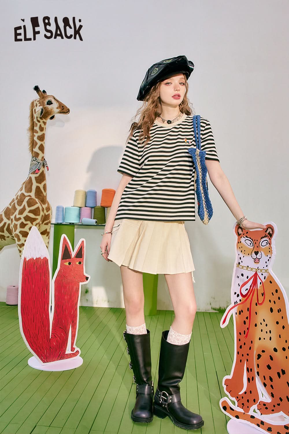 High Waist A-Line Pure Cotton Half Skirt's Versatile Sweet Pleated Short Skirt