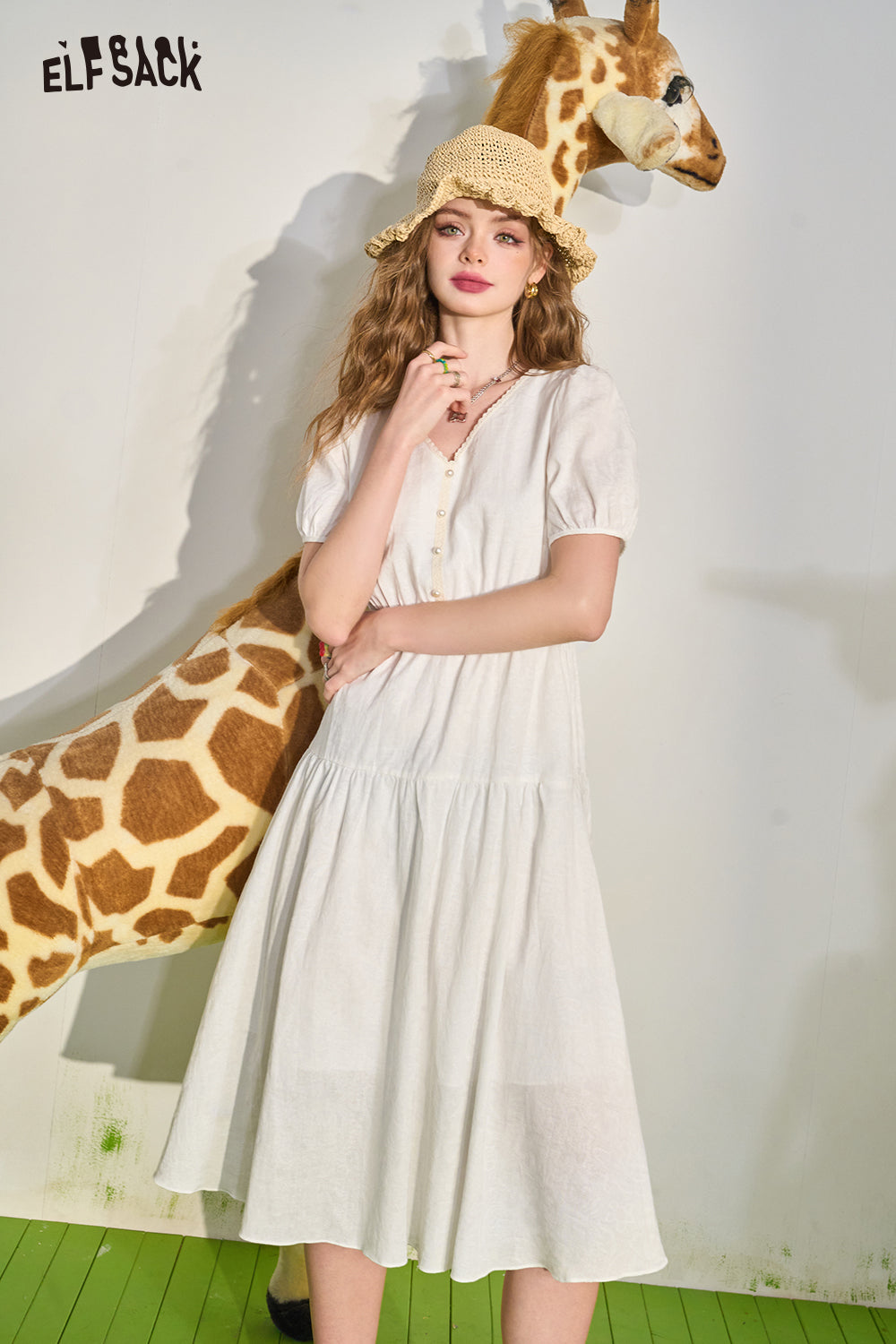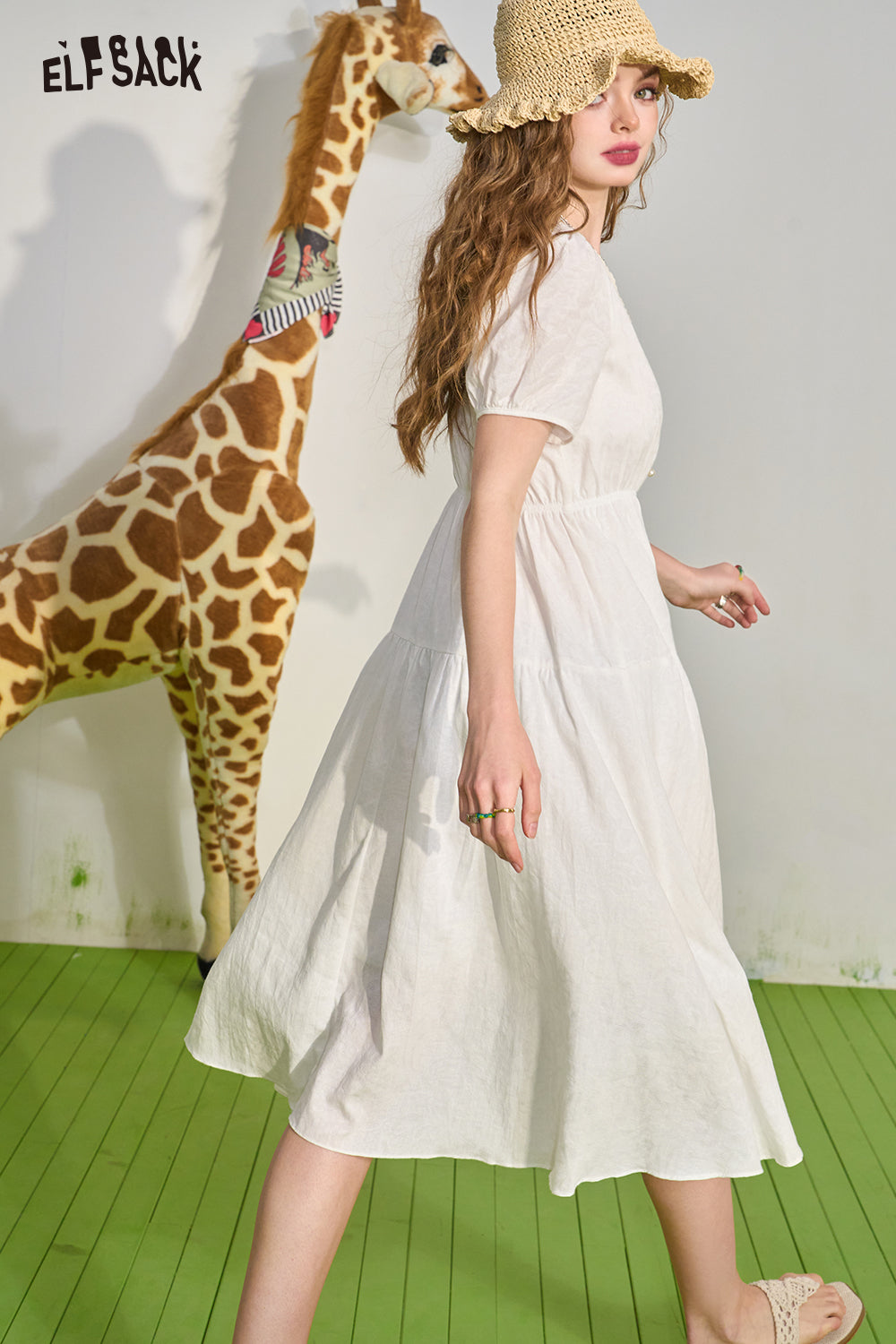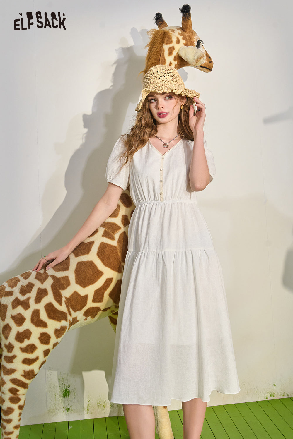 French White Draped Short Sleeve Dress