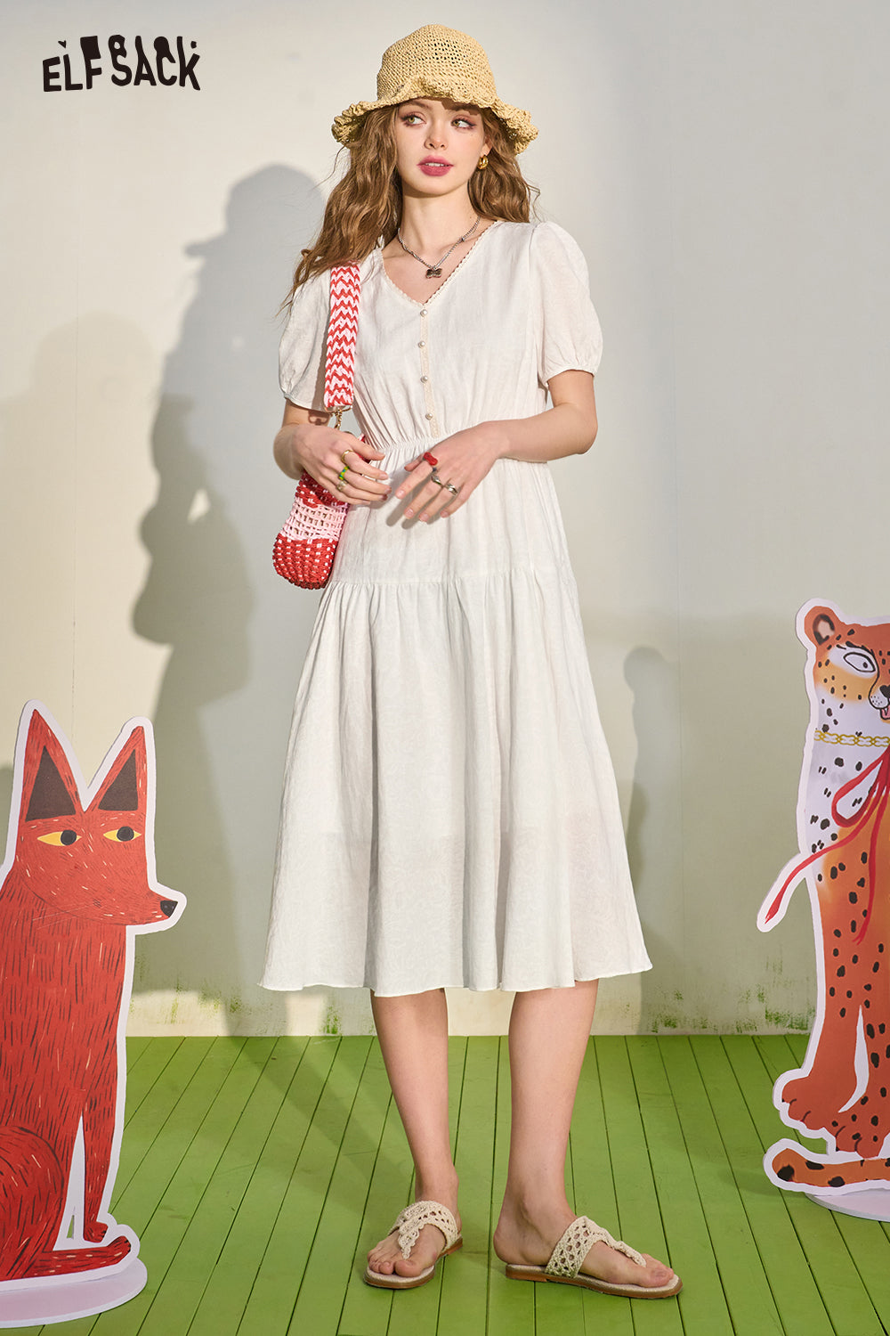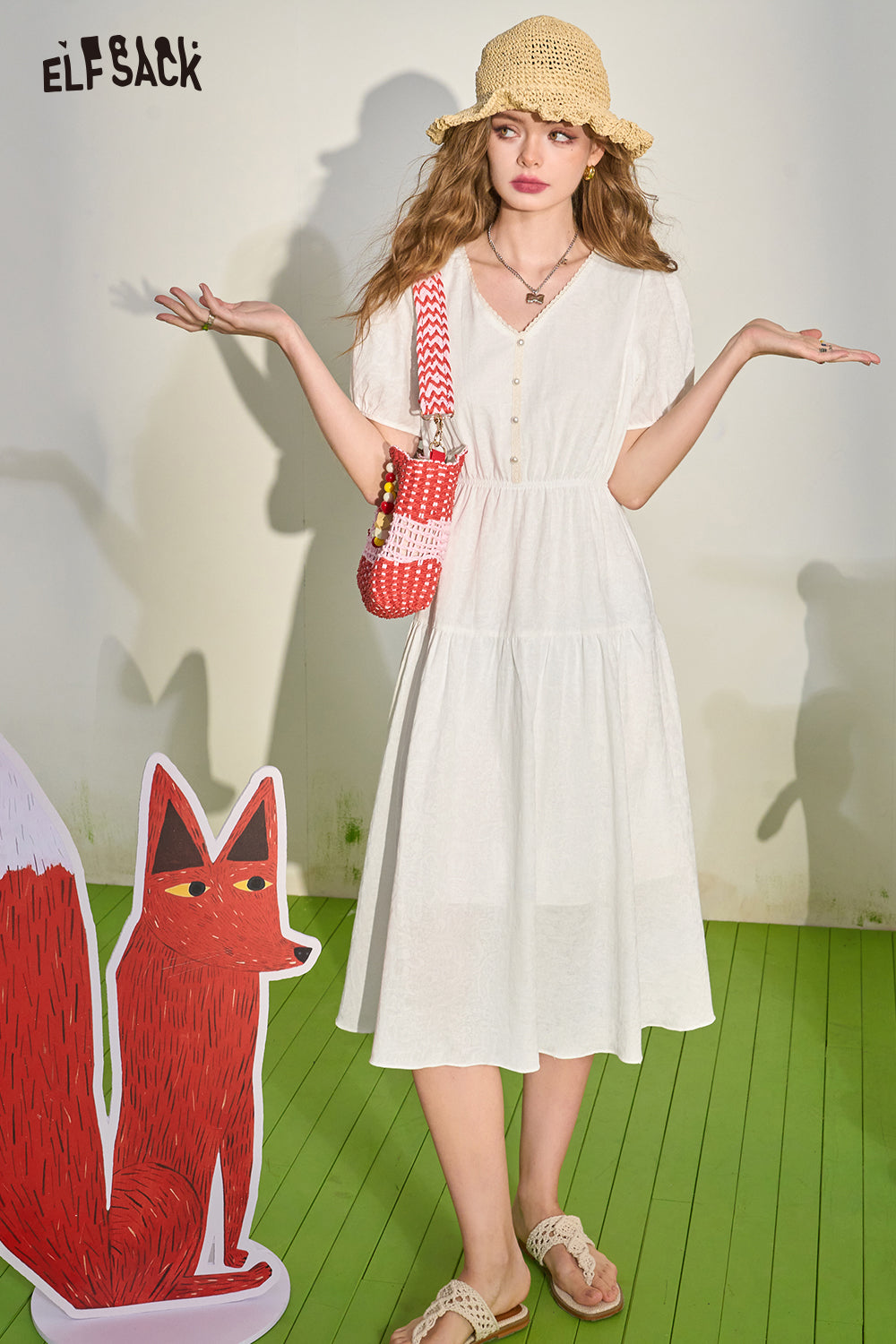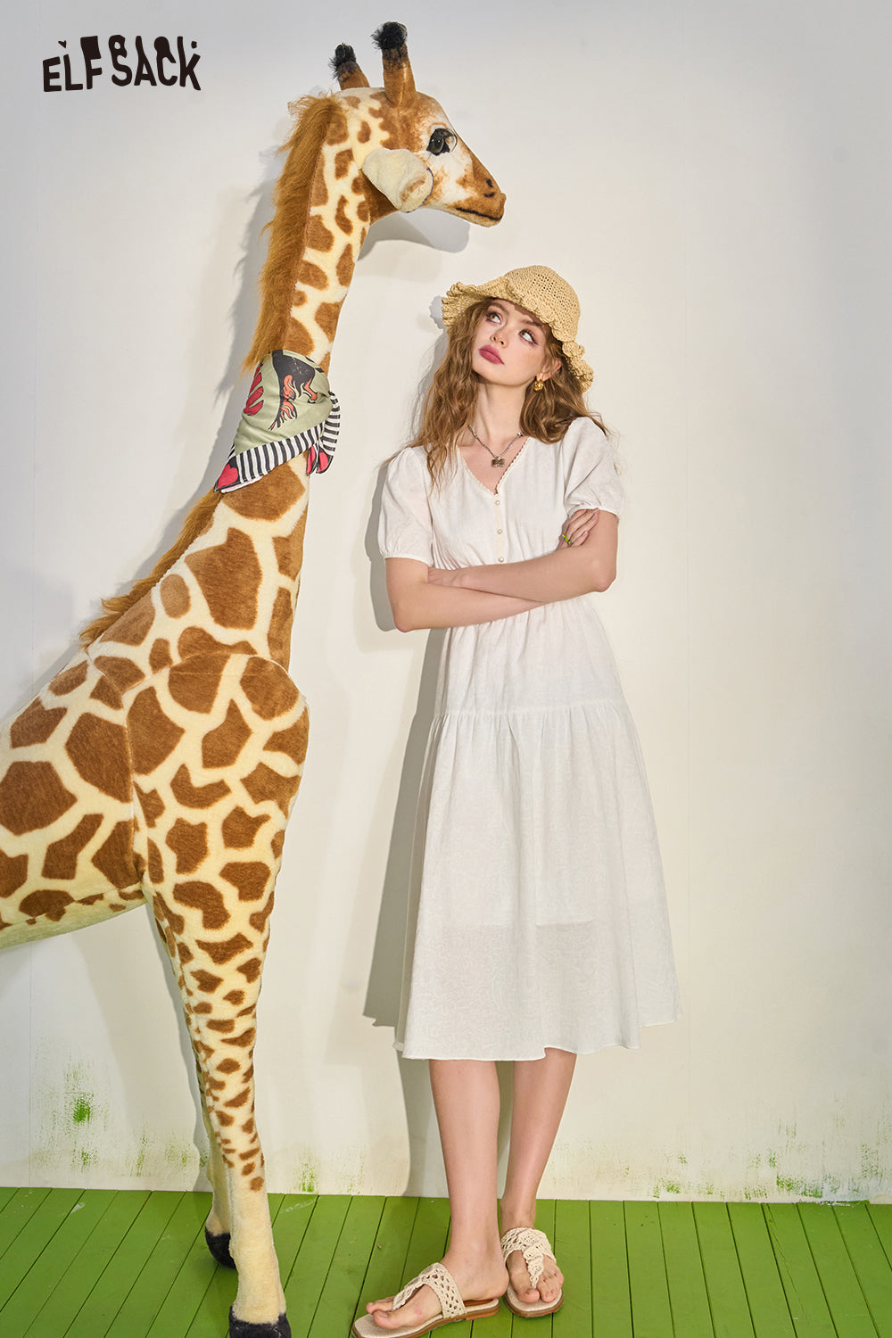 French White Draped Short Sleeve Dress