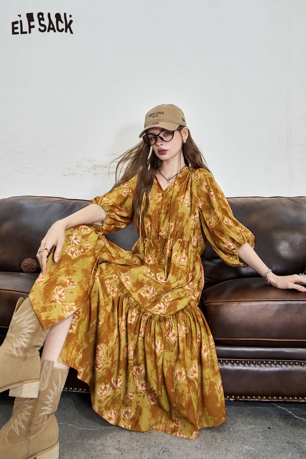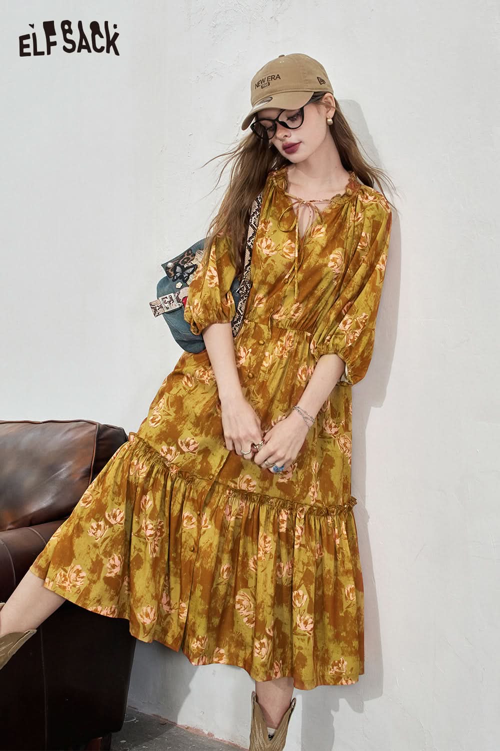 Ruffle V-neck floral dress Temperament vacation style dress