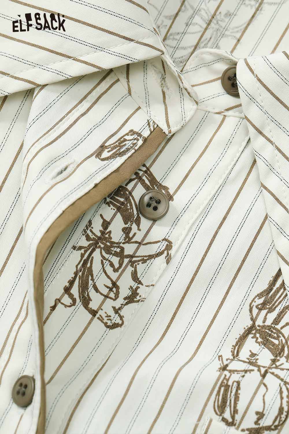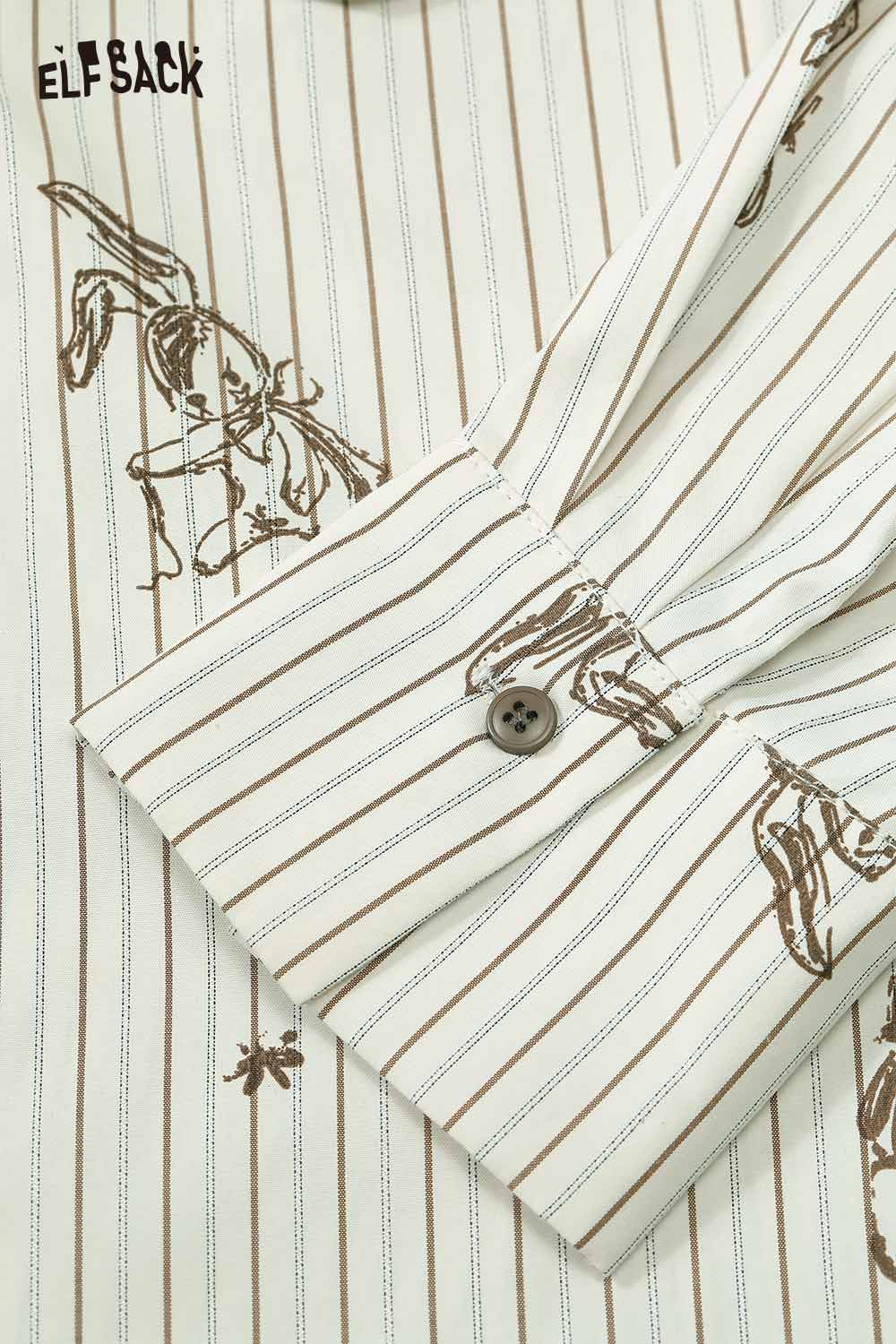 ELFSACK women's stripe poplin shirt with button detail and artistic print design