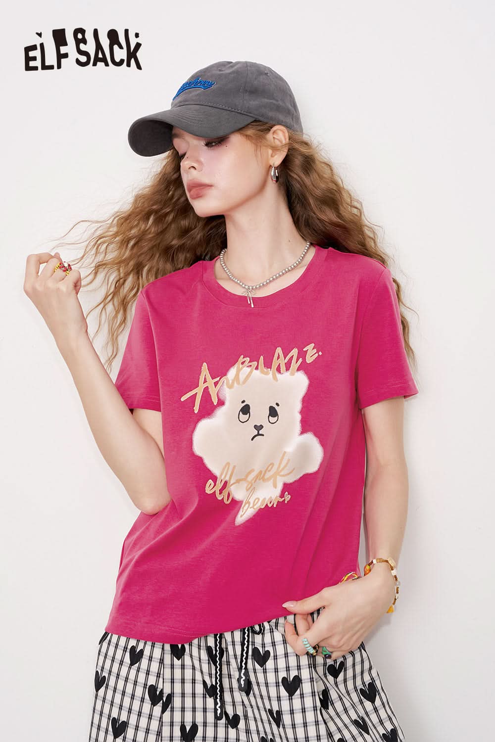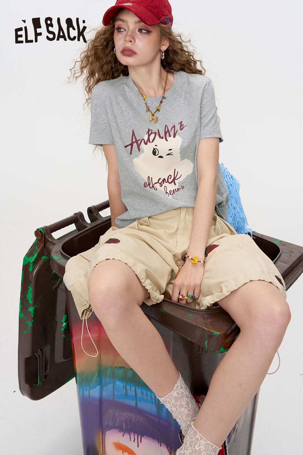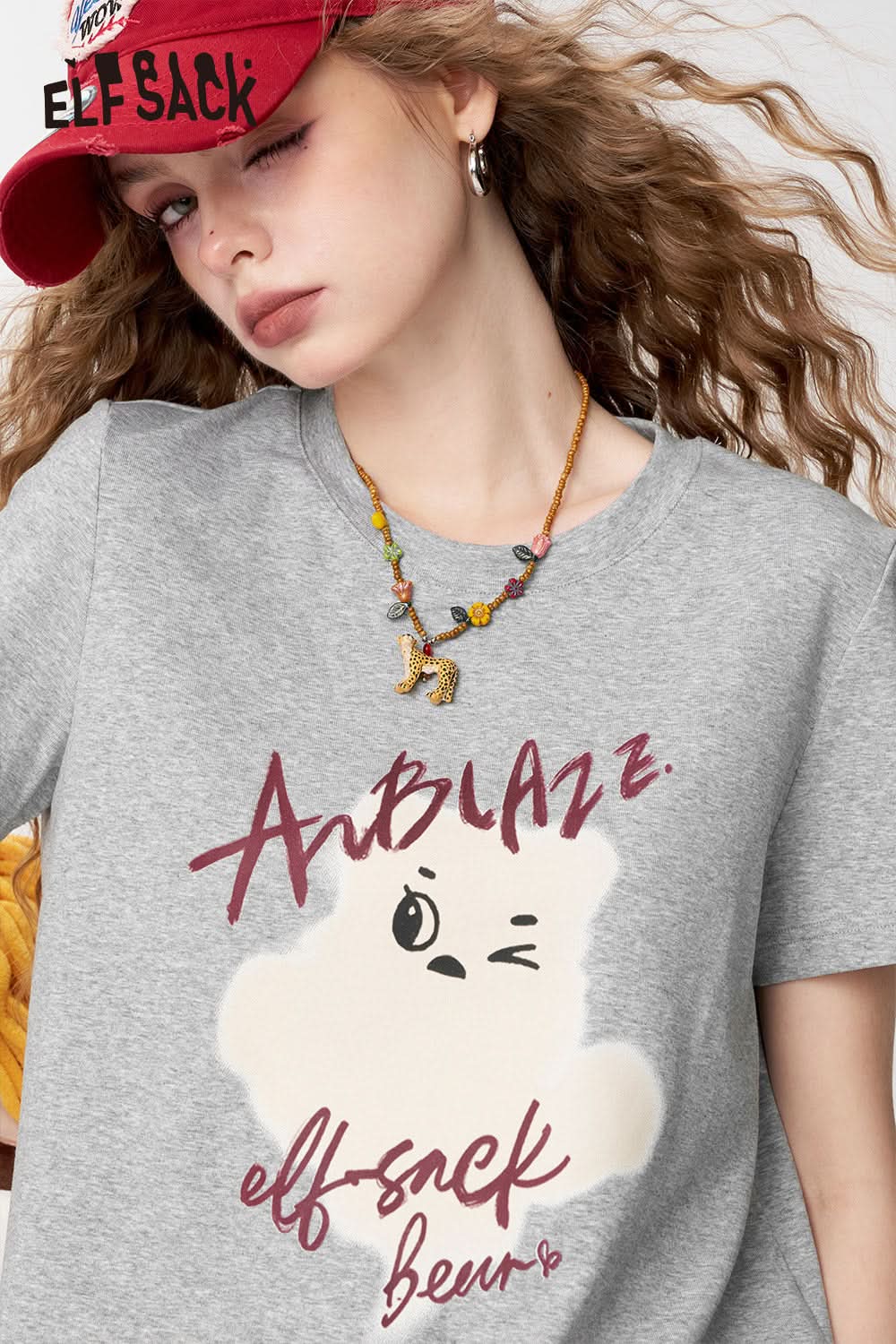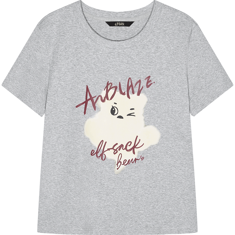 Grey Printed Square Shoulder Short Sleeve T-Shirt