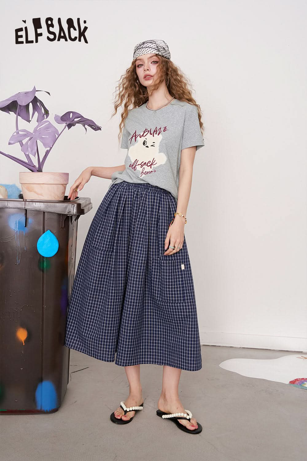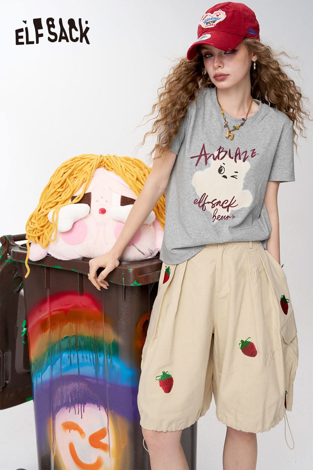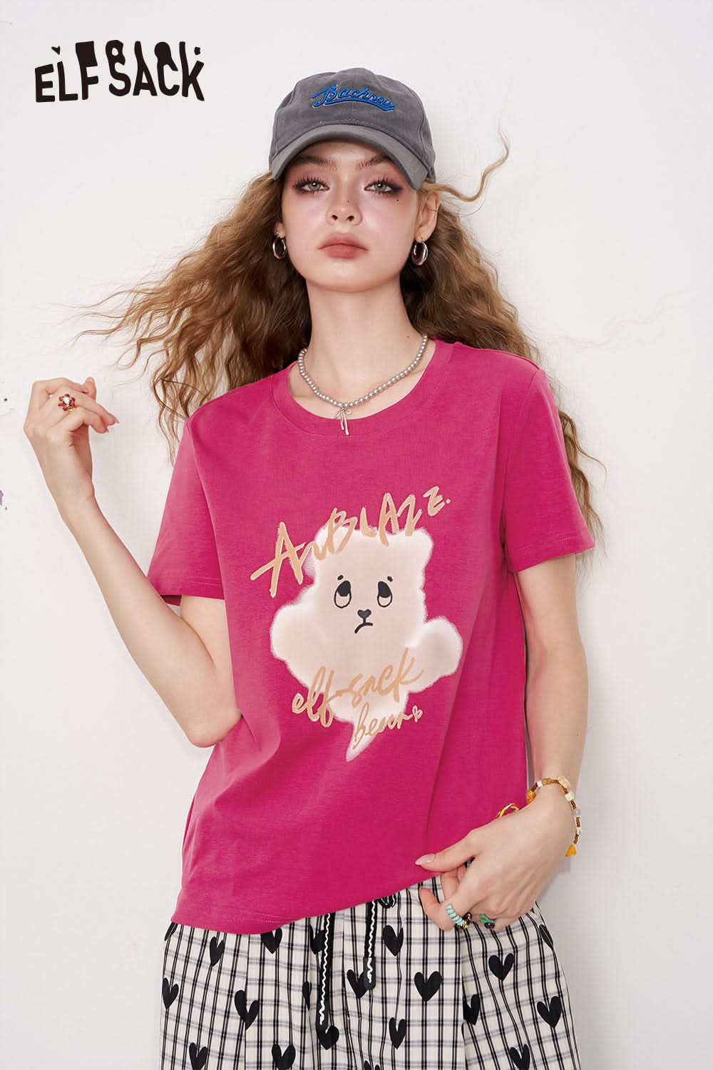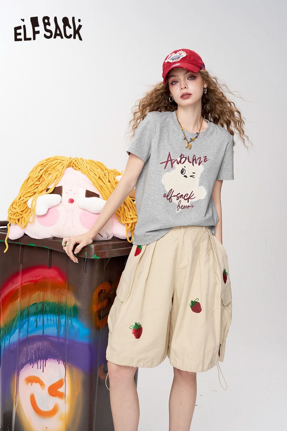 Grey Printed Square Shoulder Short Sleeve T-Shirt