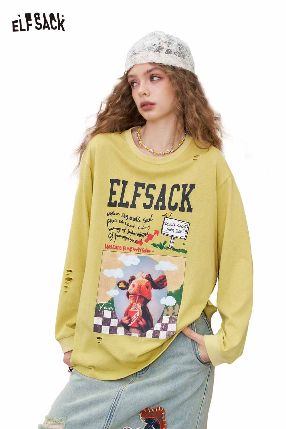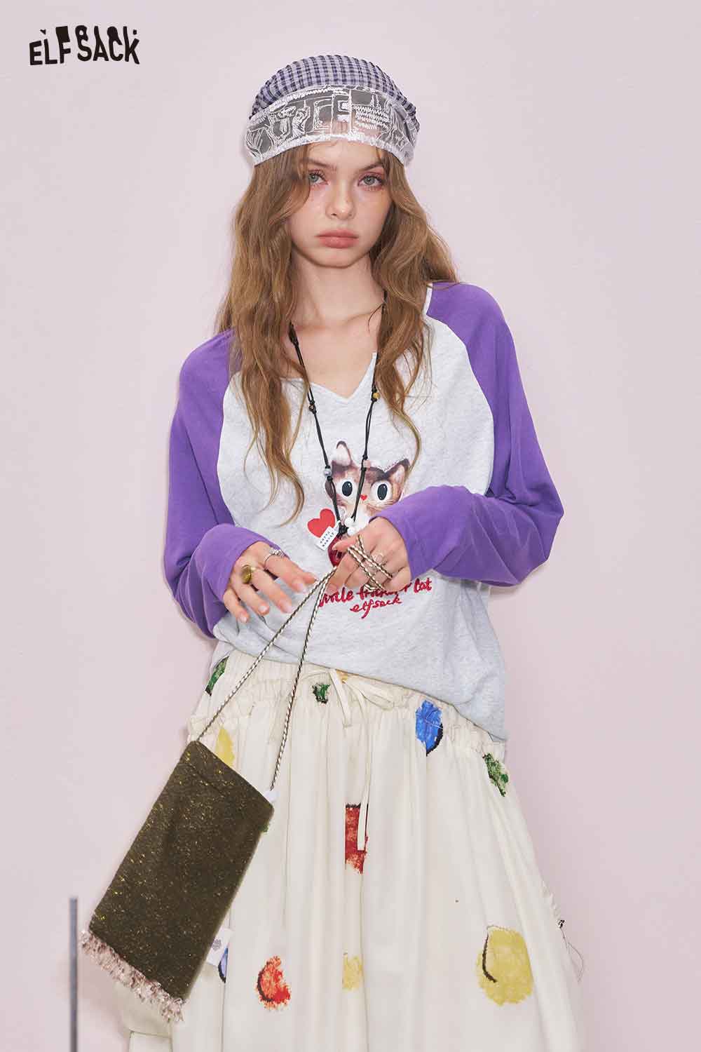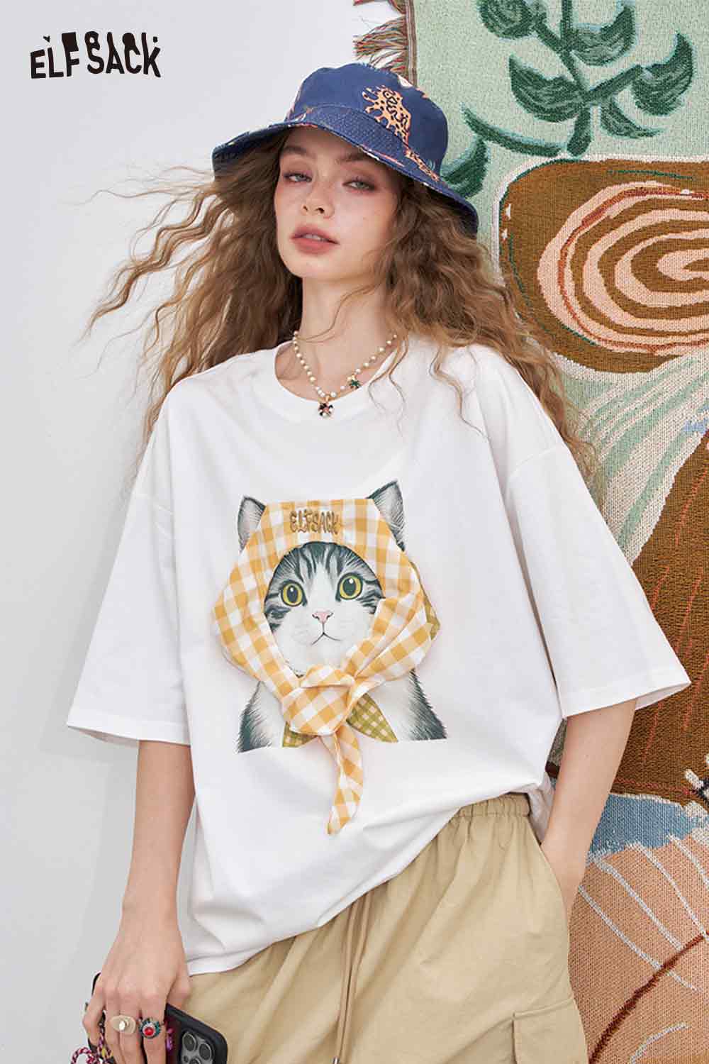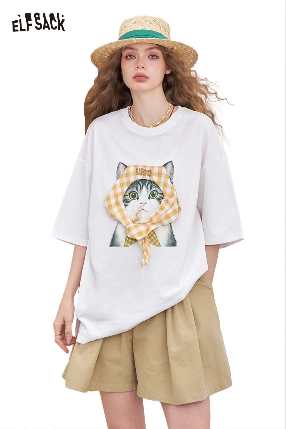 ELFSACK Pink Cat Print Short Sleeve T-Shirt