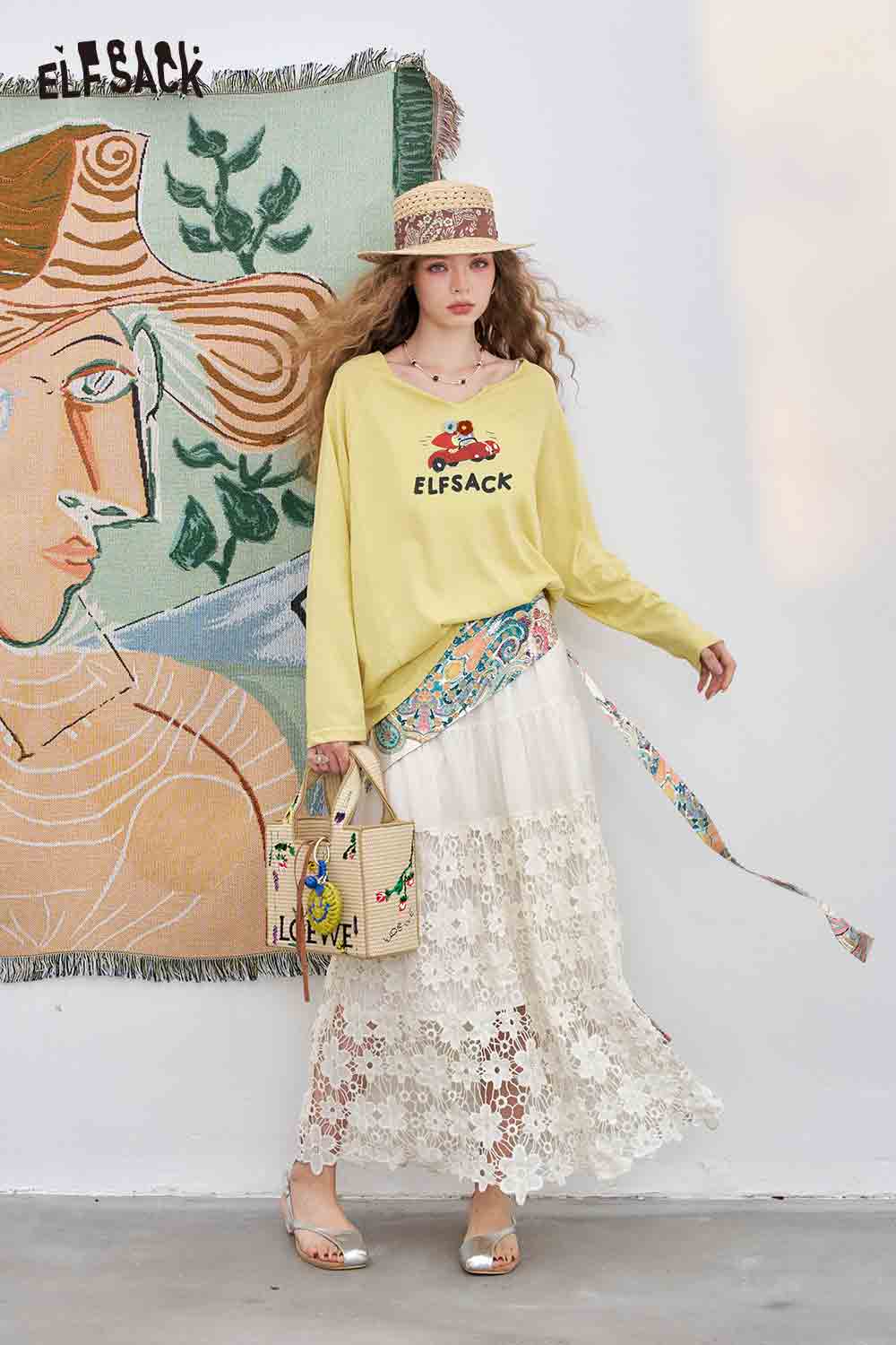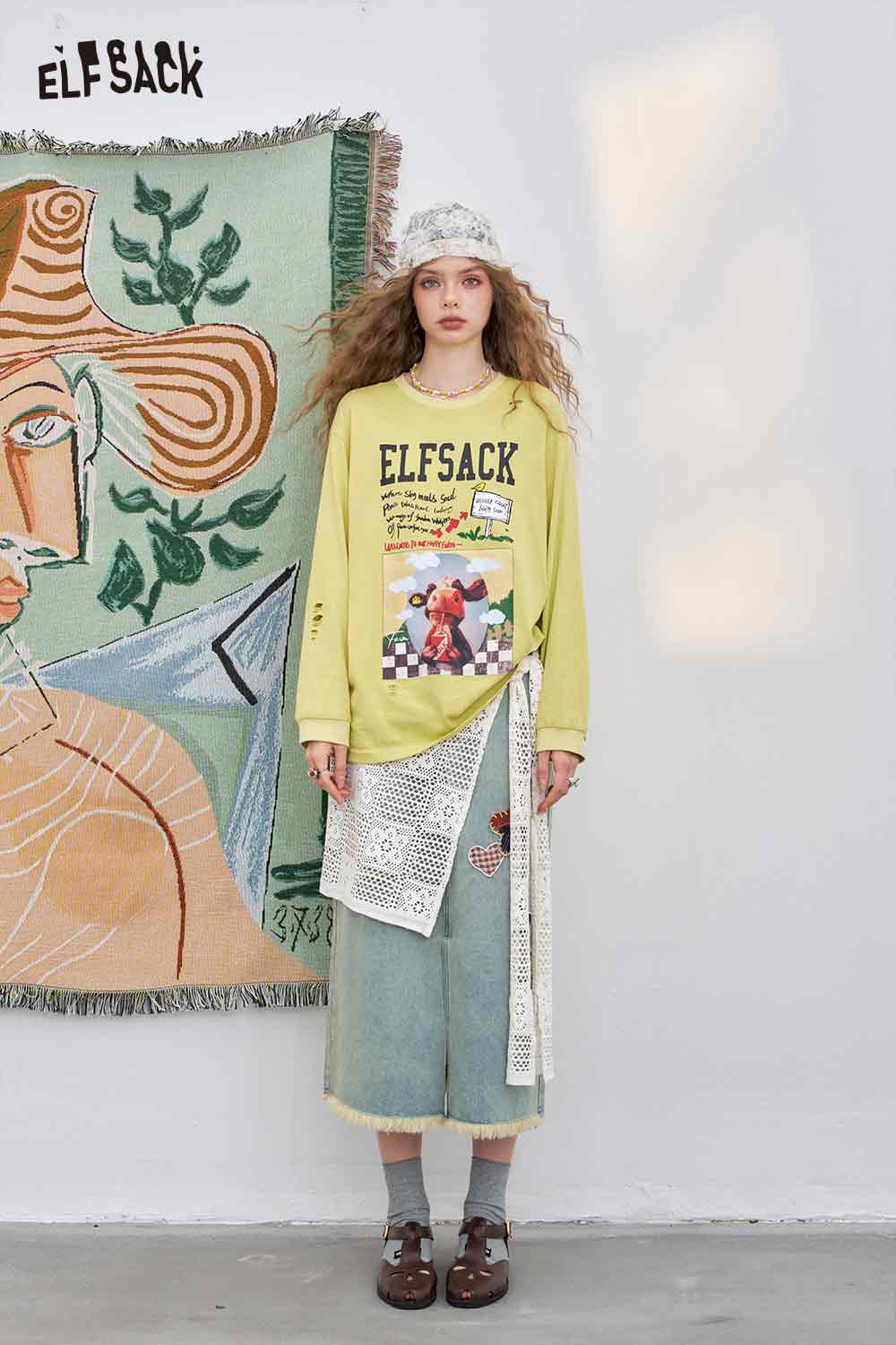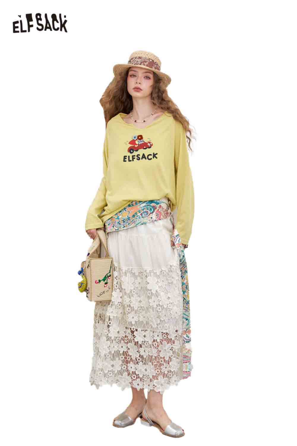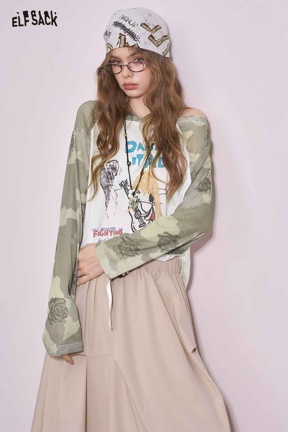 ELFSACK Pink Cat Print Short Sleeve T-Shirt
