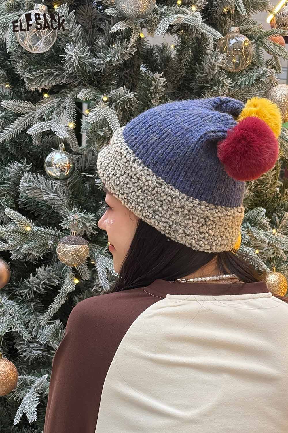 Cute Clown Colorful Pom Pom Warm Knit Beanie