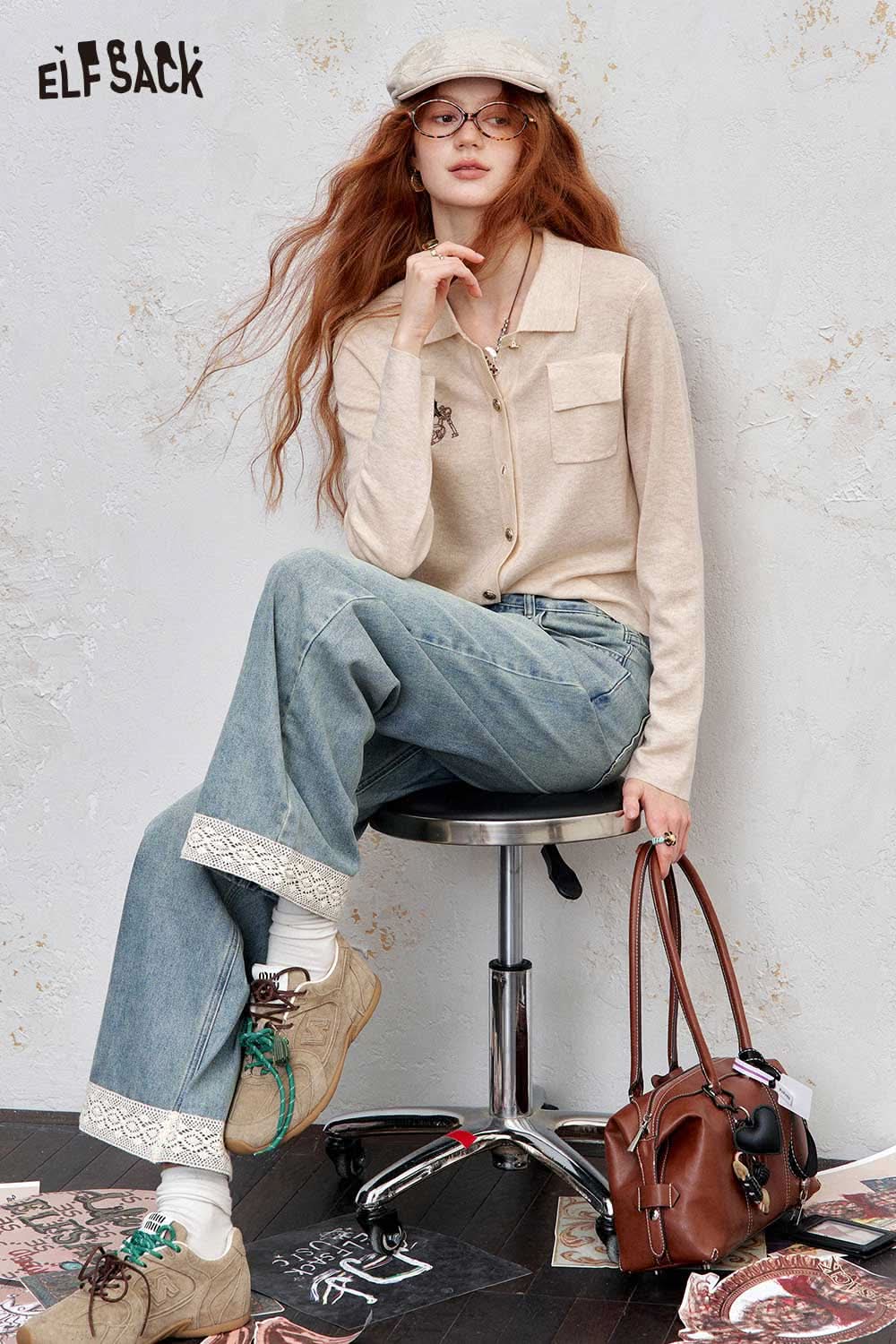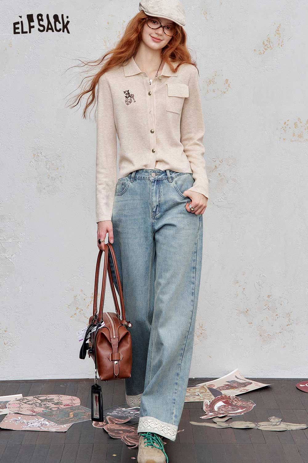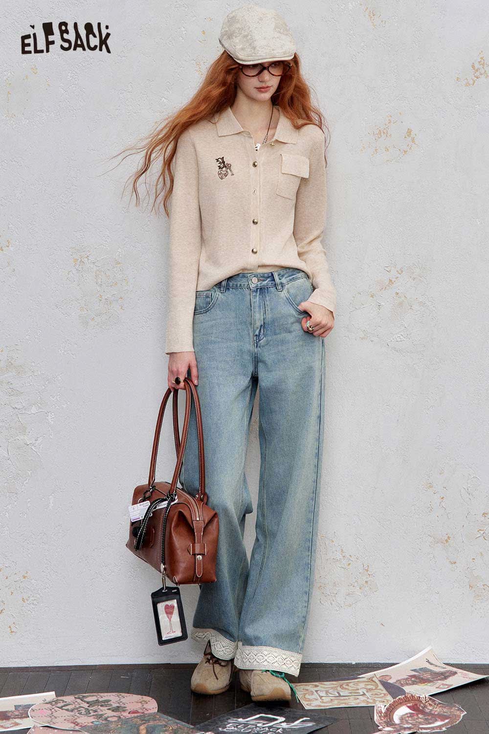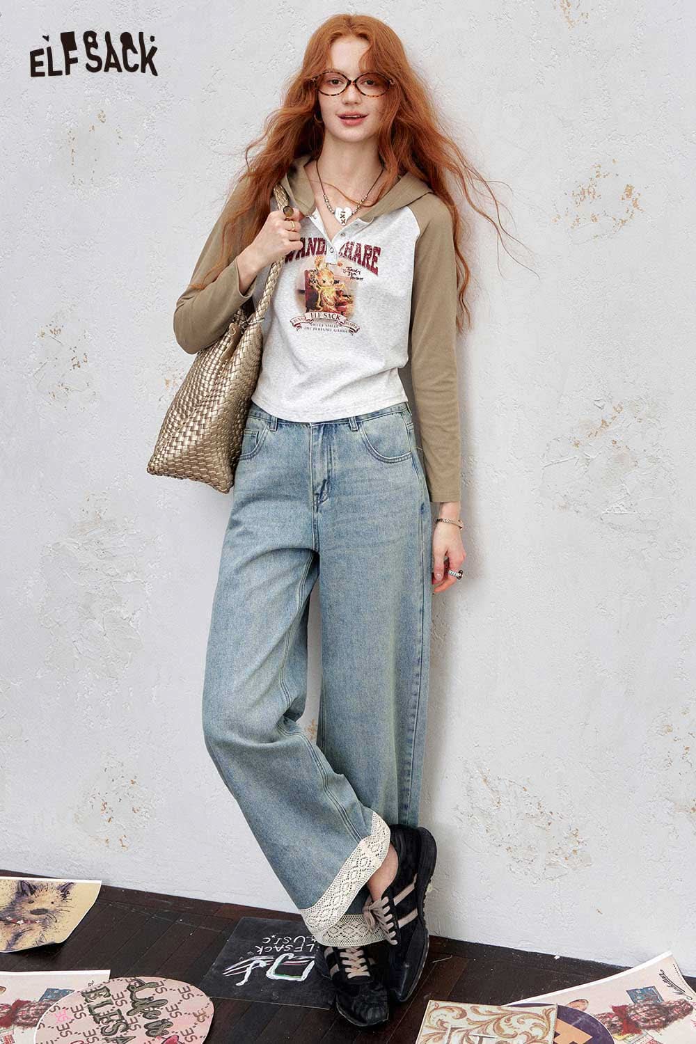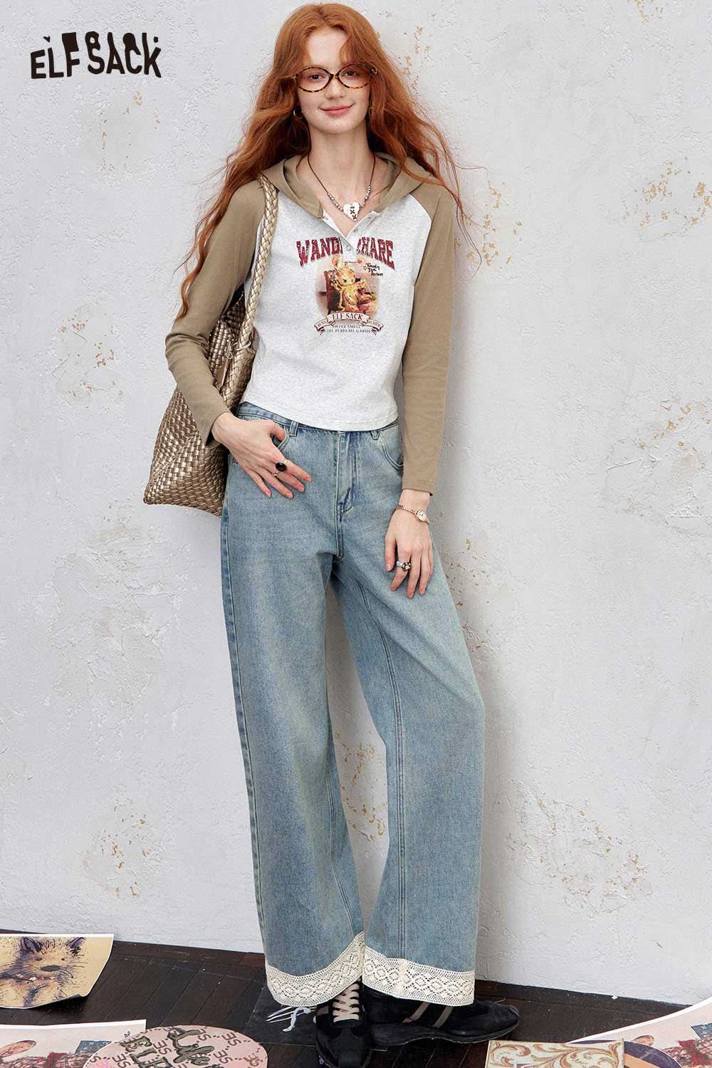 Denim Wide-Leg Retro Patchwork Light Long Jeans