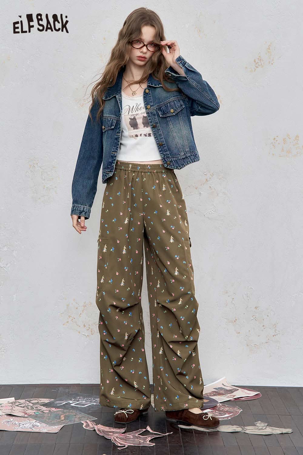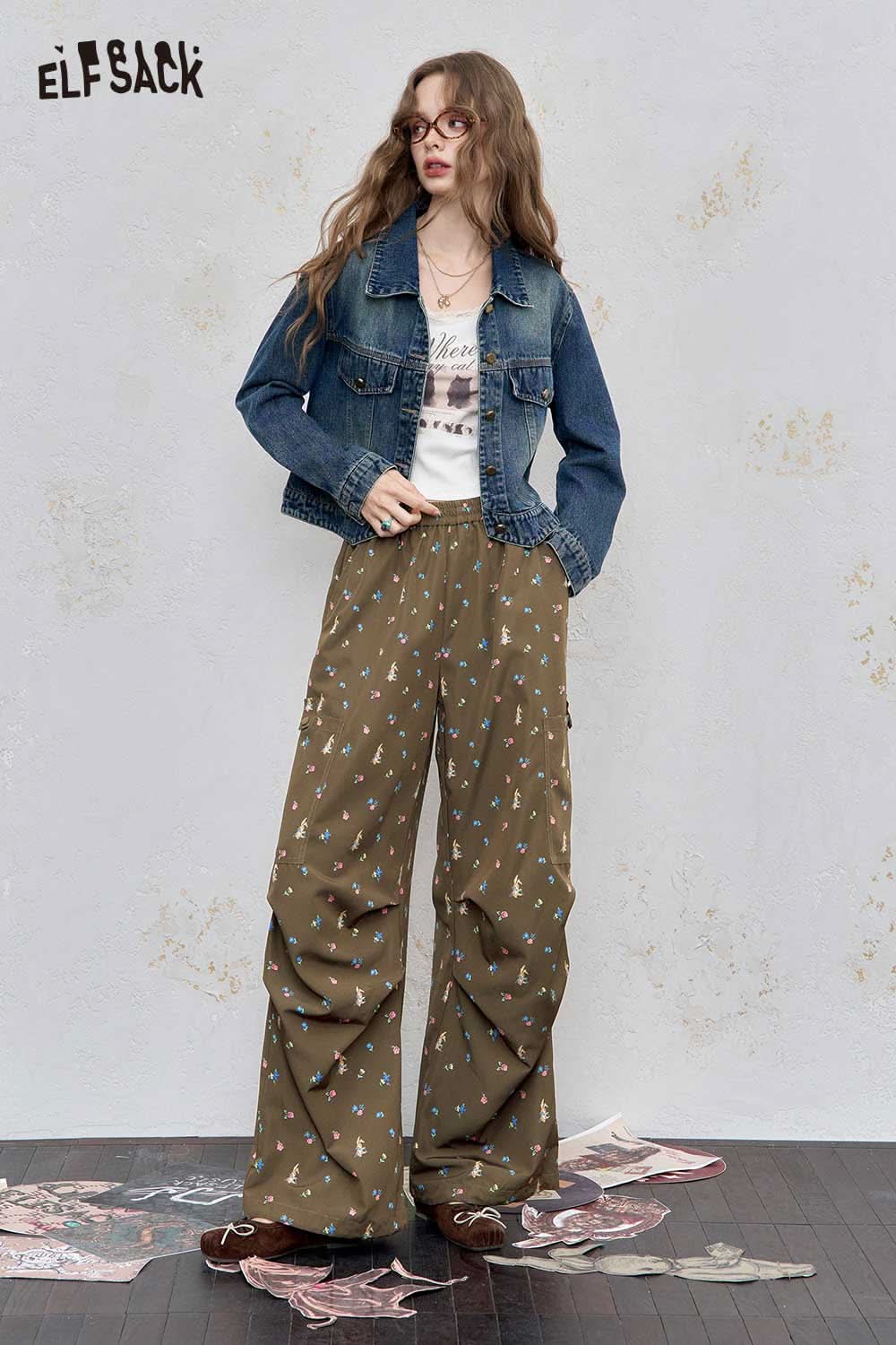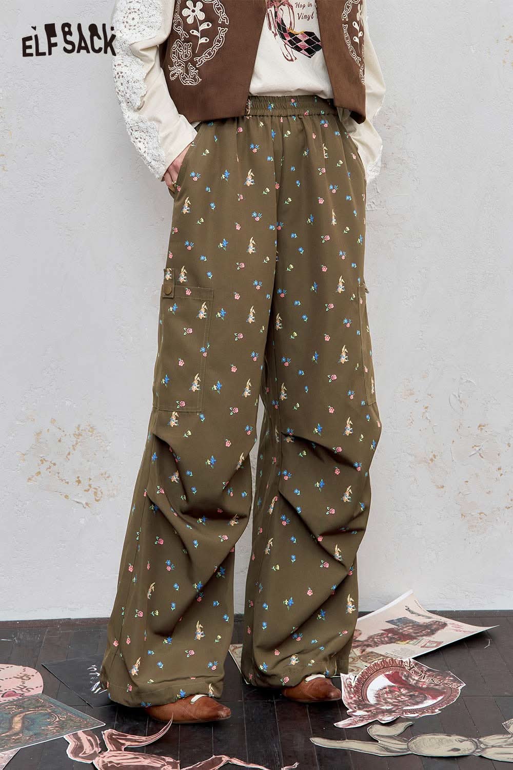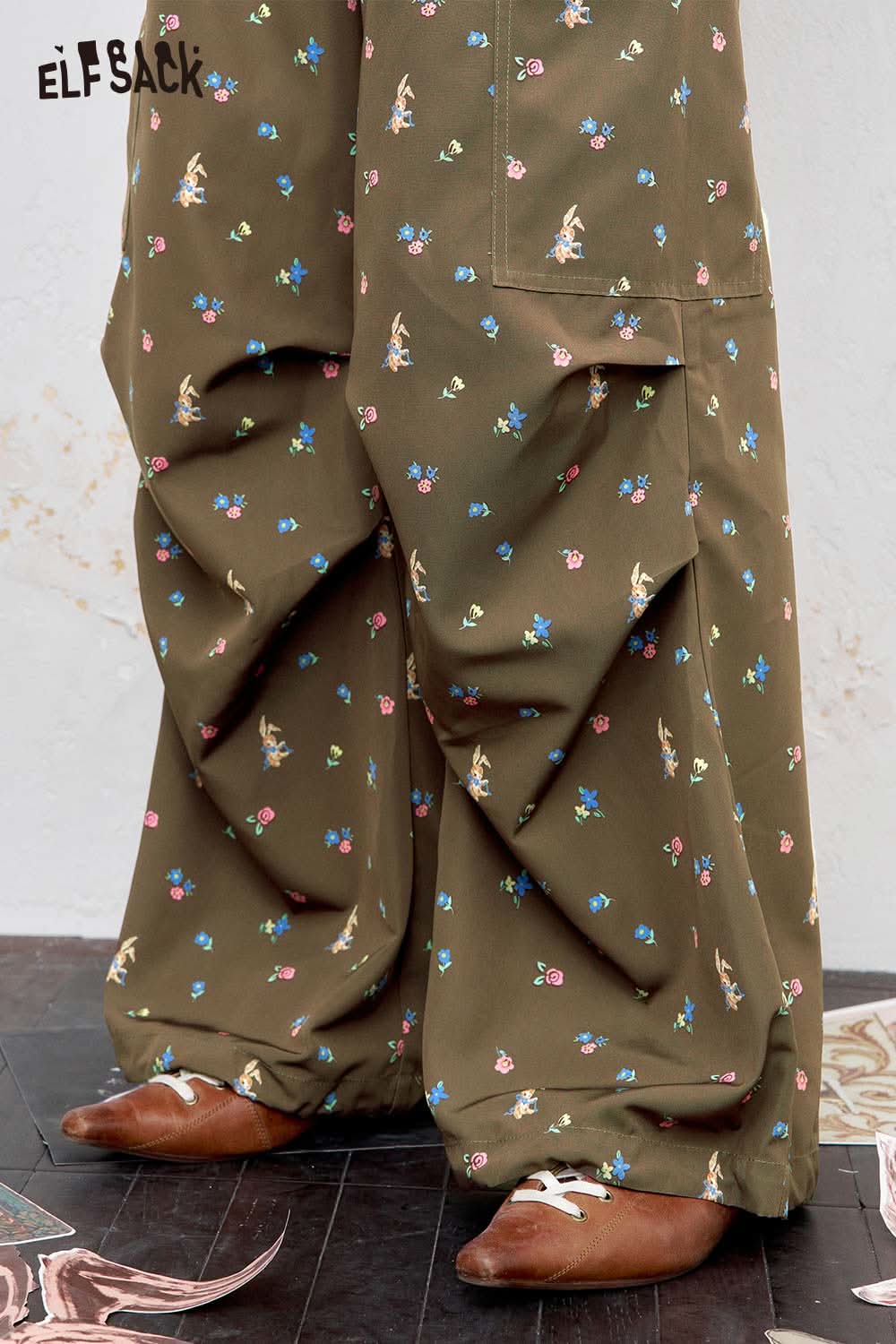 Floral Stitch Detail Oversized Pocket Design Utility Pants