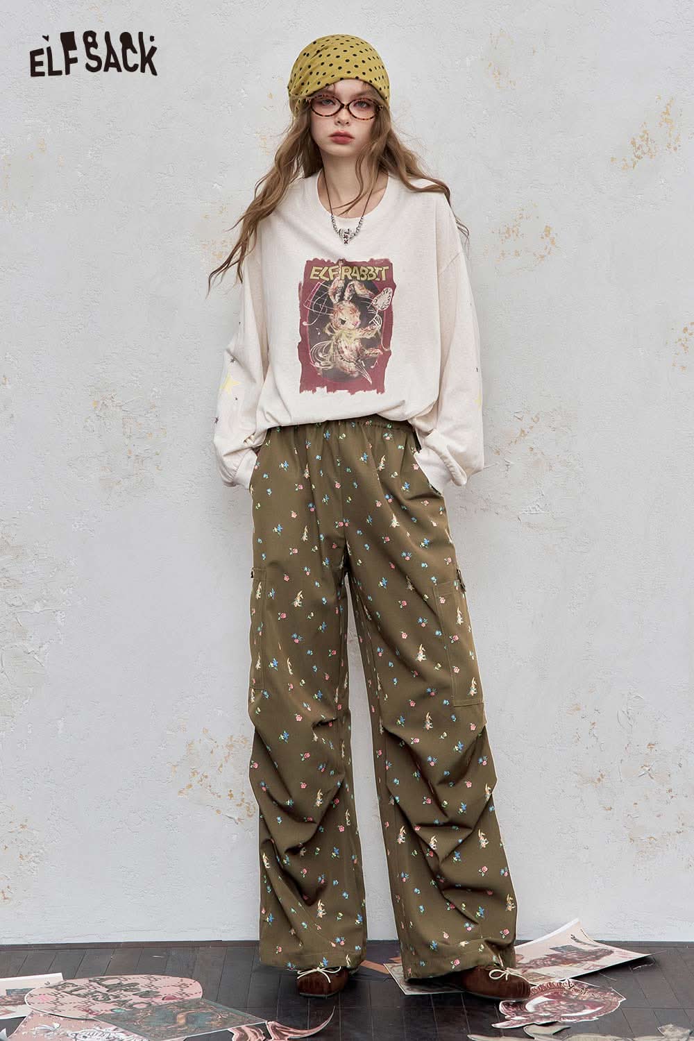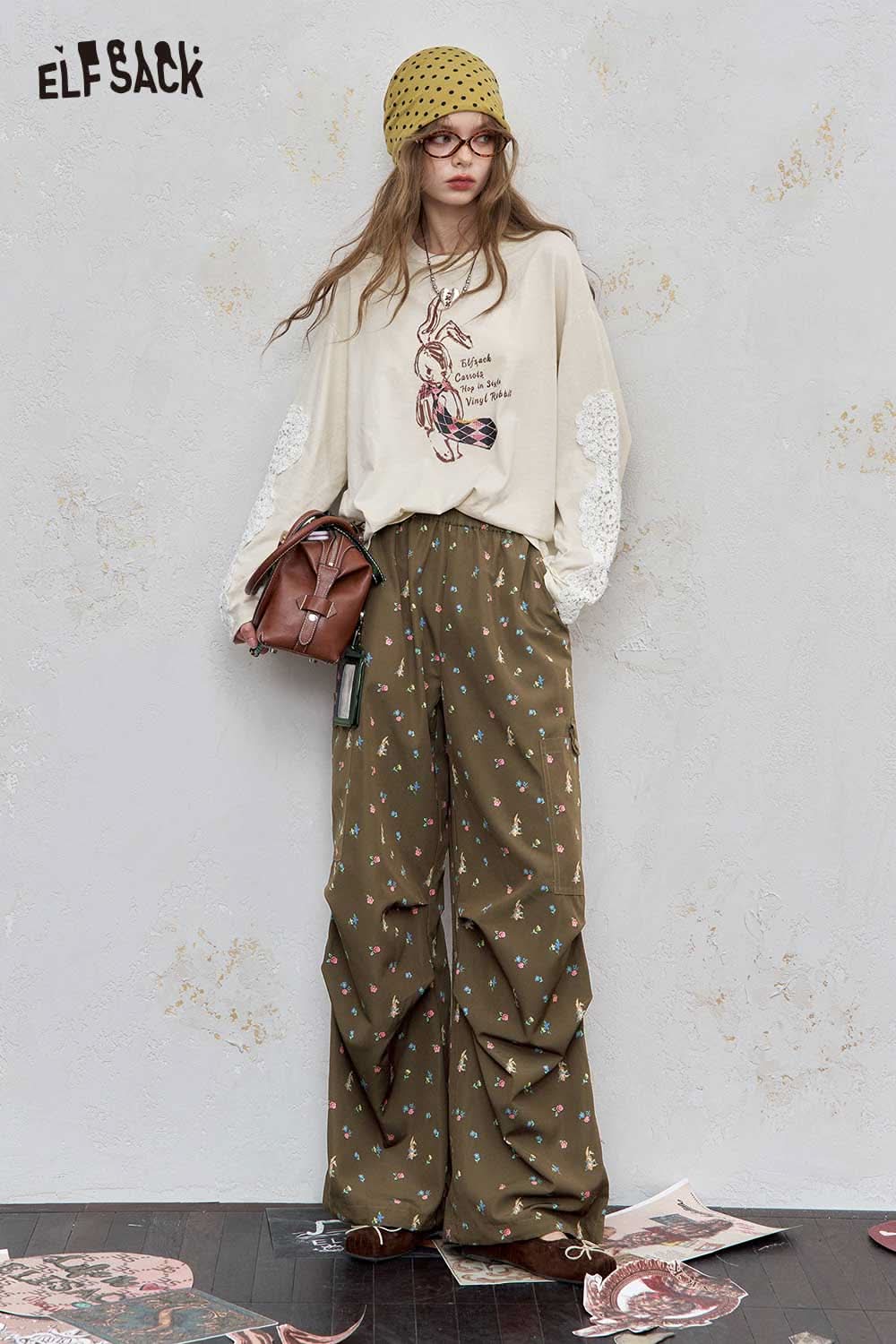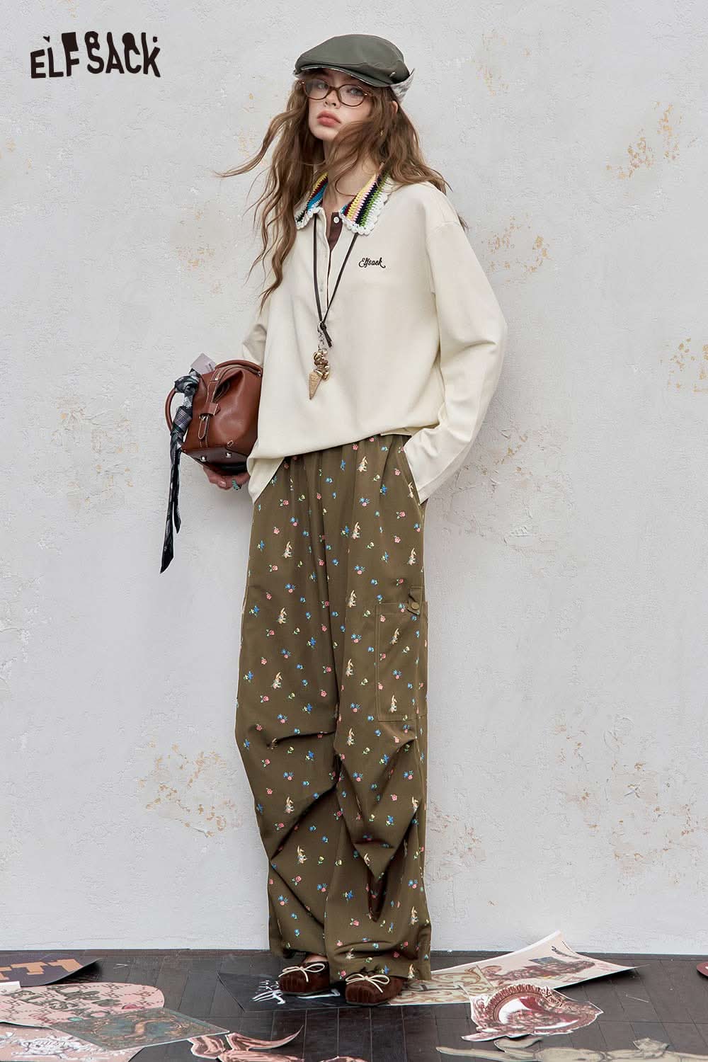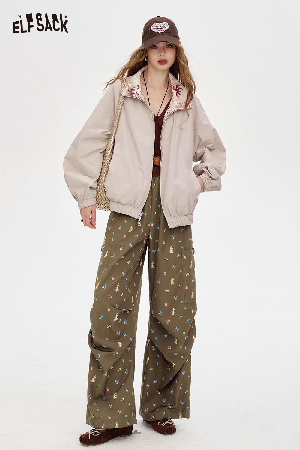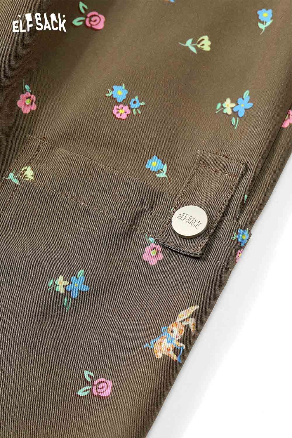 Floral Stitch Detail Oversized Pocket Design Utility Pants