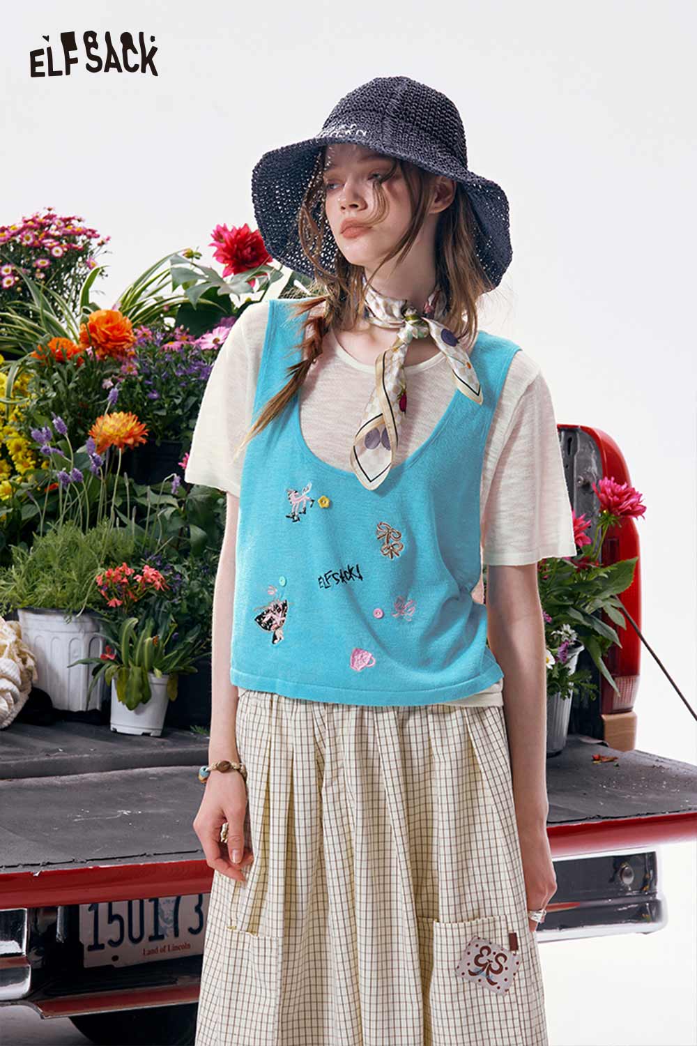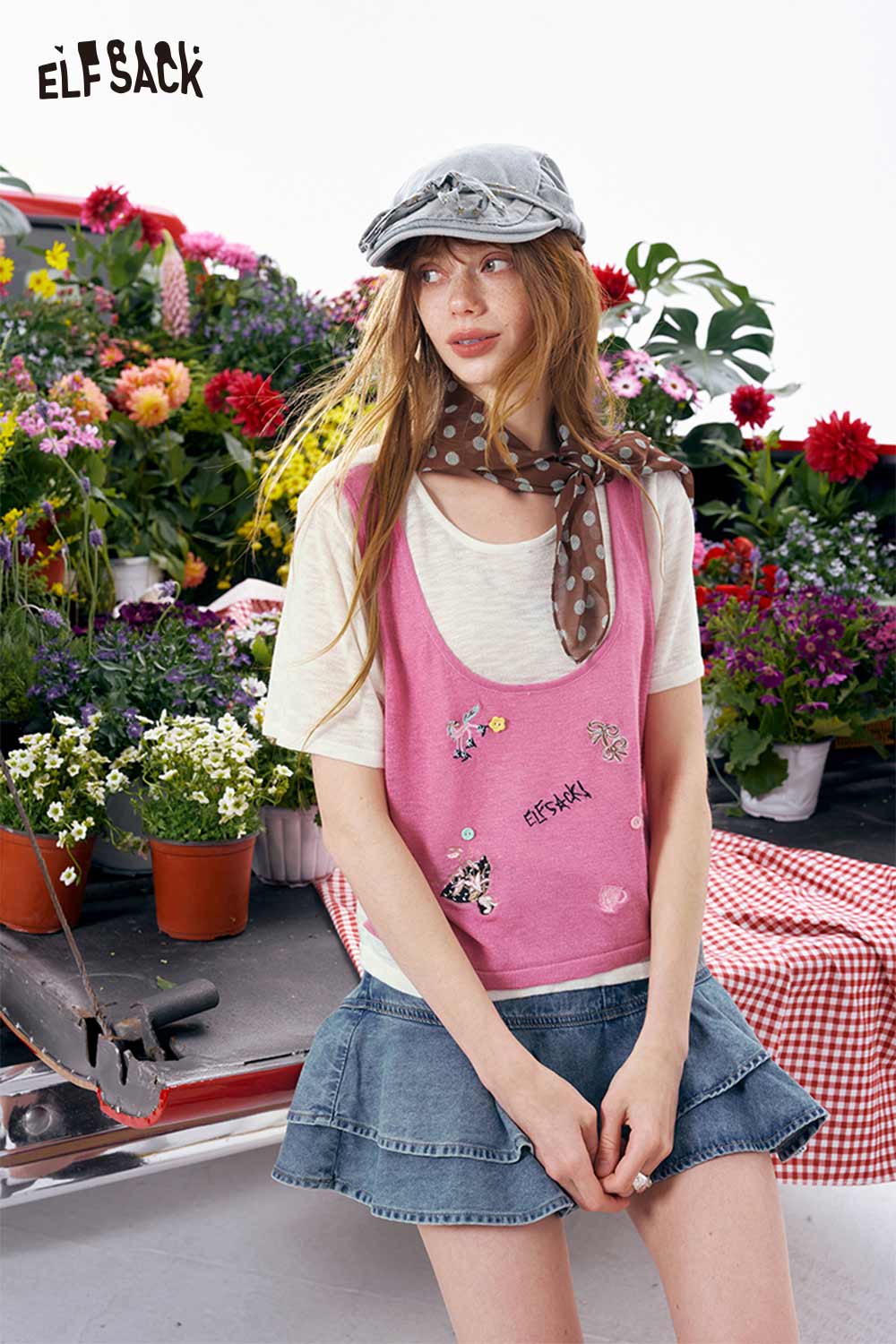 Chaleco vaquero corto con botones metálicos y jacquard integral de estilo dulce, fresco y vintage