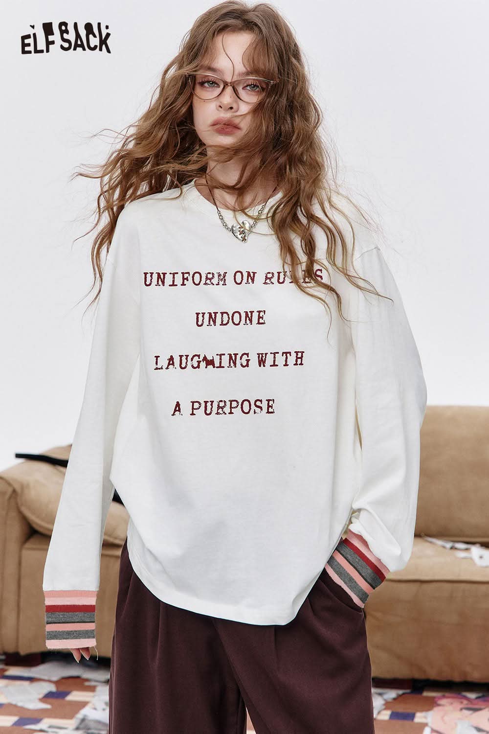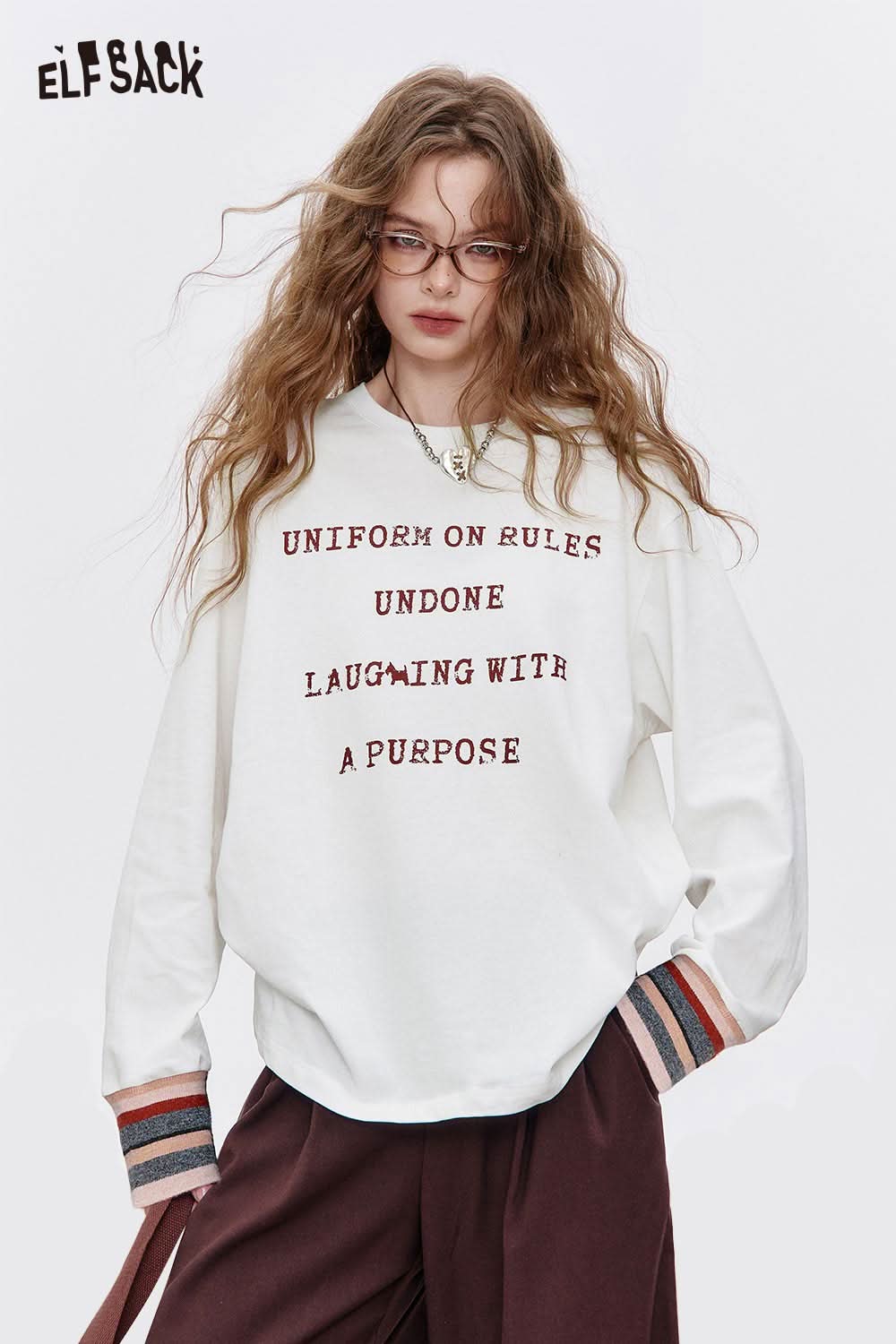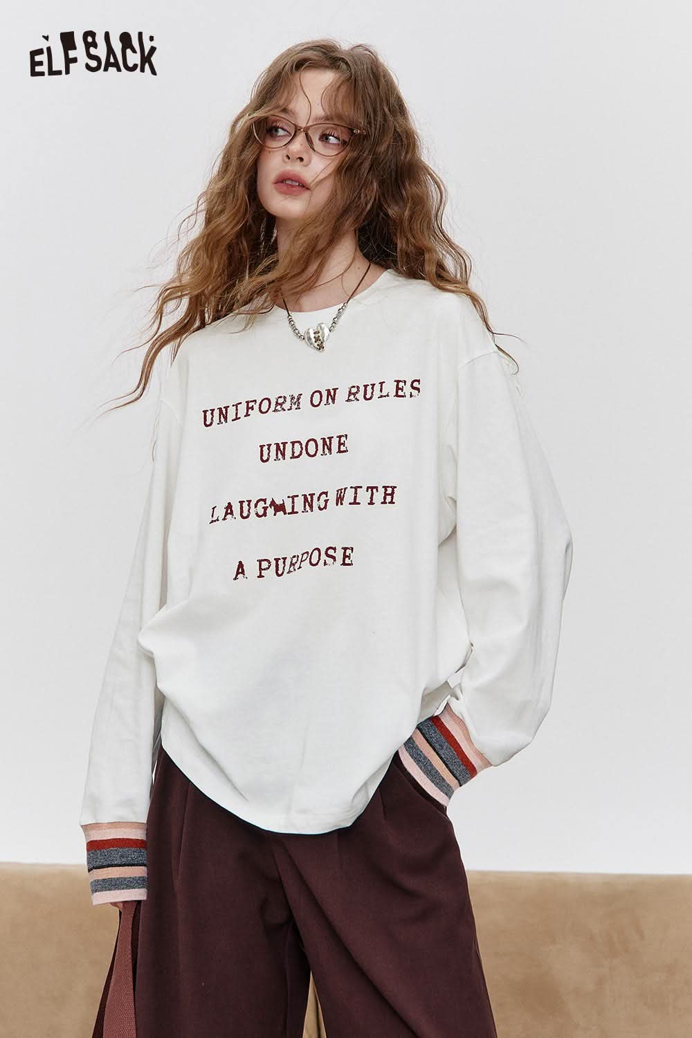Organic Cotton Relaxed Fit Minimalist Typography Print Long Sleeve Tee