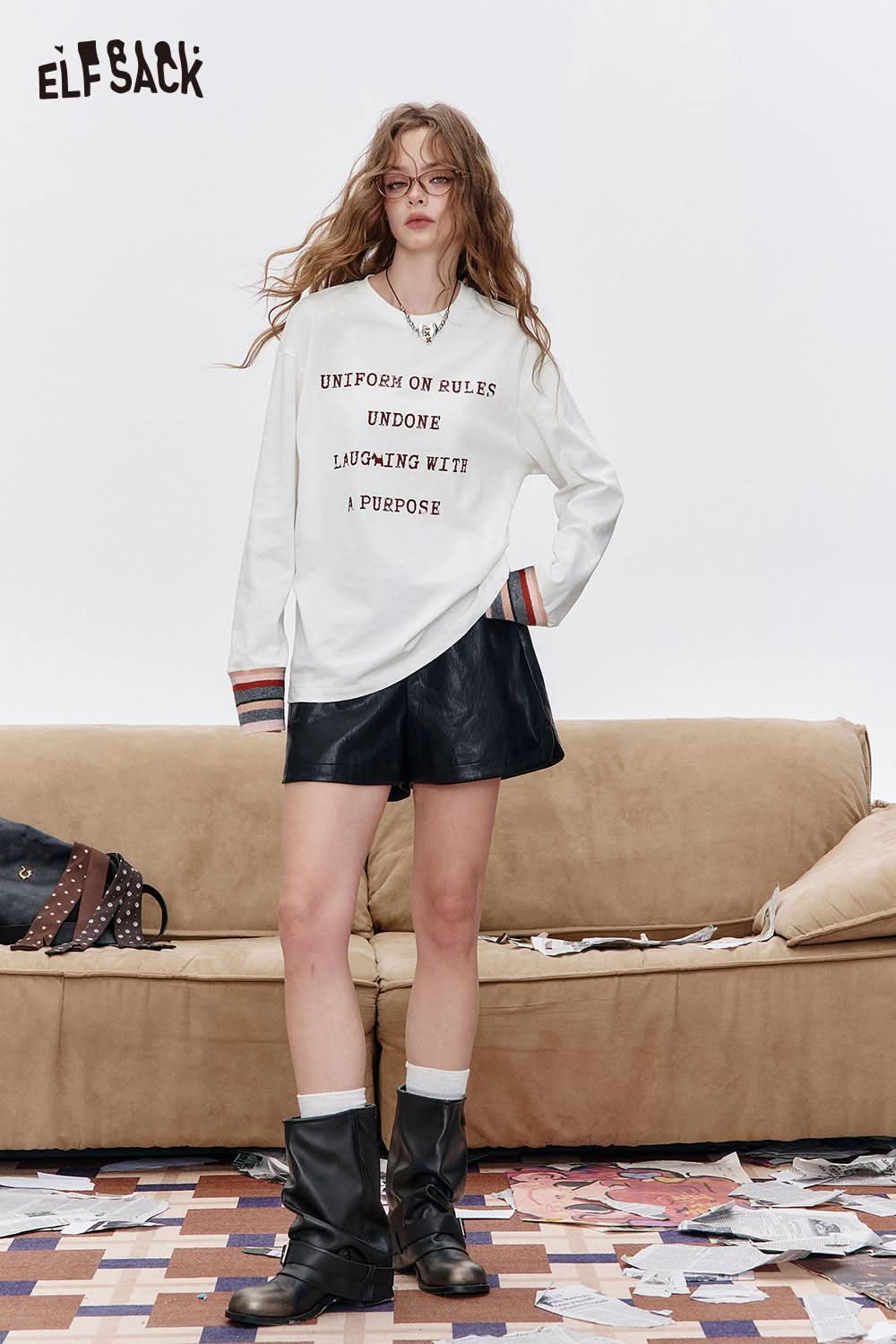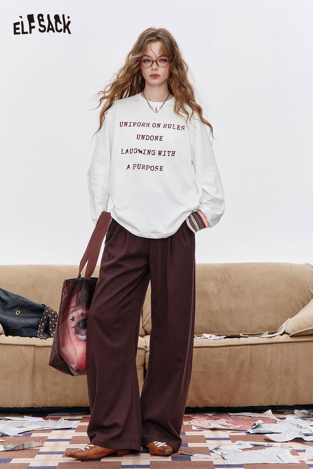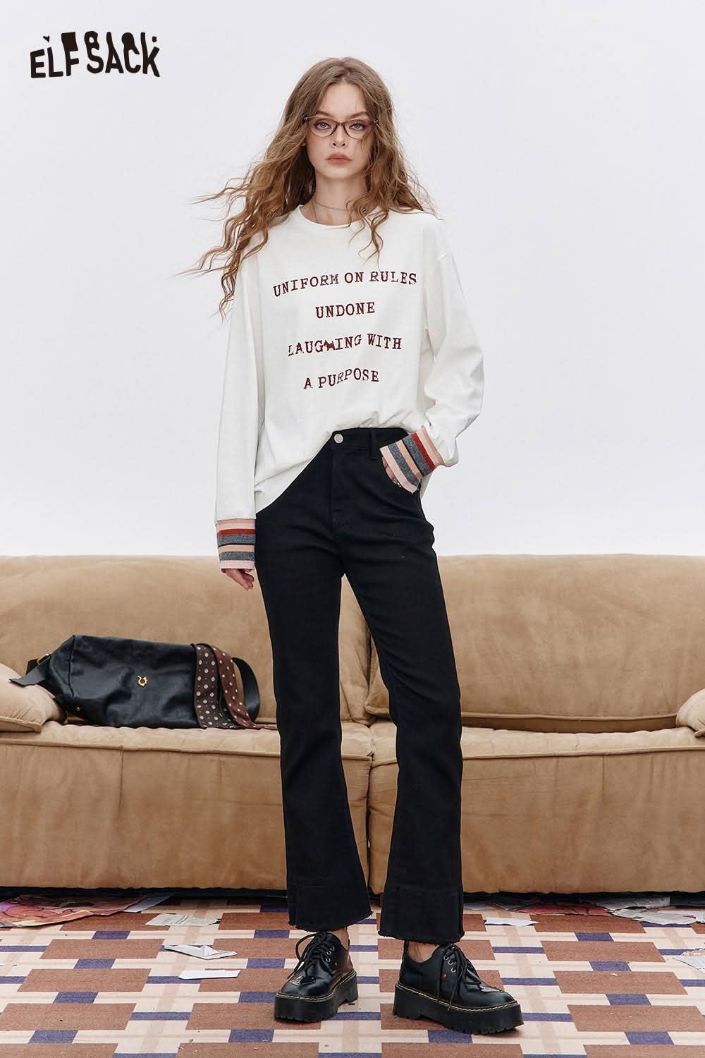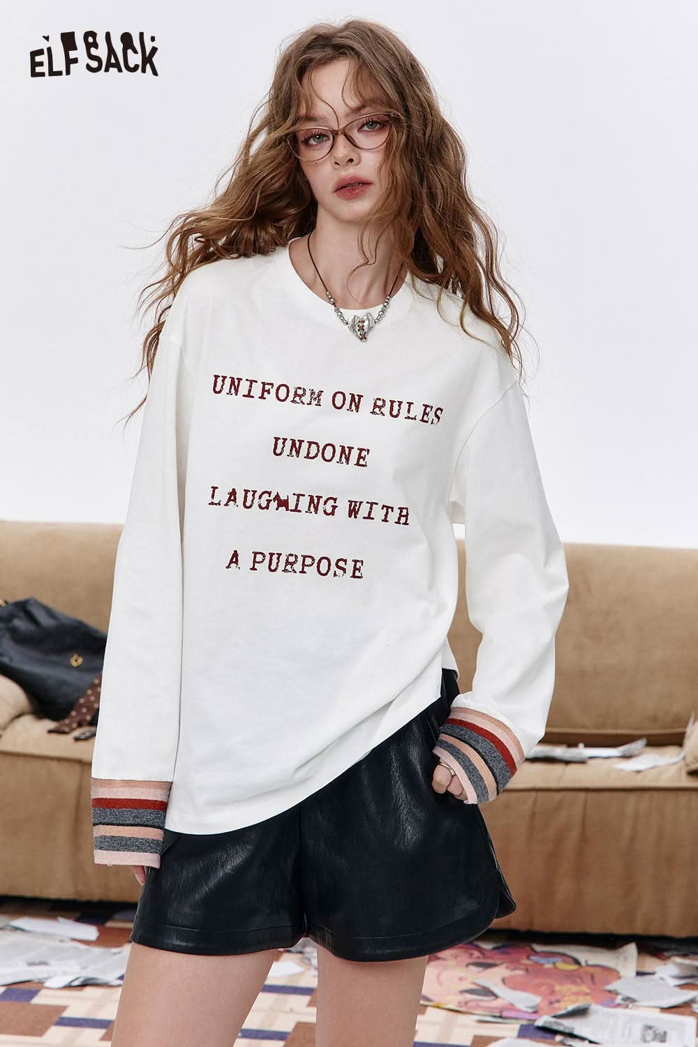 Organic Cotton Relaxed Fit Minimalist Typography Print Long Sleeve Tee