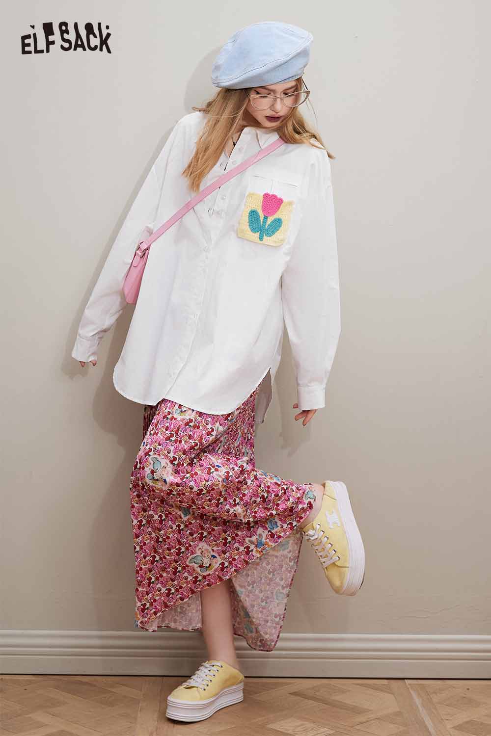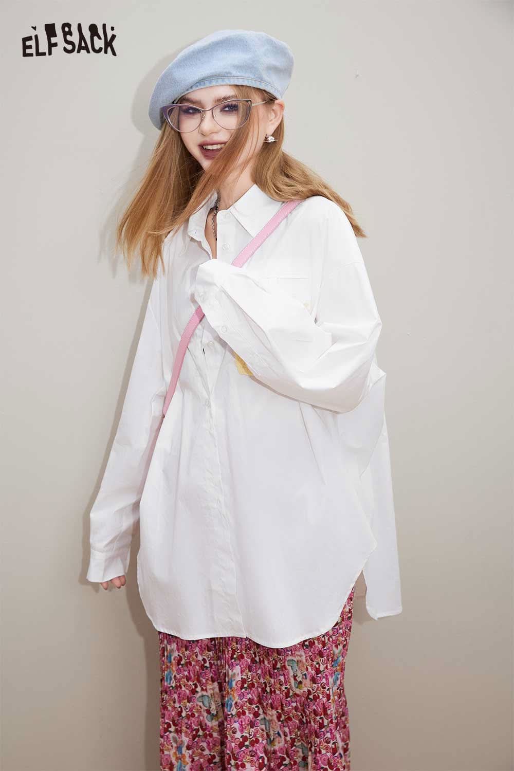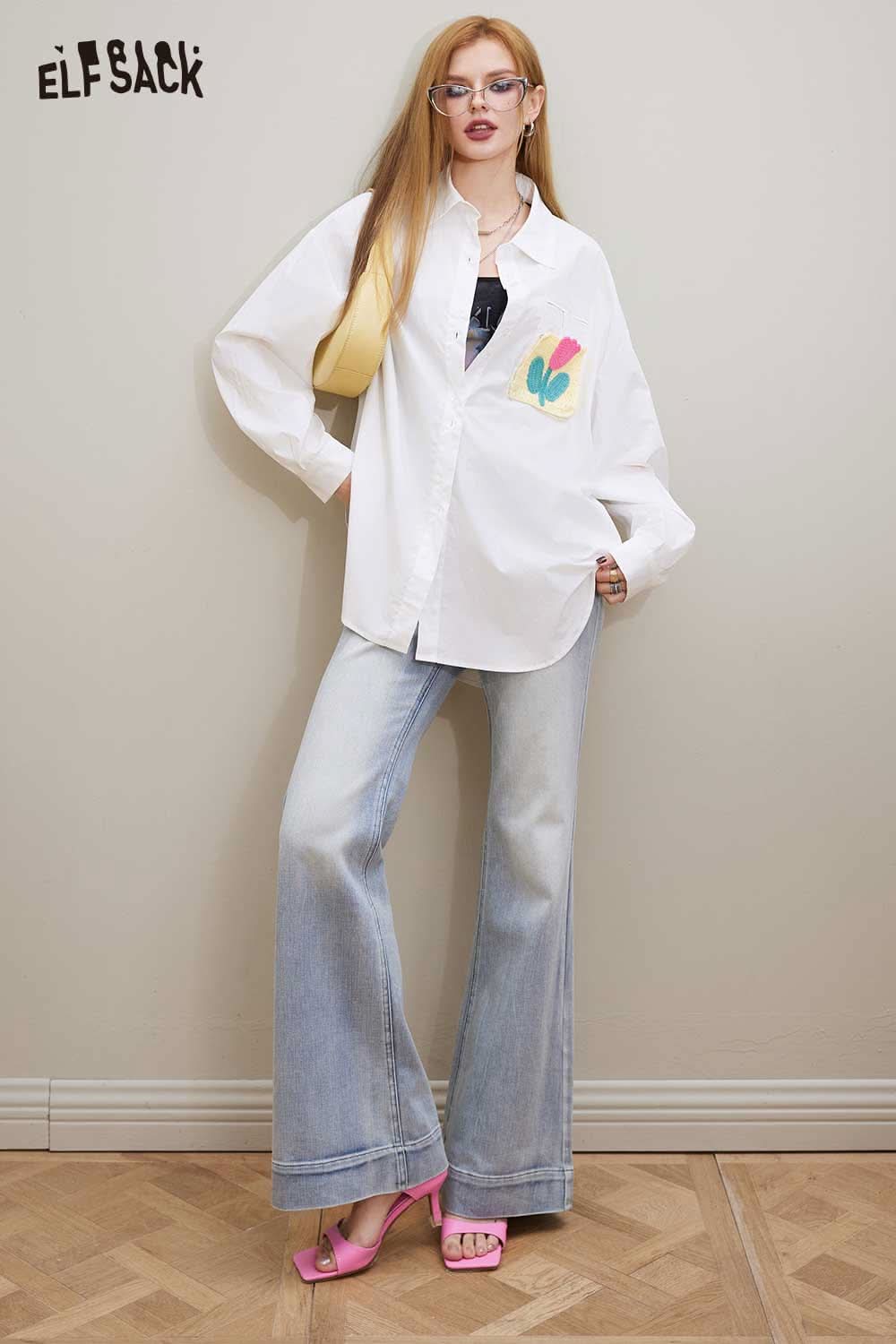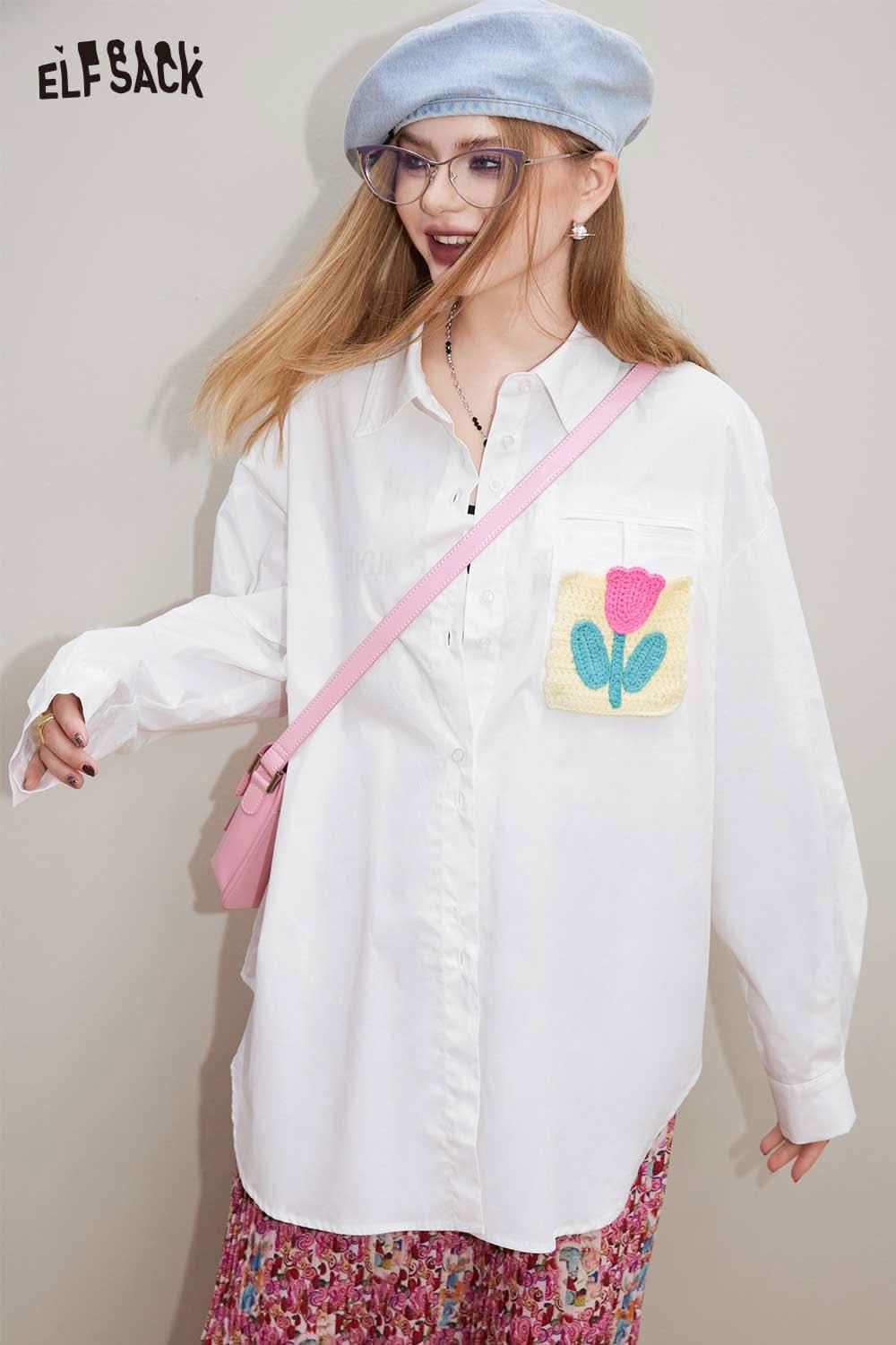 Cotton Loose Casual Patchwork Long Sleeve Shirt