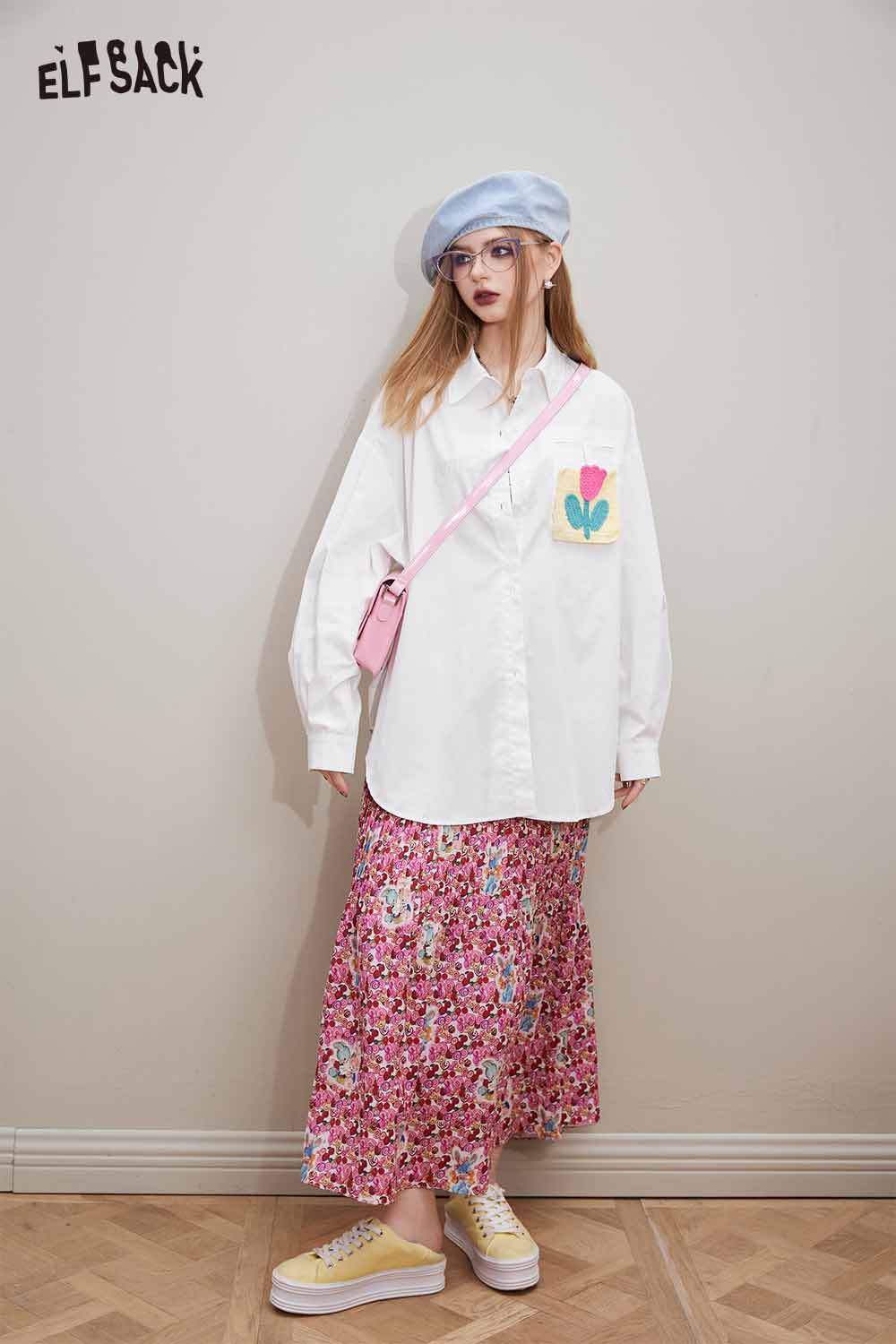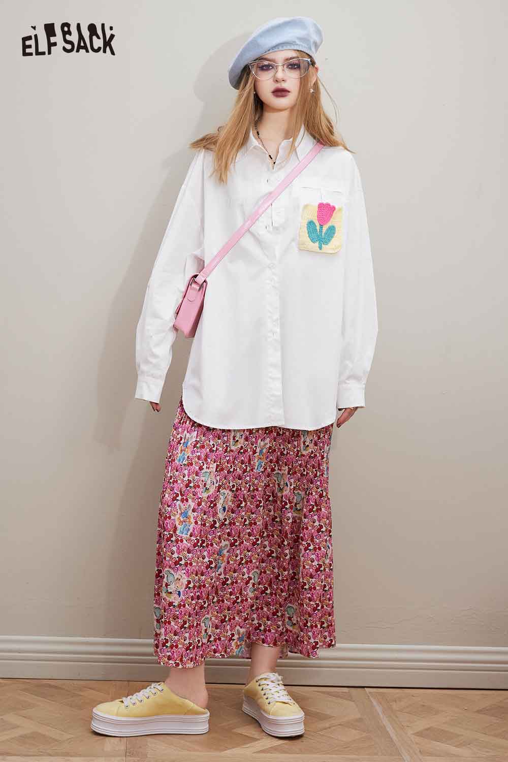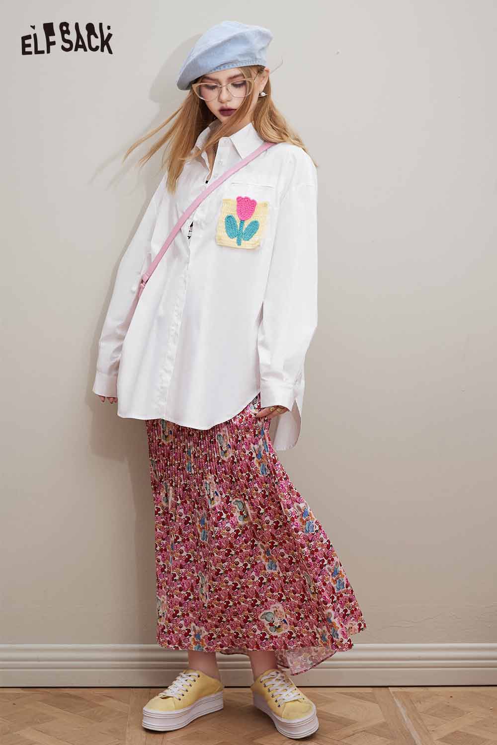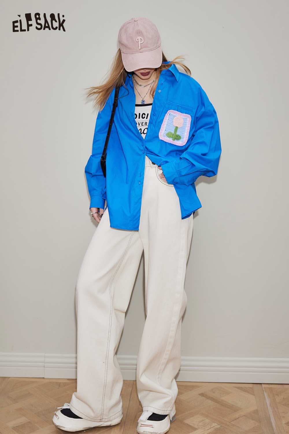 Cotton Loose Casual Patchwork Long Sleeve Shirt