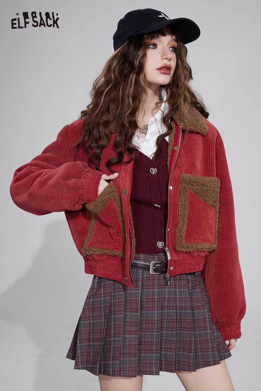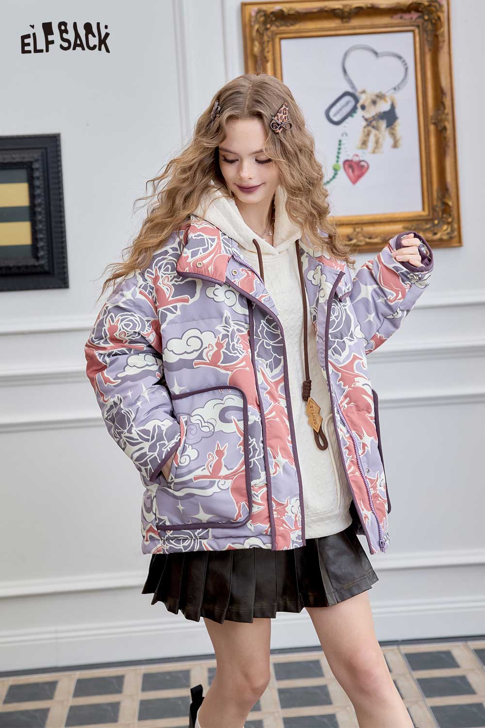 ELFSACK cartoon print short jacket for women featuring a cozy design with playful patterns