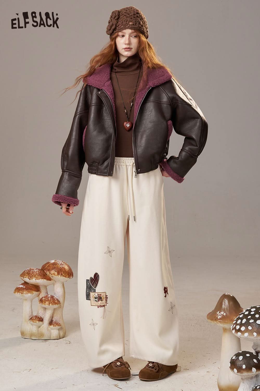 Soft Drawstring Waist Cartoon Embroidery Sweatpants