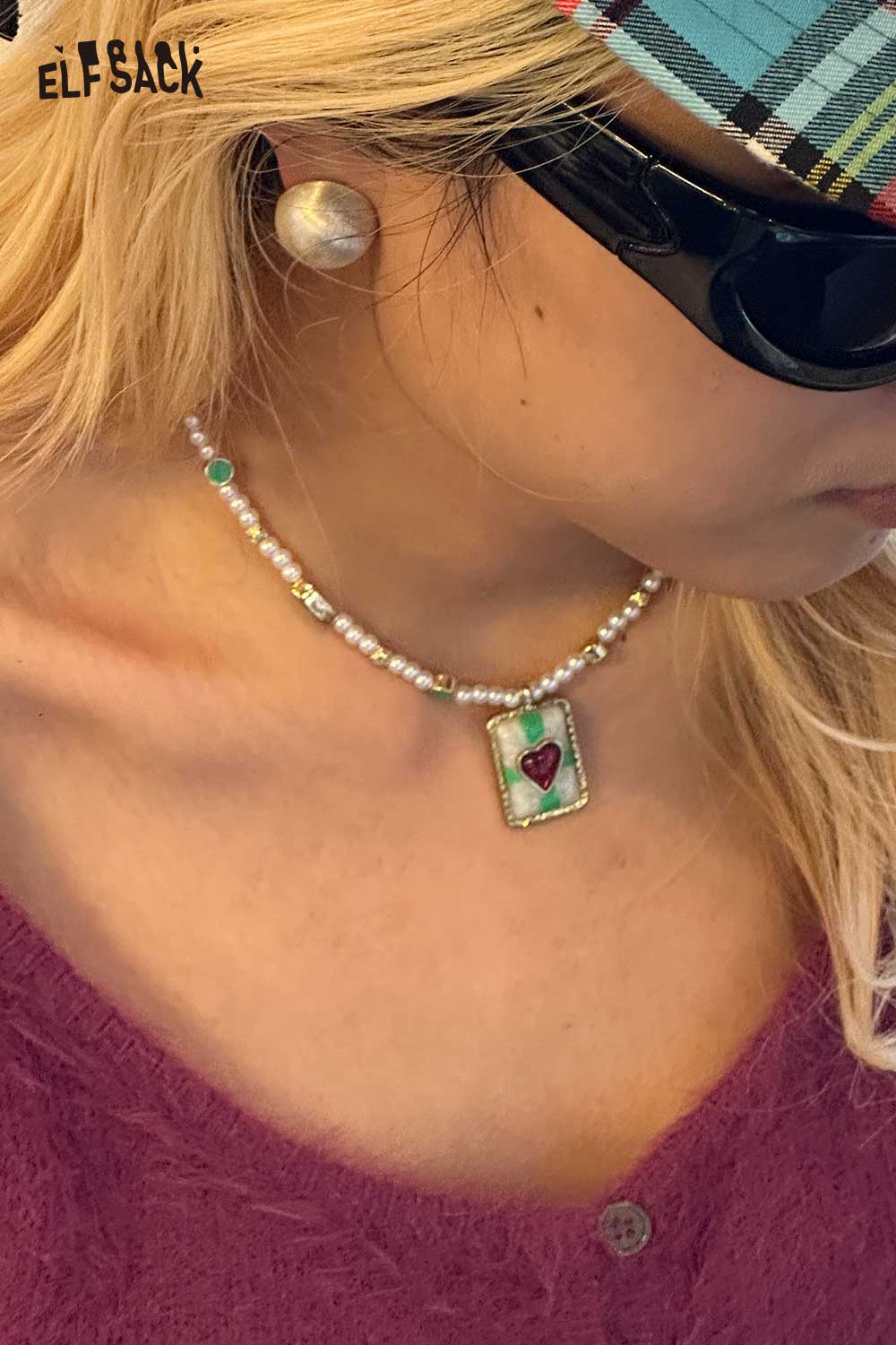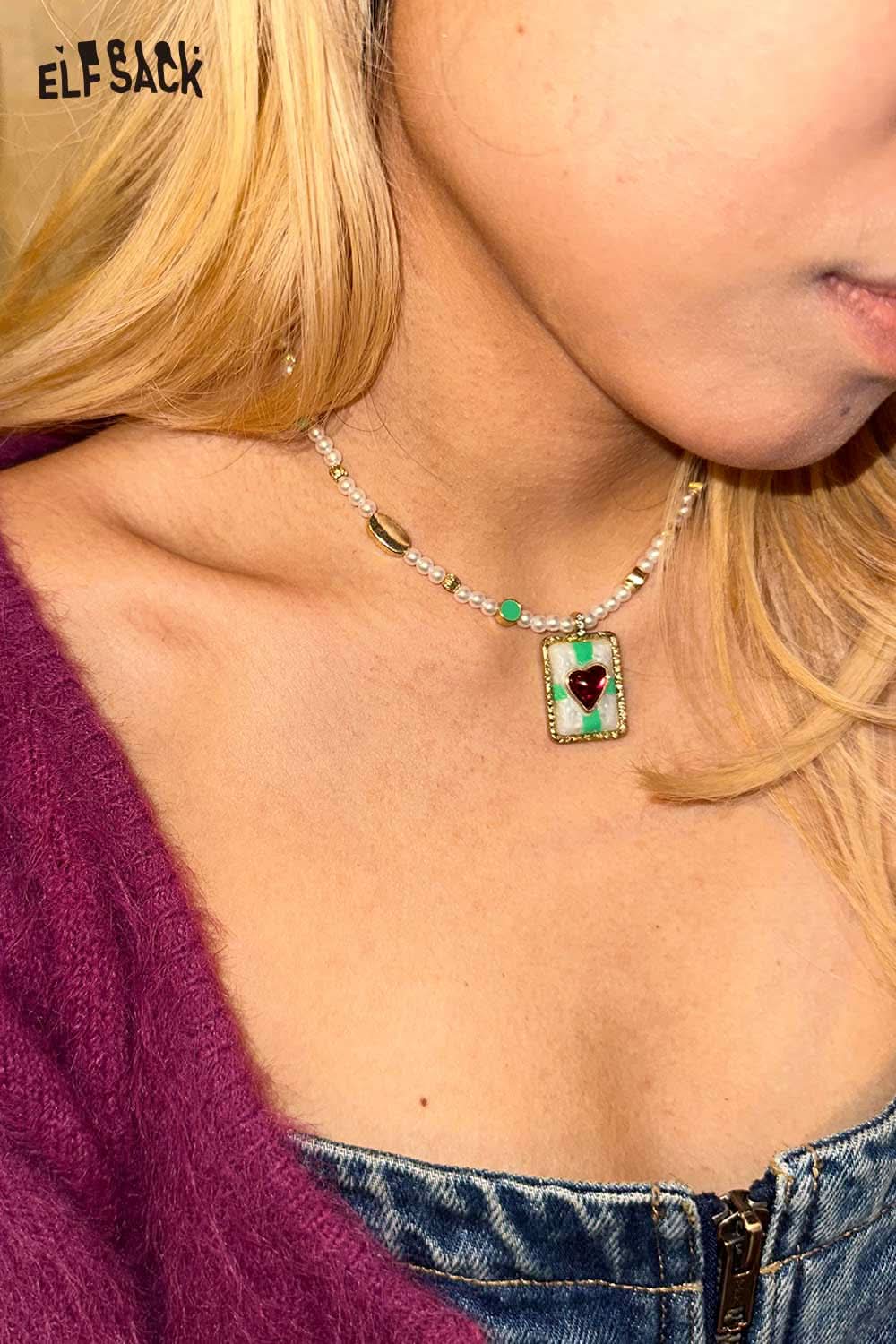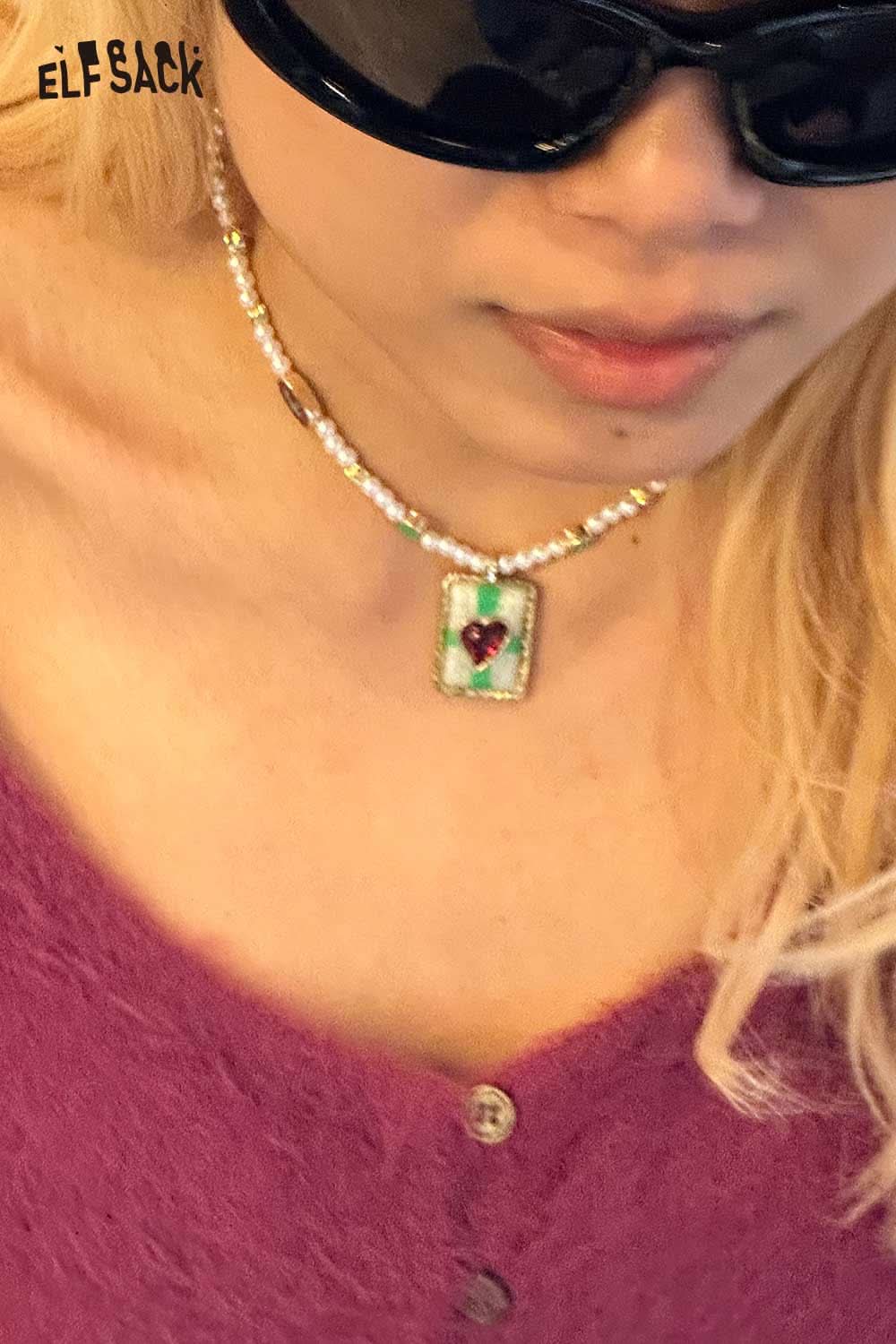 Silver Tone Red Heart Charm Y2K Halloween Theme Pendant Necklace