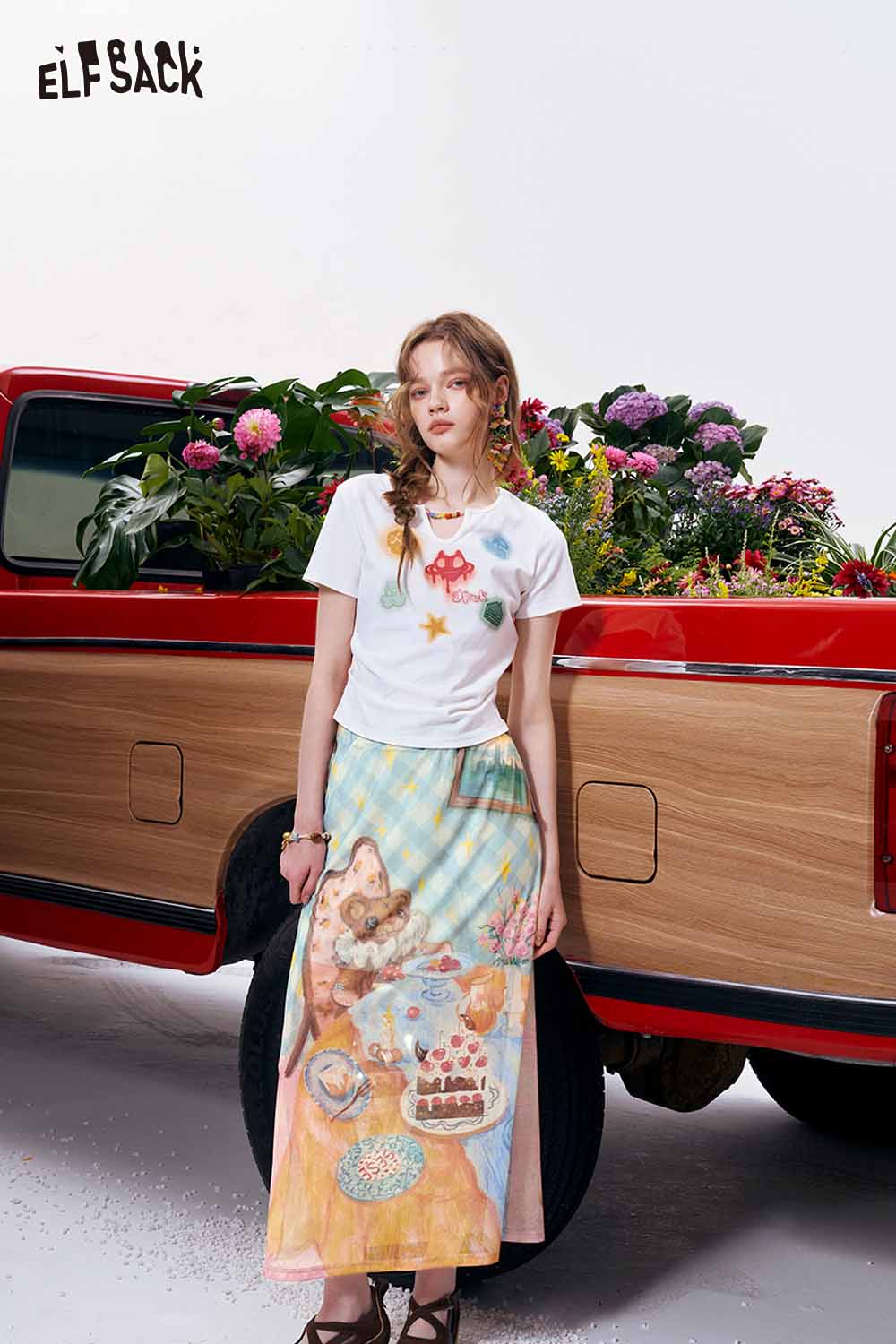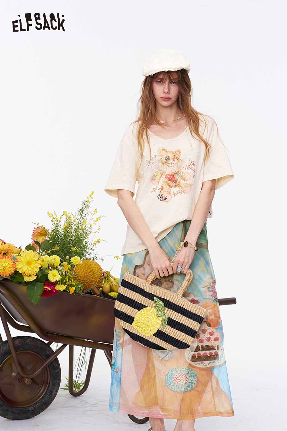 Falda midi evasé con estampado de fiesta de osos