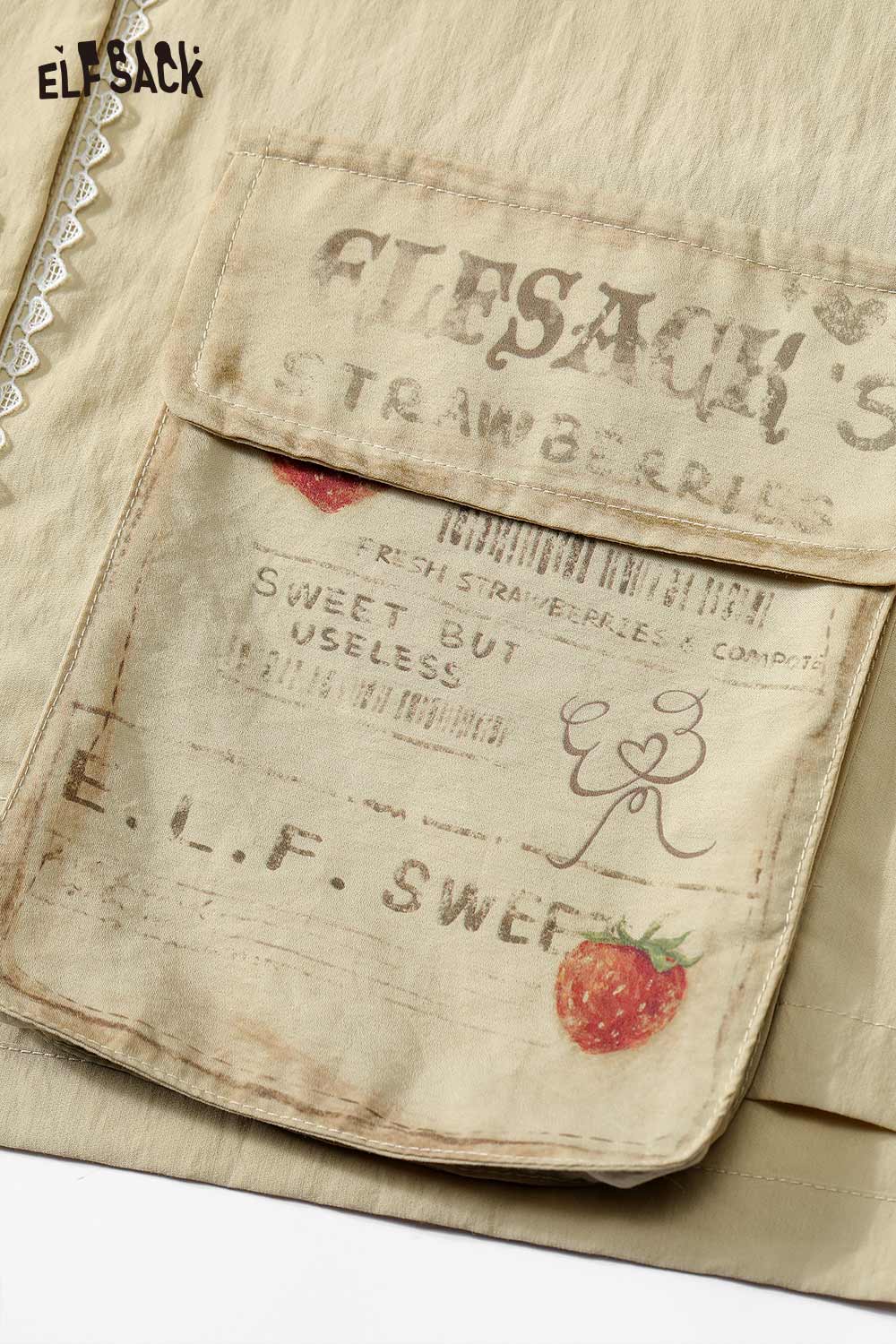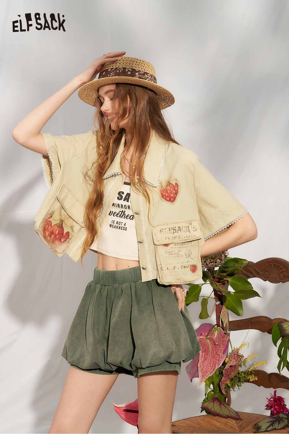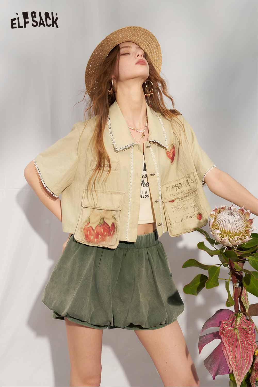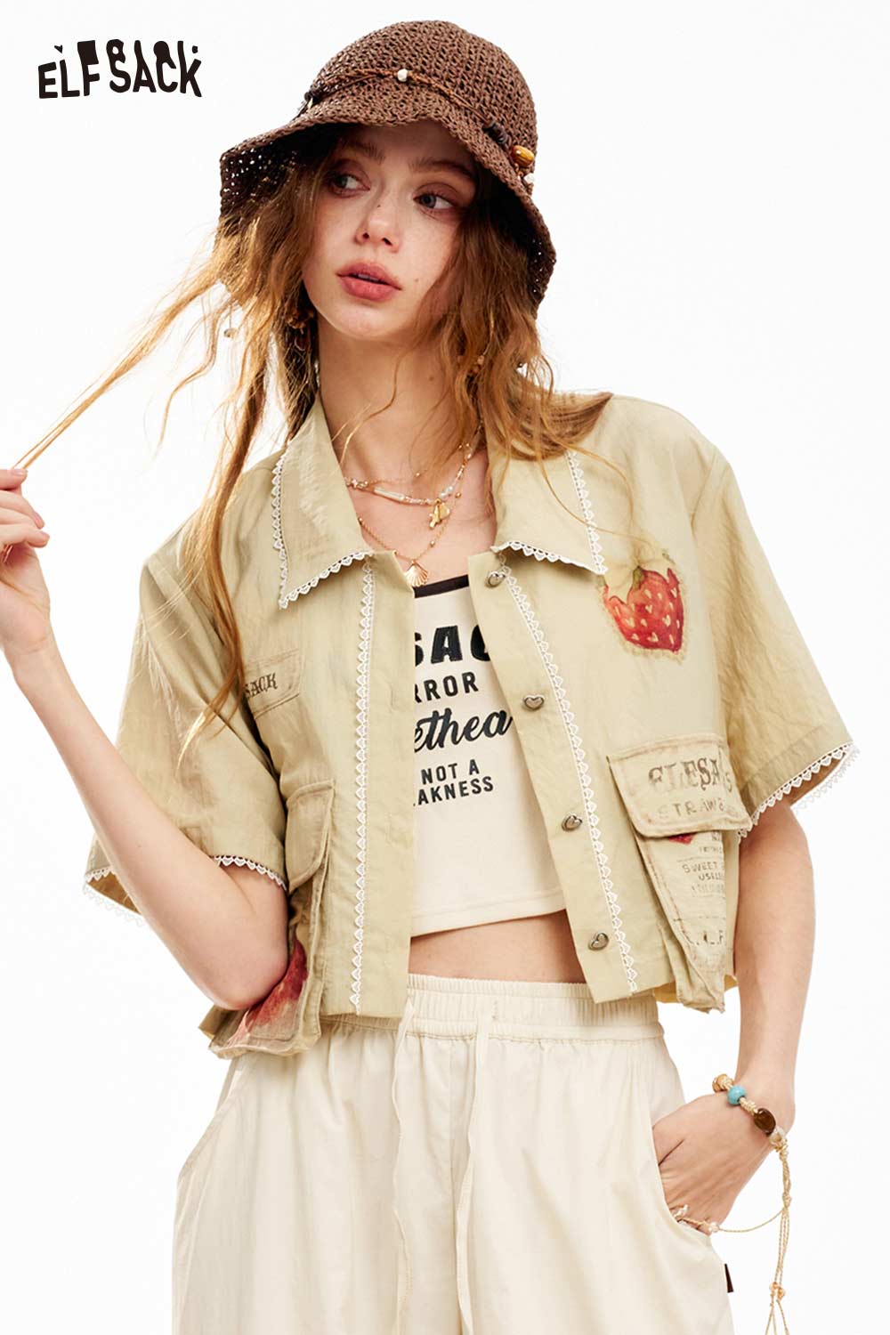 Strawberry Print Lace Cropped Shirt