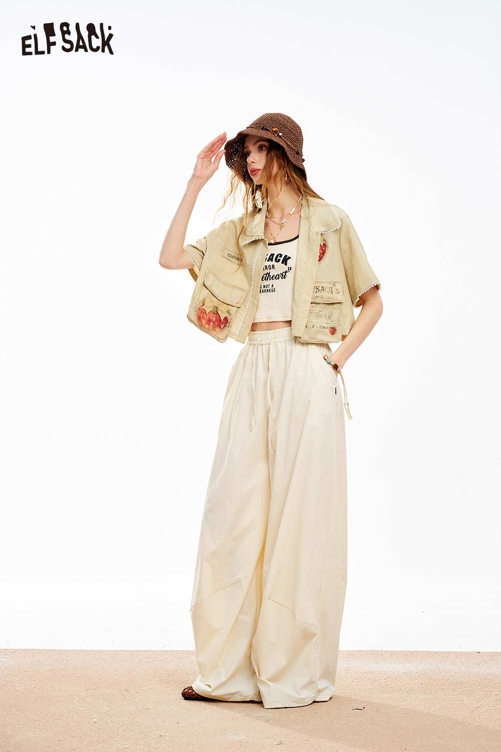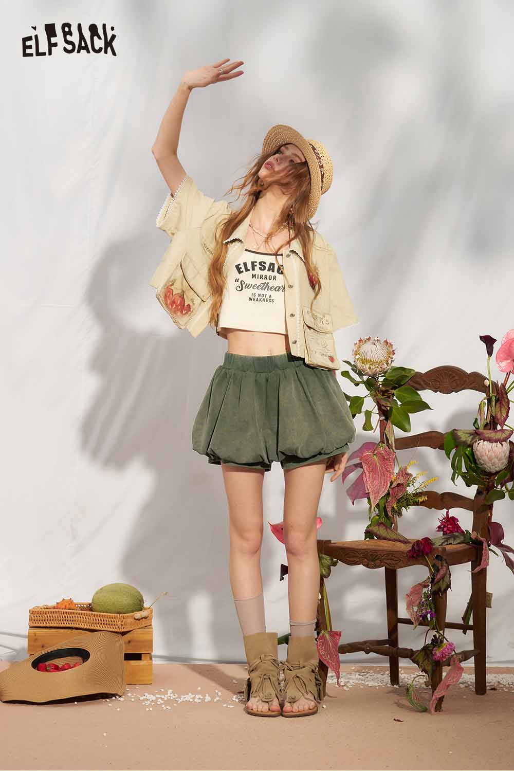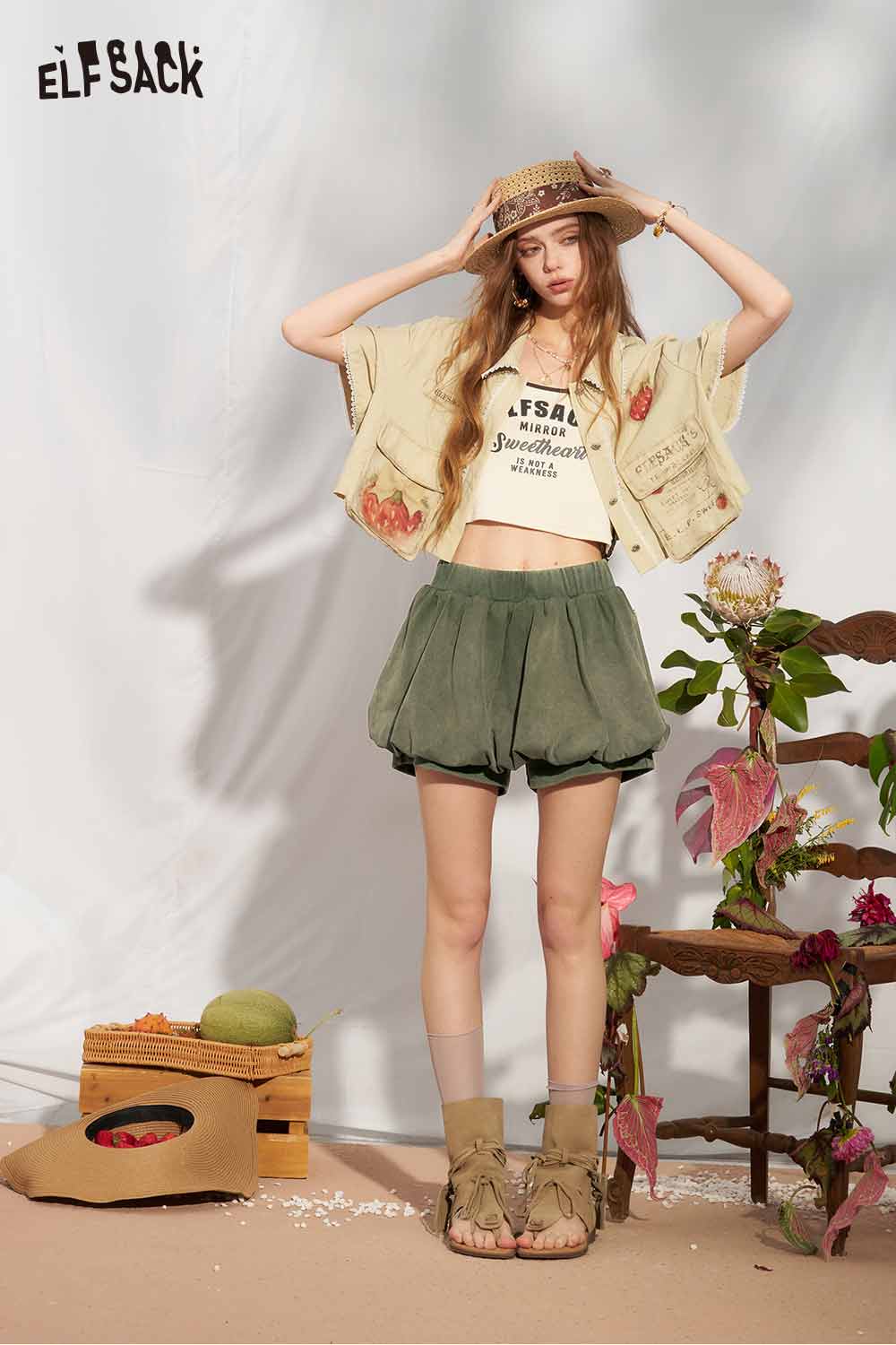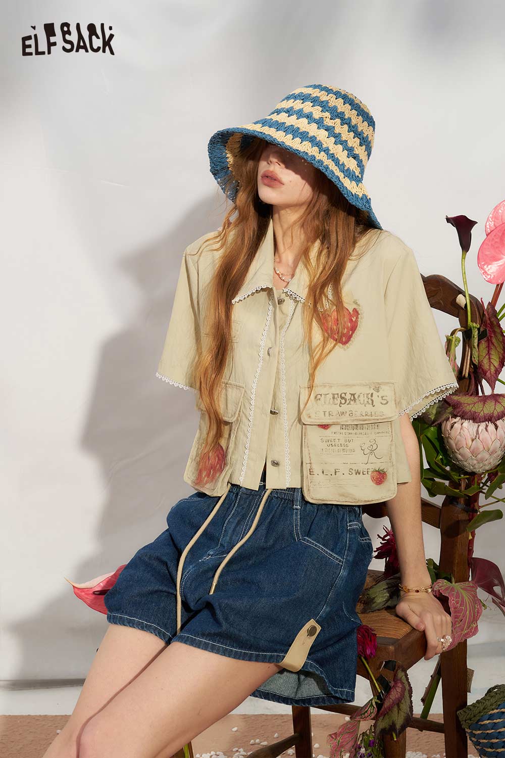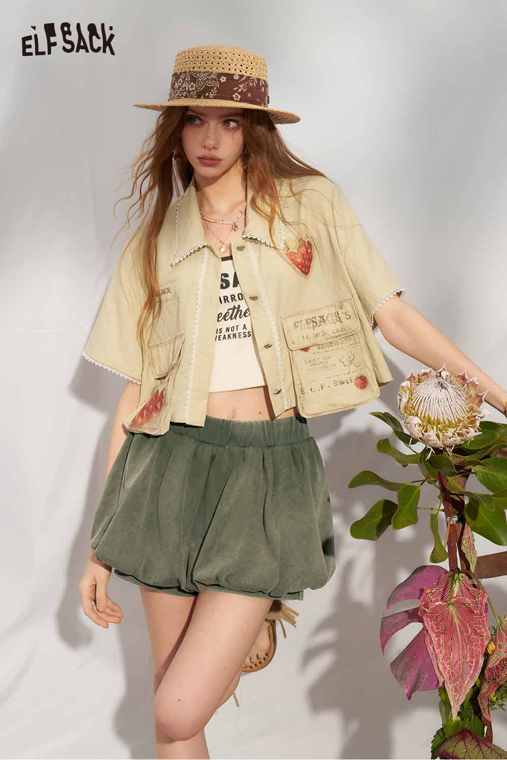 Strawberry Print Lace Cropped Shirt