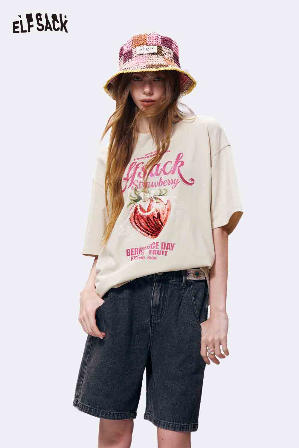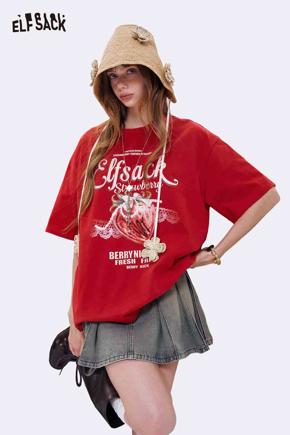 Camiseta Oversize Bordada con Lentejuelas de Fresa
