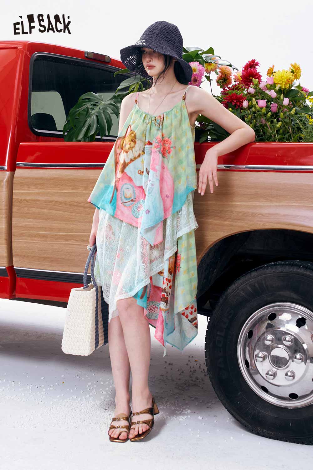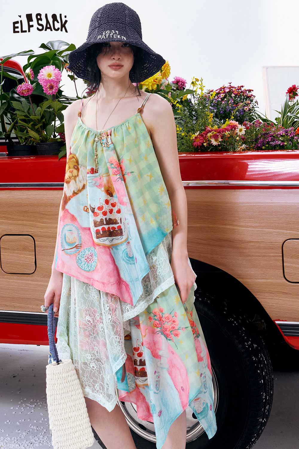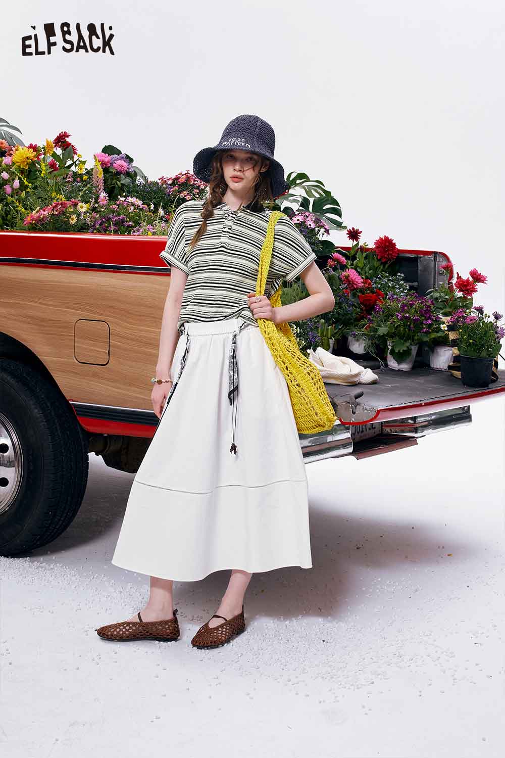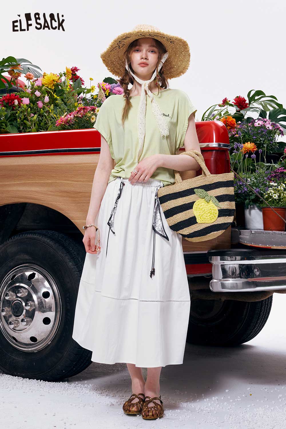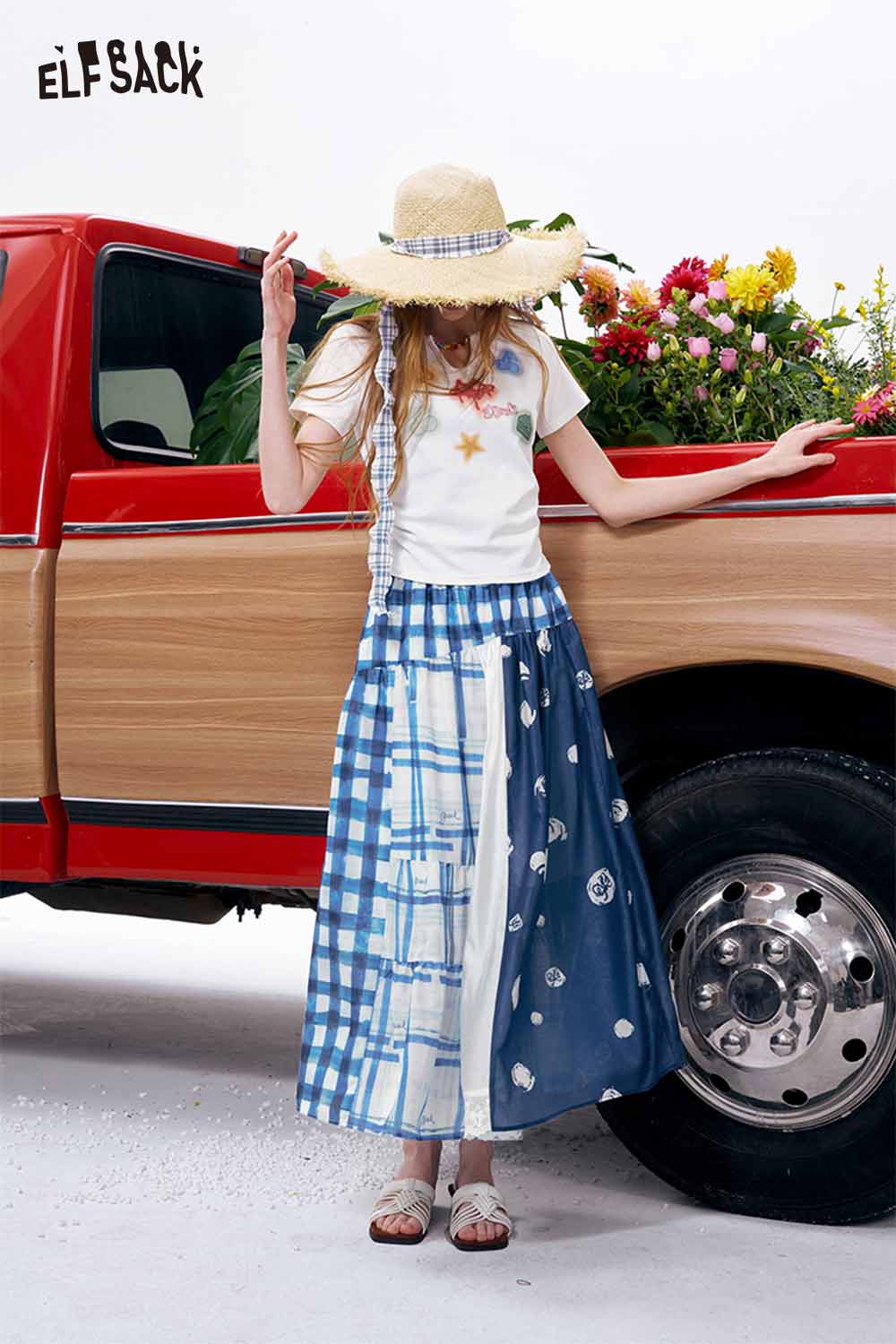 Falda Larga Escalonada de Estilo Rústico con Retales