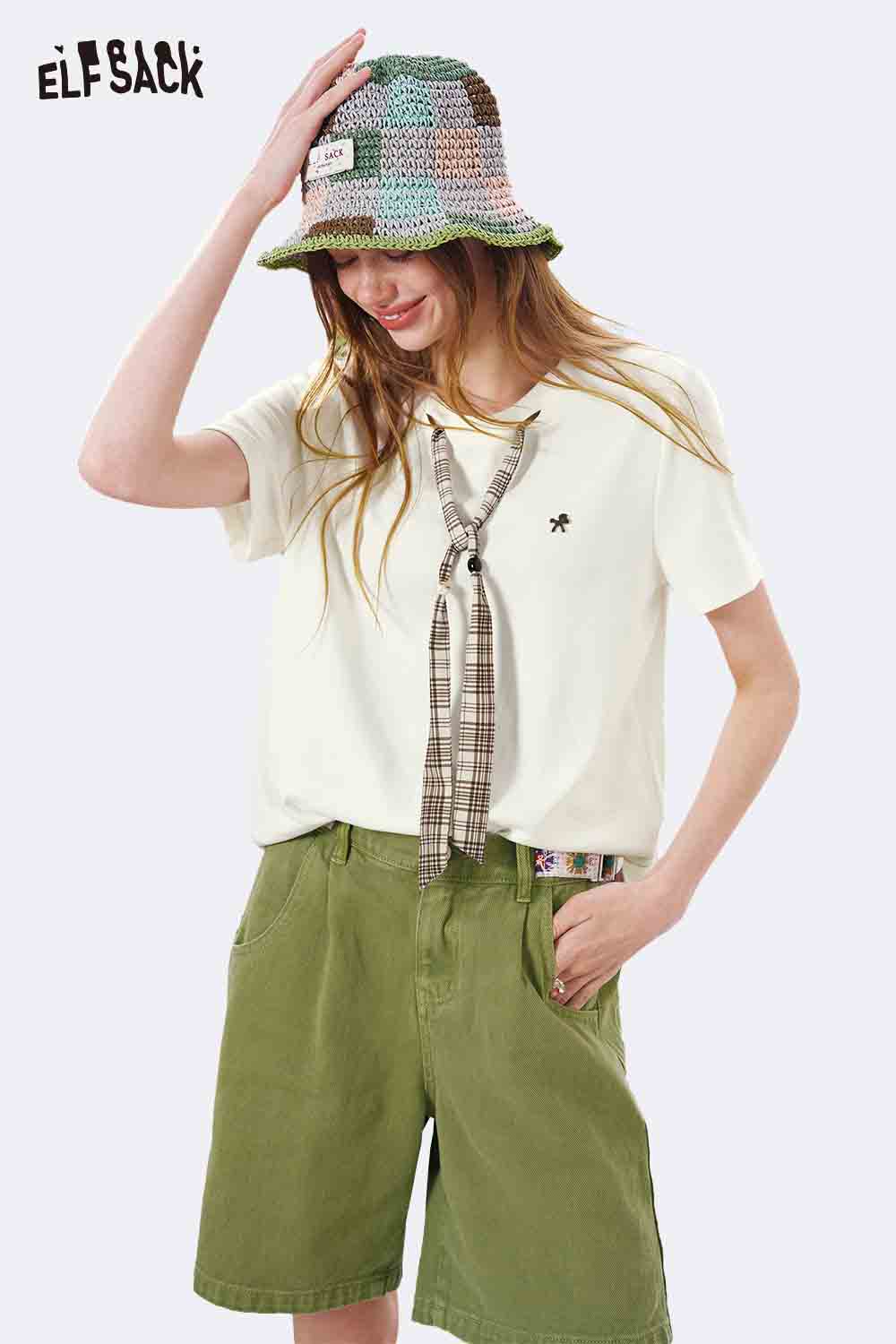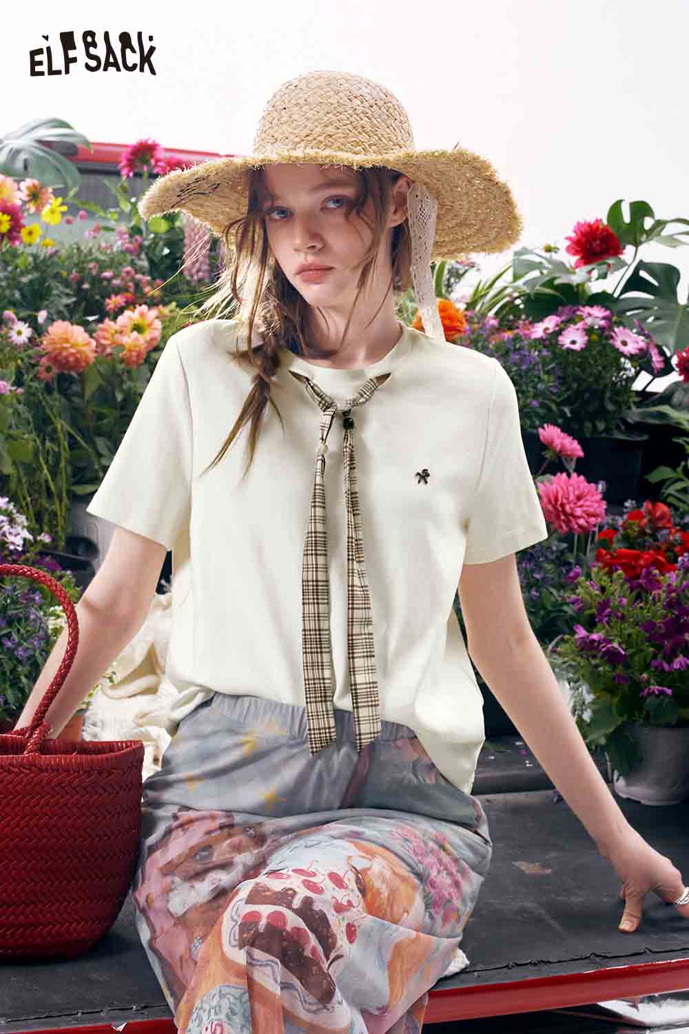 Camiseta Entallada con Detalle de Bufanda de Cuadros