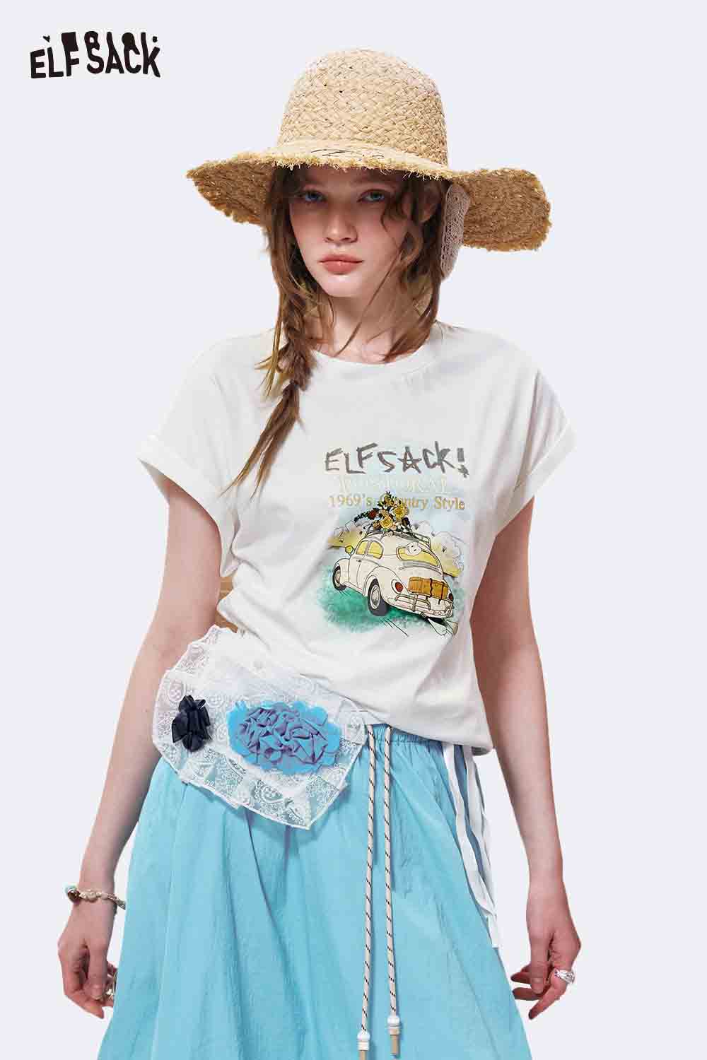 Camiseta de manga corta con gráfico y parche de conejo, bonita