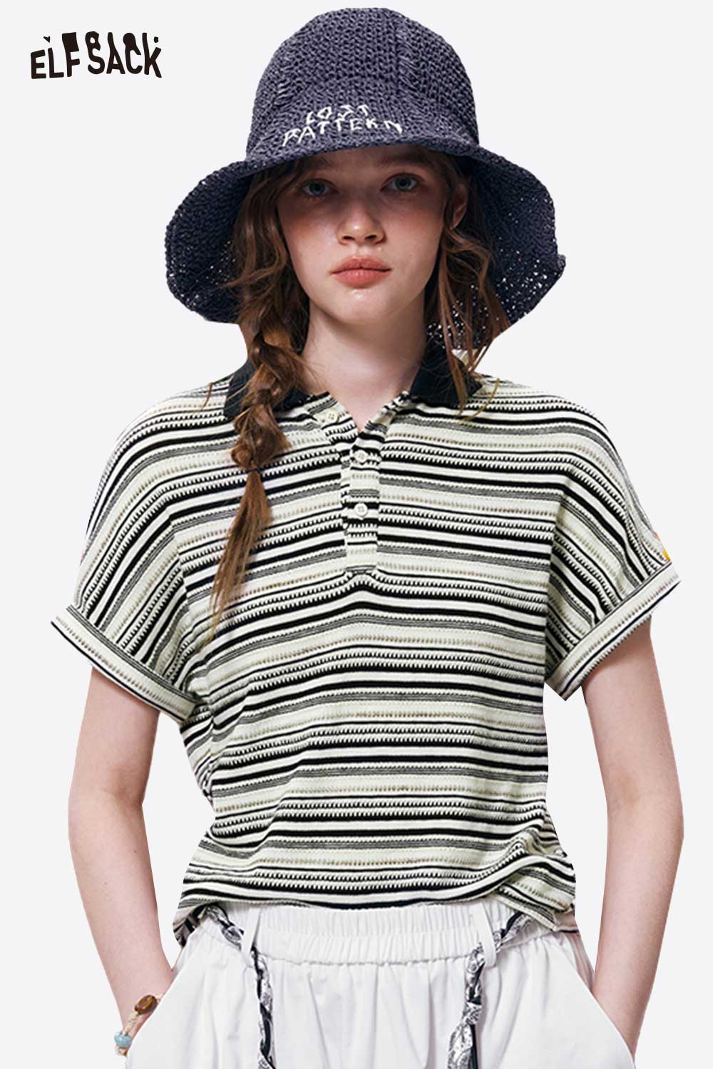 Camiseta de Manga Corta Rayada con Estampado Retro