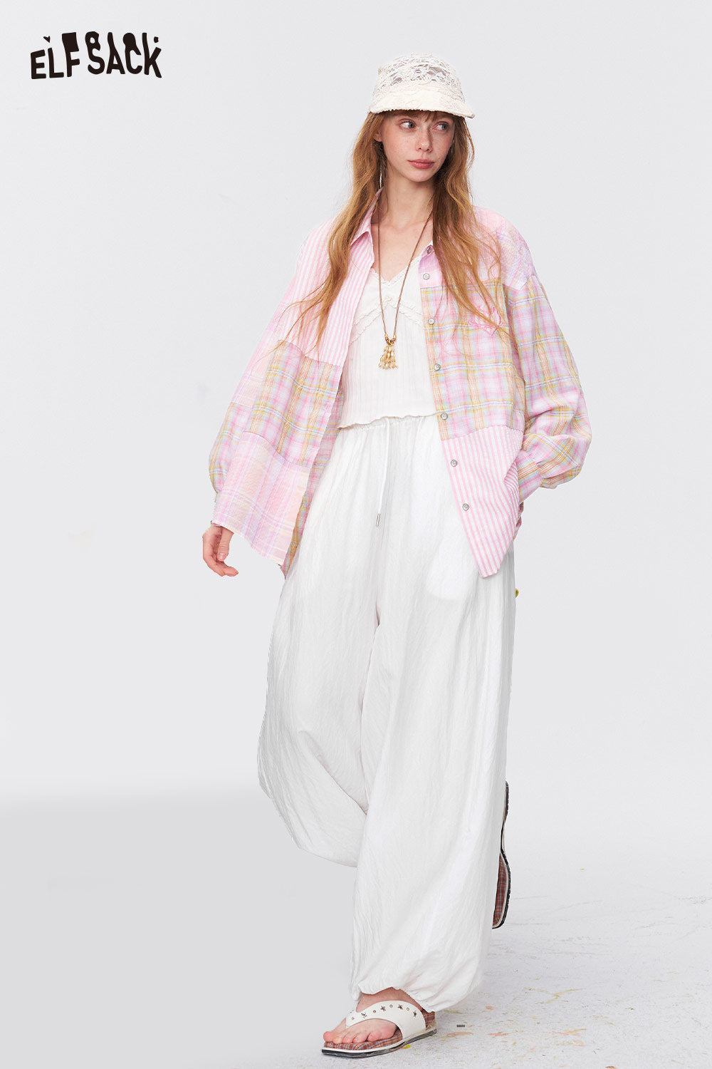 Pantalones Anchos con Estampado de Letras a Cuadros