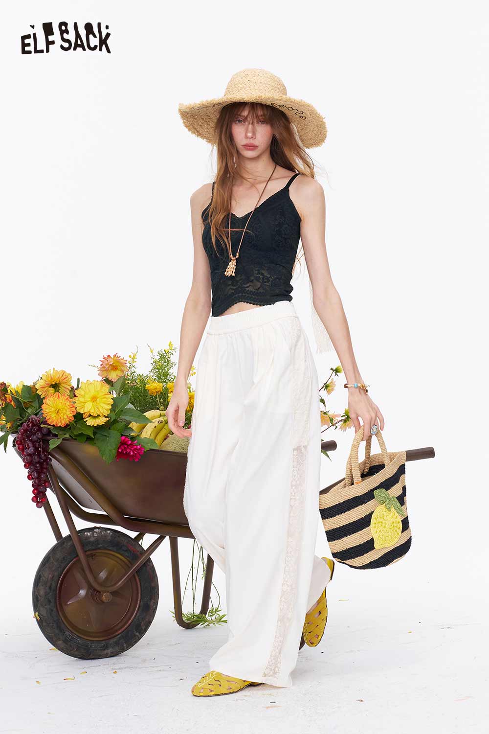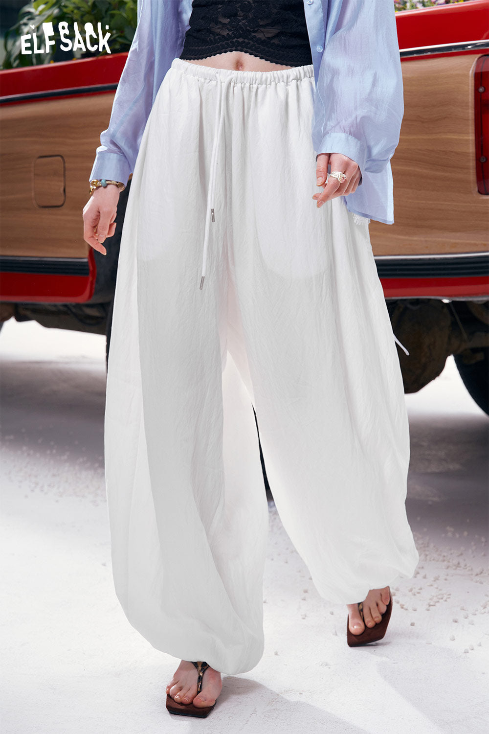 Pantalones de pernera ancha con estampado de lunares y cordón en la cintura