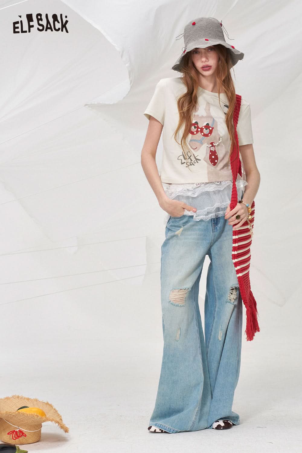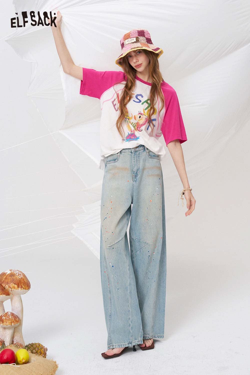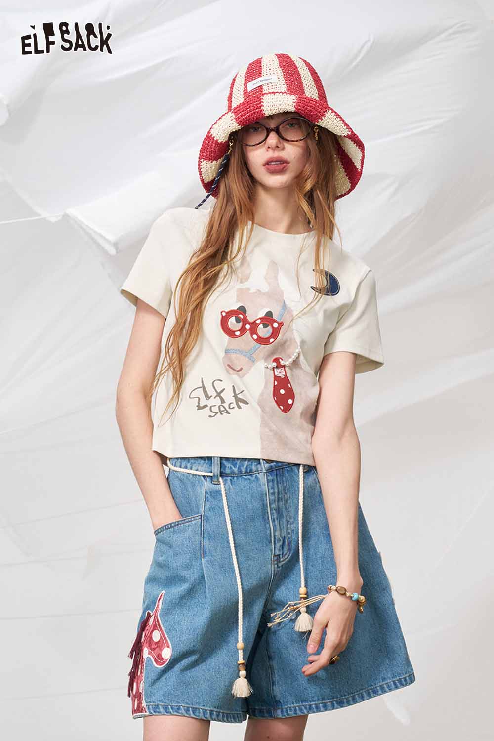 Camiseta de manga corta con gráfico y parche de conejo, bonita